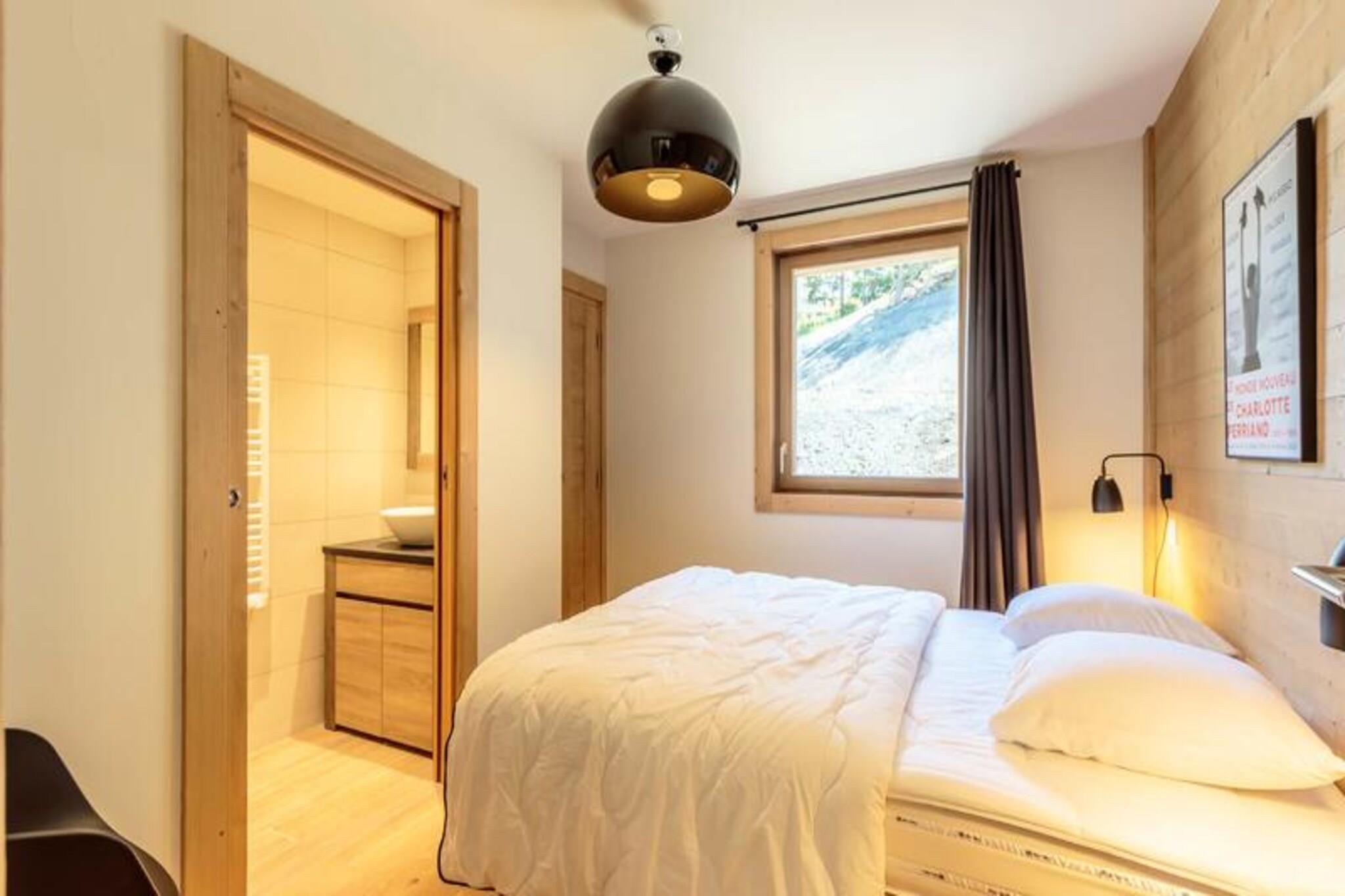 Denne elegante 4-værelses duplex strækker sig over 95 m² og kan rumme op til 10 gæster. Den har tre soveværelser: to med dobbeltsenge (160x200), et med fire køjesenge (2x2, 80x190) og en sovesofa i opholdsområdet. Sengene er rede ved ankomsten, og håndklæder er inkluderet. Nyd en betagende udsigt over dalen og bjergene fra den sydvestvendte balkon eller private terrasse. Ejendommen er udstyret med gulvvarme, et Smart TV, BOSE soundbar og gratis Wi-Fi for moderne komfort. Rygning og husdyr er ikke tilladt. Beliggende ved foden af ??pisterne tilbyder denne ejendom direkte adgang til ski-in/ski-out til Cachette-bakken, med et ESF-begynderområde til private lektioner i nærheden. Udforsk det livlige Les Arcs 1600-resort, der nemt kan nås via kabelbanen og pendulfarten mellem stationen. Paradiski-domænet, pulserende caféer og lokale butikker tilføjer charmen, med fantastiske solnedgange over Haute-Tarentaise-dalen som en bonus. Det fuldt udstyrede køkken omfatter induktionskomfur, opvaskemaskine, espressomaskine og fonduesæt. Duplexet har tre badeværelser med bruser eller badekar, hvilket sikrer bekvemmelighed for alle. Gæsterne har adgang til et wellness-center med en opvarmet indendørs pool, SPA, fitnesscenter, sauna og hammam. Yderligere faciliteter omfatter et skiskab med støvle- og handsketørrer, privat overdækket parkering og concierge-tjenester for et problemfrit ophold.