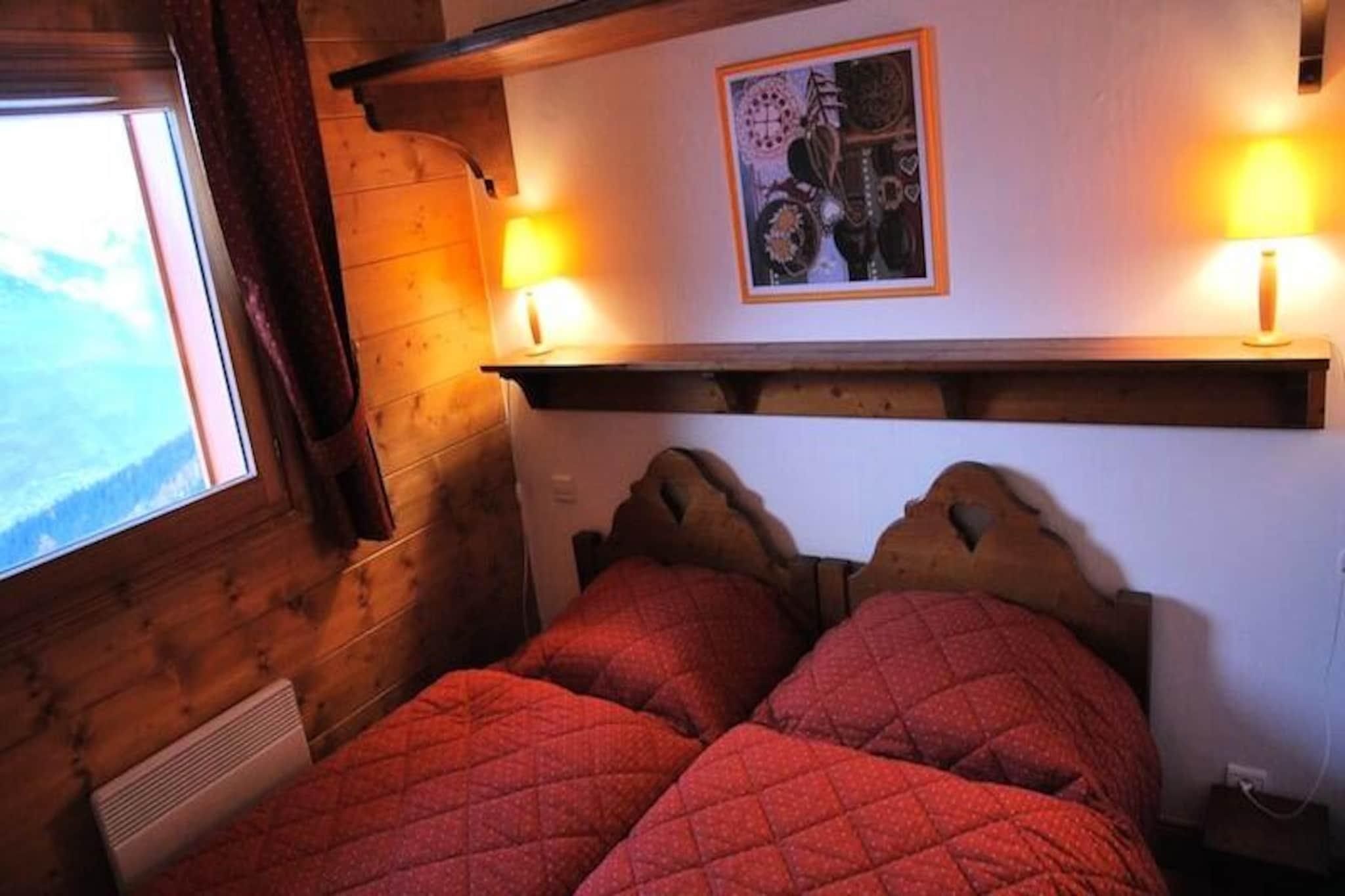 Hvor det majestætiske Mont Blanc pryder horisonten, tilbyder denne charmerende duplexlejlighed i det fredfyldte Le Chantel-kvarter i Les Arcs 1800 en uforglemmelig alpin flugt. Forestil dig at vågne op til den friske bjergluft og træde direkte ud på pisterne med ski-in/ski-out adgang, hvilket gør hvert øjeblik af din ferie problemfri og spændende. Beliggende i rolige omgivelser tilbyder boligen en betagende udsigt og et fredeligt tilflugtssted kun få minutter fra de livlige feriesteder Charvet og Villards. \n\nDen rummelige 4-værelses lejlighed har komfortabel plads til op til seks gæster, med tre hyggelige soveværelser og en mezzanin. Den åbne opholdsstue indbyder til afslapning med sine komfortable siddepladser, mens det fuldt udstyrede køkken - komplet med opvaskemaskine, ovn og Nespresso-kaffemaskine - gør spisningen til en fornøjelse. Ovenpå har soveværelset en dobbeltseng og eget brusebad, mens yderligere soveværelser har to enkeltsenge til afslappende nætter. Moderne faciliteter såsom Wi-Fi, tv med dvd-afspiller og overdækket parkering sikrer bekvemmelighed og komfort under hele dit ophold.\n\nUd over lejligheden tilbyder boligen adgang til en swimmingpool og solterrasse i den nærliggende Iseran-bygning. Gratis shuttlebusser og Dahu-gondolen forbinder dig ubesværet til skiskoler, butikker og afterski-steder. Om vinteren kan du udforske det store Paradiski-område med dets 425 km pister, mens sommeren afslører vidunderne i Vanoise Nationalpark, perfekt til vandreture og genopretning af naturen.\n\nUanset om du søger spændende skieventyr eller rolig alpin afslapning, kombinerer denne bolig det bedste fra begge verdener, hvilket gør den til det perfekte valg til din bjergferie.