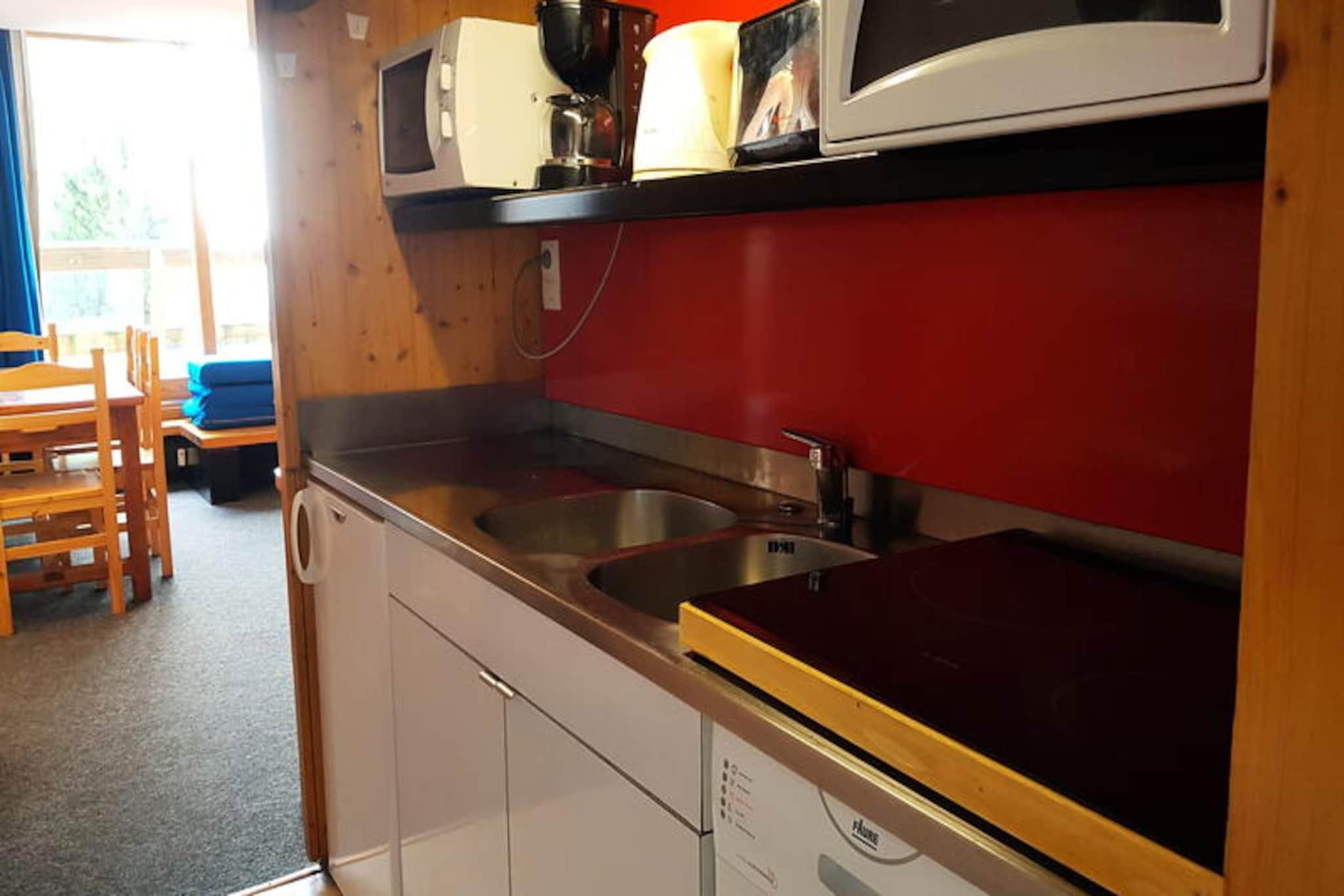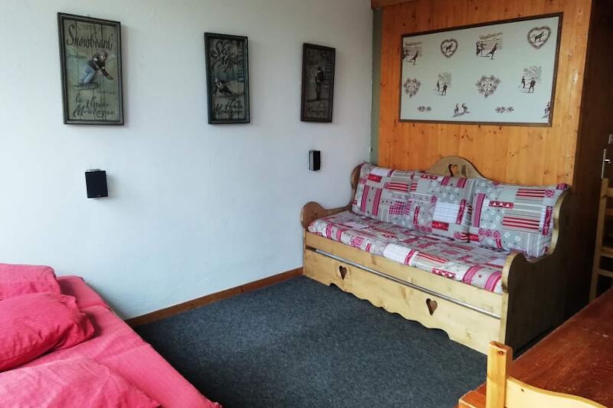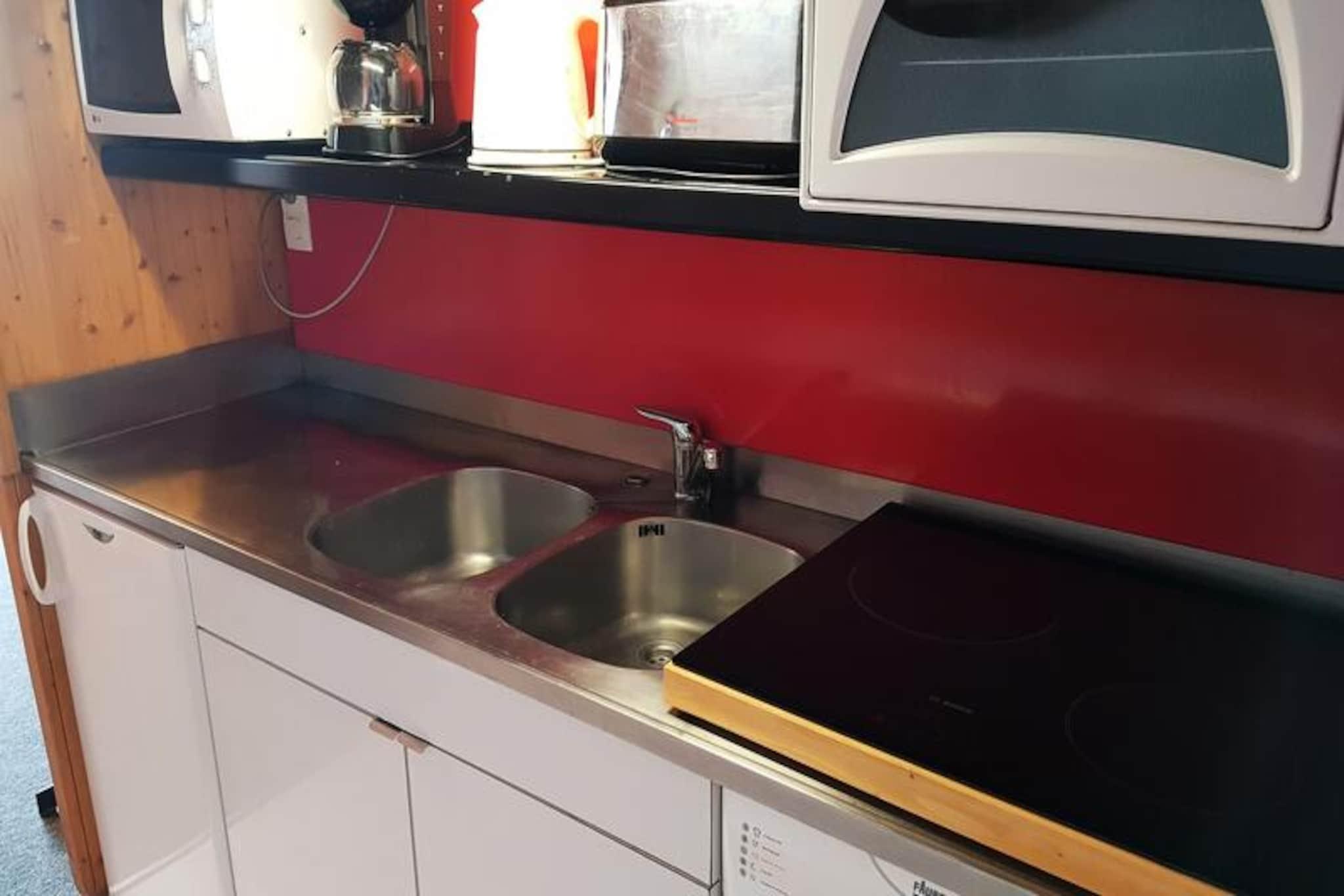 I hjertet af Arc 1600, hvor charmen fra de franske alper møder moderne bekvemmeligheder, inviterer dette hyggelige studie dig til at opleve den perfekte alpine ferie. Forestil dig at træde ud på din sydvendte balkon og nyde den pulserende atmosfære på Place du Soleil med dens livlige energi og fantastiske udsigt over bjergene. Uanset om du er her for spændingen ved skiløb eller roen ved sommervandreture, placerer denne bolig dig i centrum af det hele. Dette 33 m² store studie, der ligger på tredje sal i en traditionel bolig, har komfortabel plads til op til fire gæster. Opholdsstuen har en udtrækssovesofa, mens en sovealkove i entréen tilbyder et sæt køjesenge, ideelt til familier eller små grupper. Køkkenet er fuldt udstyret med keramisk kogeplade, ovn, mikrobølgeovn, opvaskemaskine og køleskab, hvilket sikrer, at du har alt, hvad du behøver for at tilberede solide måltider efter en dag med eventyr. Yderligere faciliteter inkluderer et fjernsyn, vaskemaskine og et skiskab for din bekvemmelighed. Gratis Wi-Fi holder dig forbundet, og kæledyr er velkomne mod et ekstra gebyr, hvilket gør det til et hjem væk fra hjemmet for alle. Beliggende ved foden af ??pisterne og skilifterne tilbyder residensen uovertruffen adgang til Paradiski-området, et af verdens største skiområder. Om sommeren forvandles de omkringliggende stier og alpine enge til et paradis for vandrere og naturelskere. Feriestedets centrum med dets udvalg af butikker og restauranter ligger kun en kort gåtur væk, hvilket sikrer, at alle dine behov bliver opfyldt inden for få minutter. Uanset om du søger eventyr på pisterne eller afslapning midt i en betagende natur, er dette studie den ideelle base for en uforglemmelig alpin flugt. Lad magien ved Arc 1600 fortrylle dig og skabe minder, du vil værdsætte for livet.