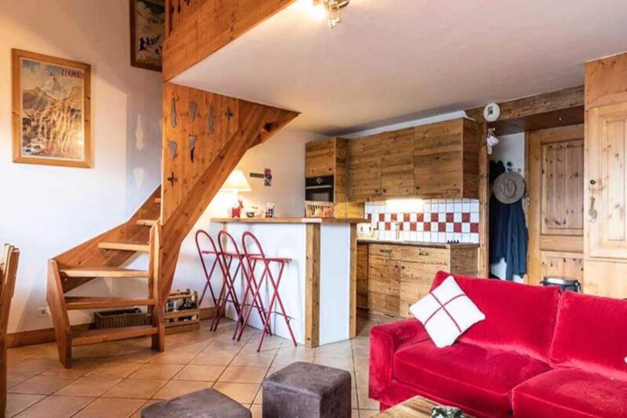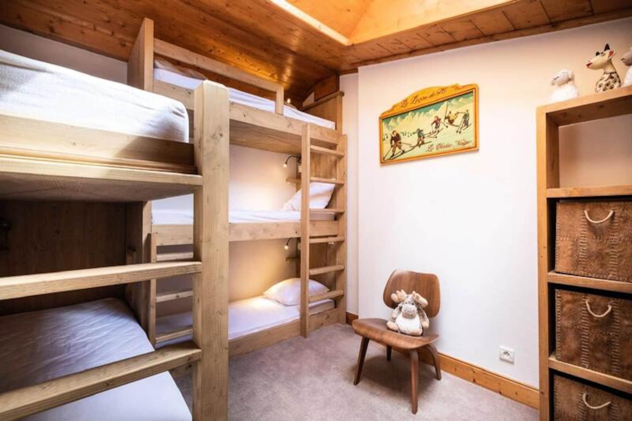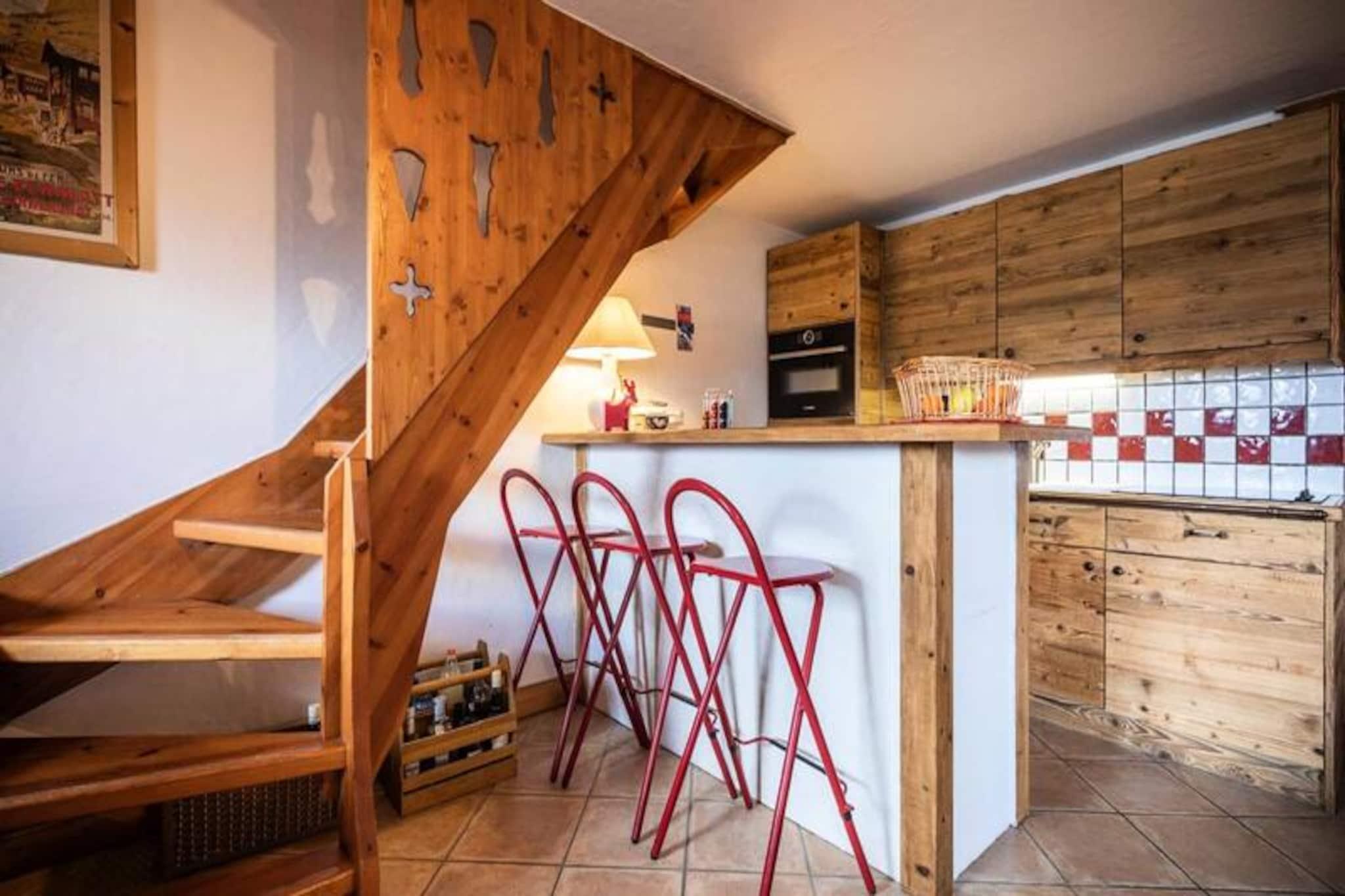 Beliggende i den fredfyldte landsby Le Chantel inviterer denne rummelige duplex på 70 m² dig til at opleve magien i de franske alper med en betagende udsigt over Mont Blanc fra den vestvendte balkon. Residensen Le St Bernard tilbyder direkte adgang til pisterne, hvilket gør den til en drømmedestination for skientusiaster. Uanset om du søger spændende eventyr eller rolige øjeblikke, er denne ejendom din indgang til en uforglemmelig bjergflugt. \n\nDuplexen er designet til at rumme op til otte gæster og har tre komfortable soveværelser fordelt på to etager. Stueetagen kan prale af en hyggelig stue med sofaer, lænestole, tv og Wi-Fi, samt et fuldt udstyret køkken med moderne apparater, herunder en Nespresso-kaffemaskine og opvaskemaskine. Ovenpå finder du et luksuriøst badeværelse, et soveværelse med eget badeværelse og et charmerende køjesengsværelse, der er perfekt til familier. Yderligere faciliteter såsom overdækket parkering, et skiskab og inkluderede fornødenheder som håndklæder og sengetøj sikrer et problemfrit ophold. \n\nDenne residens ligger kun få minutter fra Charvet/Villards-resortet, ESF-skiskolen og lokale butikker og kombinerer bekvemmelighed med ro. Gratis shuttlebus mellem resorterne og Dahu-gondolen gør det nemt at udforske området. Efter en dag på pisterne kan du slappe af i den nærliggende Iseran-residens' afslapningsområde, der har indendørs pool og solarium. \n\nUanset om du besøger Paradiskis 425 km pister for at dyrke vintersport eller sommervandreture i den legendariske Vanoise Nationalpark, tilbyder Les Arcs en unik blanding af naturlig skønhed og pulserende alpeliv. Dette er mere end et feriehus - det er din port til bjergenes charme og eventyr.