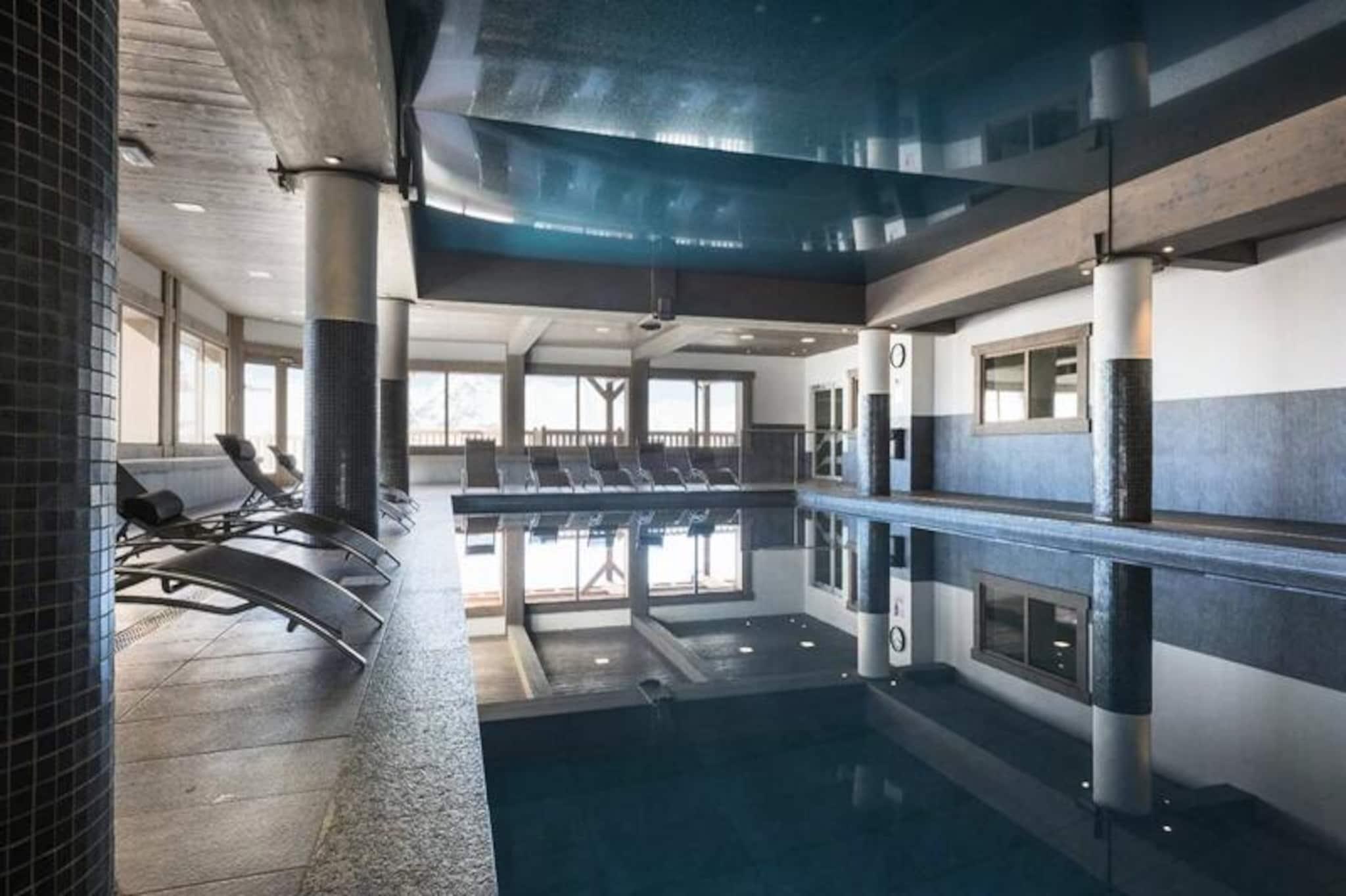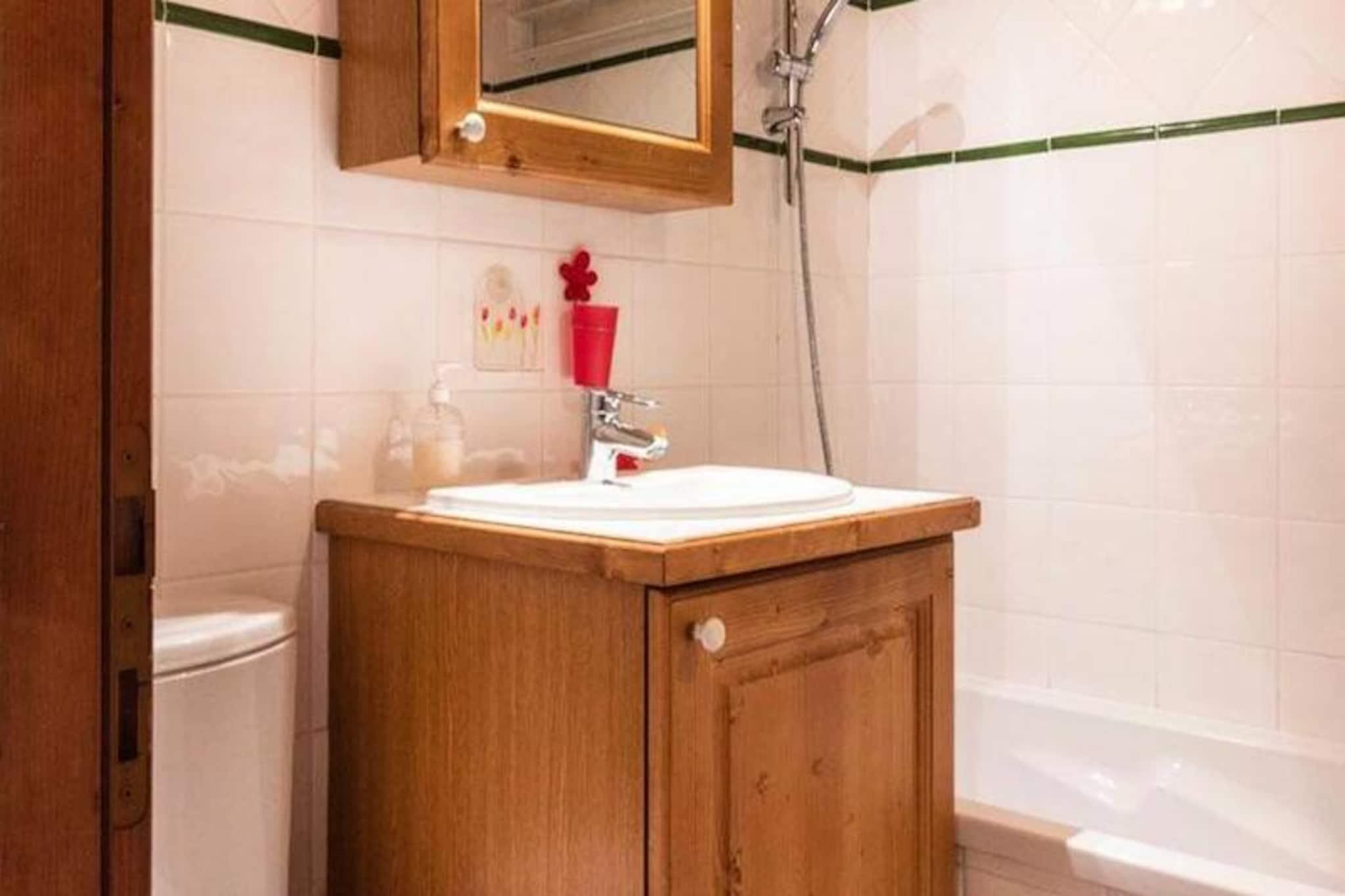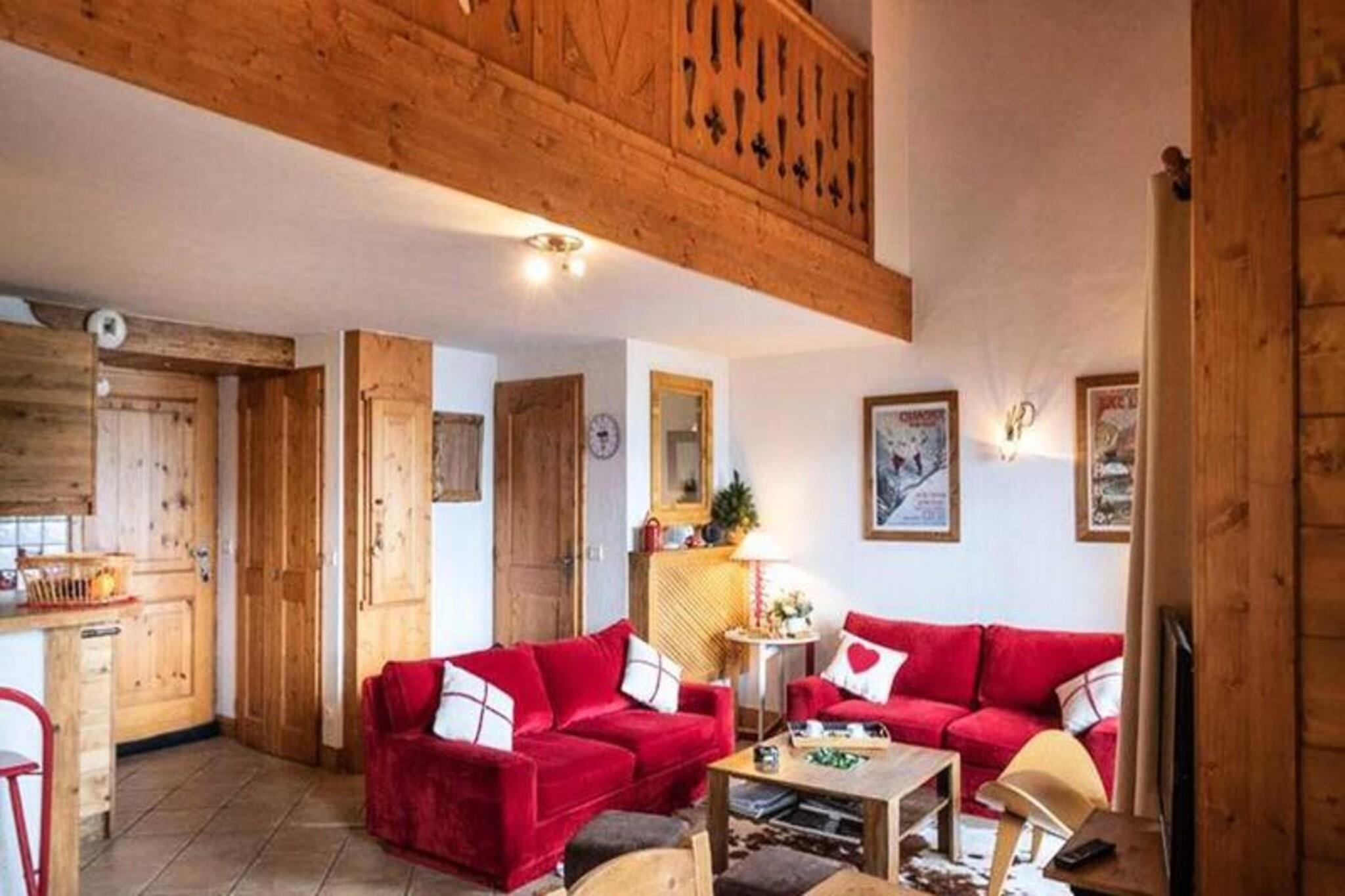 Beliggende i den fredfyldte landsby Le Chantel inviterer denne rummelige duplex på 70 m² dig til at opleve magien i de franske alper med en betagende udsigt over Mont Blanc fra den vestvendte balkon. Residensen Le St Bernard tilbyder direkte adgang til pisterne, hvilket gør den til en drømmedestination for skientusiaster. Uanset om du søger spændende eventyr eller rolige øjeblikke, er denne ejendom din indgang til en uforglemmelig bjergflugt. \n\nDuplexen er designet til at rumme op til otte gæster og har tre komfortable soveværelser fordelt på to etager. Stueetagen kan prale af en hyggelig stue med sofaer, lænestole, tv og Wi-Fi, samt et fuldt udstyret køkken med moderne apparater, herunder en Nespresso-kaffemaskine og opvaskemaskine. Ovenpå finder du et luksuriøst badeværelse, et soveværelse med eget badeværelse og et charmerende køjesengsværelse, der er perfekt til familier. Yderligere faciliteter såsom overdækket parkering, et skiskab og inkluderede fornødenheder som håndklæder og sengetøj sikrer et problemfrit ophold. \n\nDenne residens ligger kun få minutter fra Charvet/Villards-resortet, ESF-skiskolen og lokale butikker og kombinerer bekvemmelighed med ro. Gratis shuttlebus mellem resorterne og Dahu-gondolen gør det nemt at udforske området. Efter en dag på pisterne kan du slappe af i den nærliggende Iseran-residens' afslapningsområde, der har indendørs pool og solarium. \n\nUanset om du besøger Paradiskis 425 km pister for at dyrke vintersport eller sommervandreture i den legendariske Vanoise Nationalpark, tilbyder Les Arcs en unik blanding af naturlig skønhed og pulserende alpeliv. Dette er mere end et feriehus - det er din port til bjergenes charme og eventyr.