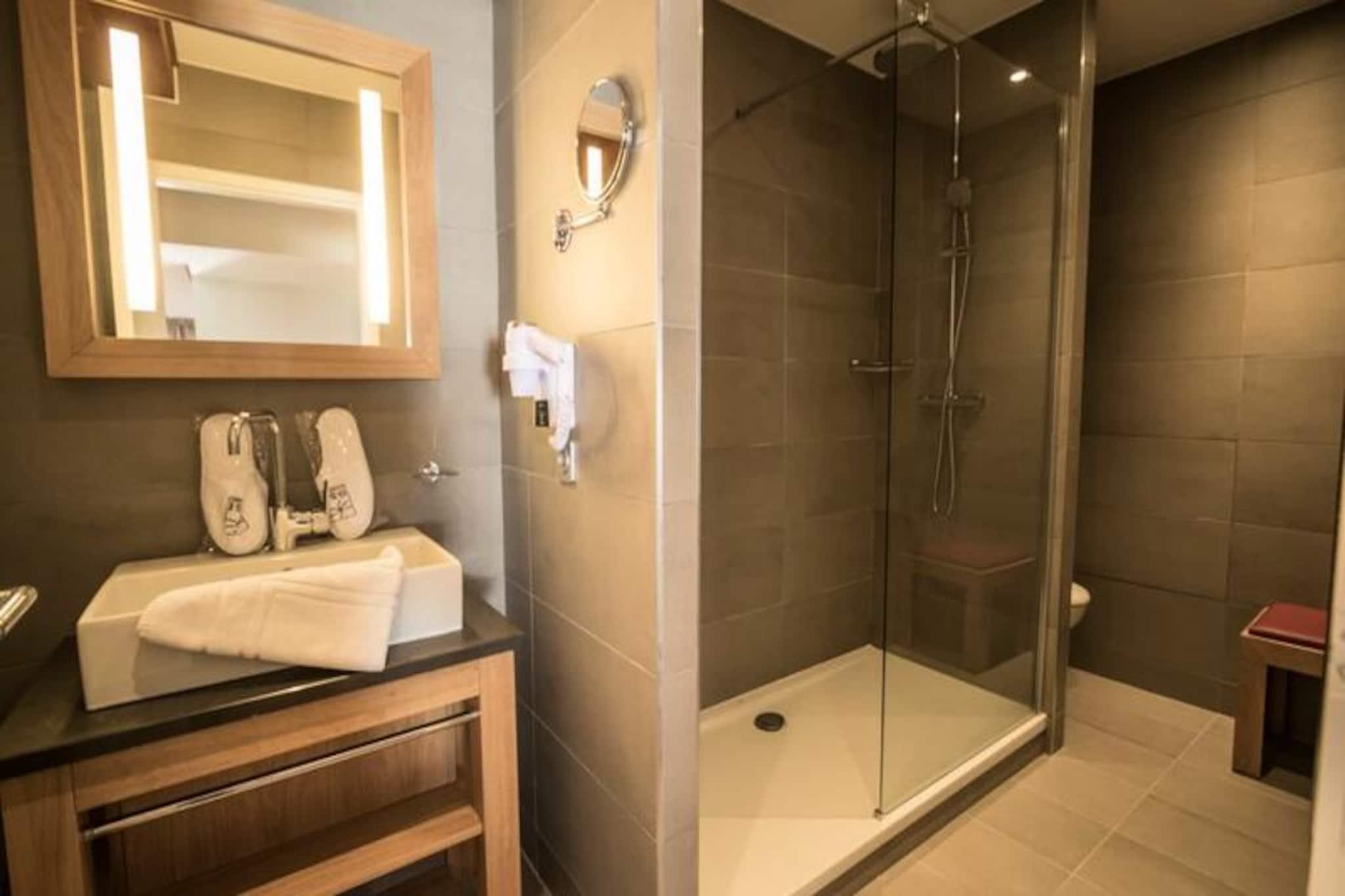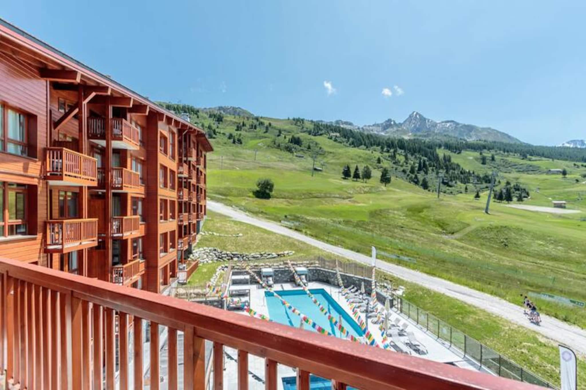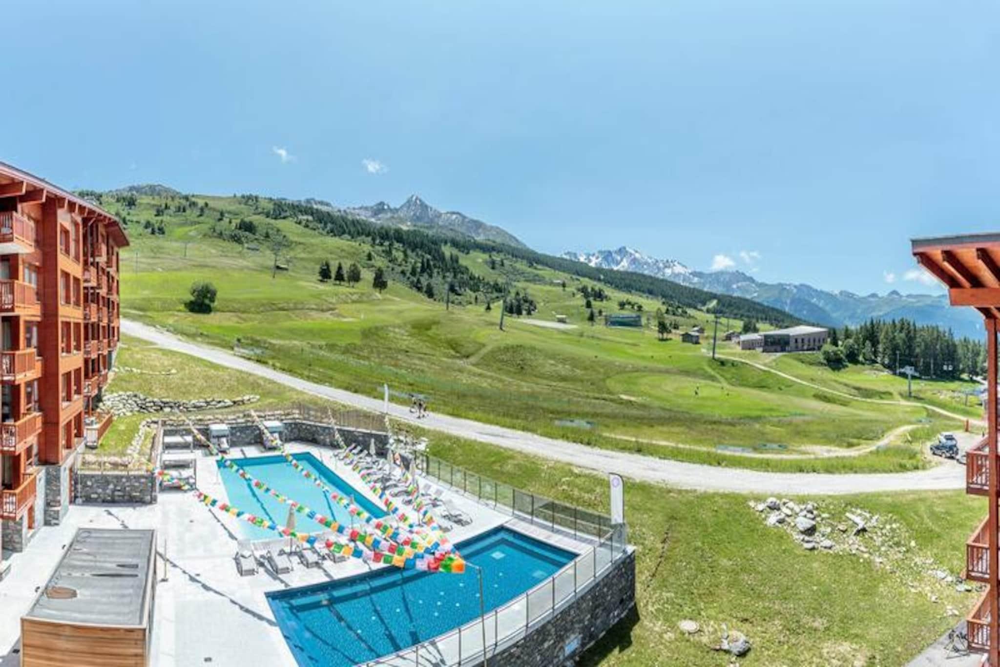 Højt over den betagende Tarentaise-dal tilbyder denne luksuriøse 4-stjernede residens i Arc 1800 en perfekt blanding af moderne komfort og alpin charme. Med panoramaudsigt mod sydvest fra din private balkon bliver hvert øjeblik et postkortværdigt minde. Uanset om du er her for vinterskiløb eller sommergolf, sikrer den luksuriøse Les Monarques-residens et uforglemmeligt ophold med ski-in/ski-out adgang og nærhed til det berømte Paradiski-område. De rolige bjergomgivelser suppleres af exceptionelle faciliteter, herunder en swimmingpool, spa og fitnessrum, der giver afslapning efter en dag med eventyr. \n\nDenne rummelige 5-værelses lejlighed strækker sig over 110 kvadratmeter og har komfortabel plads til op til ni gæster. Det elegante interiør har en hyggelig stue, et fuldt udstyret åbent køkken og fire smukt indrettede soveværelser, herunder et med eget bad og toilet. Moderne bekvemmeligheder såsom Wi-Fi, et Bose Hi-Fi-system og overdækket parkering sikrer en problemfri oplevelse. De gennemtænkte faciliteter som redte senge ved ankomst, håndklæder og slutrengøring gør dit ophold endnu mere problemfrit. \n\nBeliggende i det prestigefyldte Edenarc au Chantel-område, ligger residensen kun få minutter fra Nama Springs Spa, gourmetbutikker og Dahu-svævebanen, som forbinder dig til Arc 1800-snefronten på under tre minutter. Om sommeren tilbyder den nærliggende golfbane og vandrestier uendelige muligheder for udendørs udforskning. Det gratis shuttlebusstoppested sikrer nem adgang til feriestedets centrum og dets livlige restauranter, butikker og afterski-steder. \n\nUanset om du søger spændende skiløjper, rolige naturture eller forkælende spa-øjeblikke, er denne ejendom din port til det bedste af de franske alper. Skab varige minder i omgivelser, der kombinerer luksus, bekvemmelighed og bjergenes tidløse skønhed.