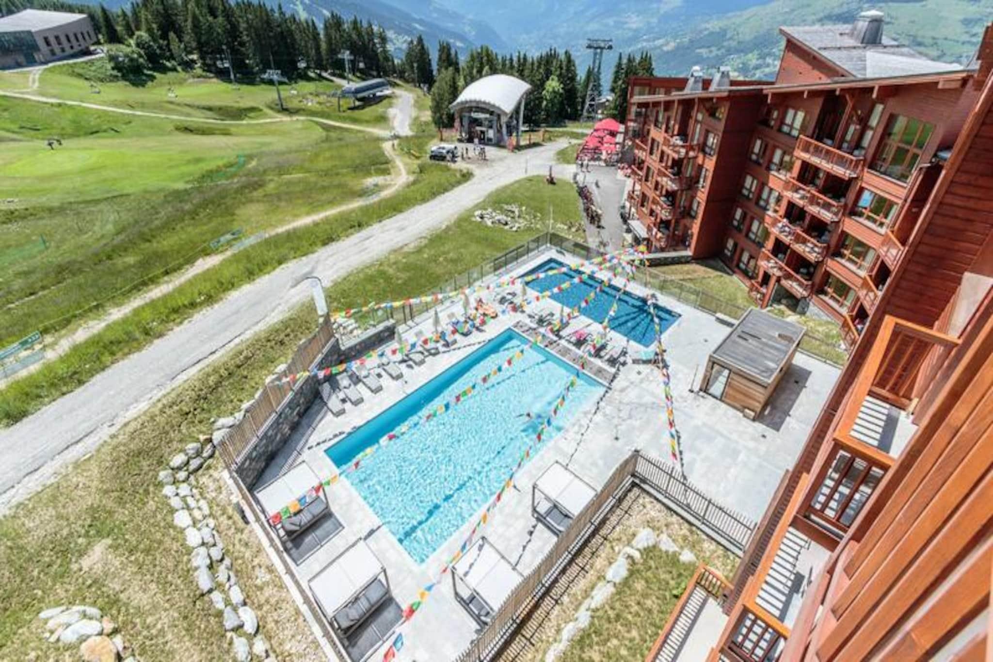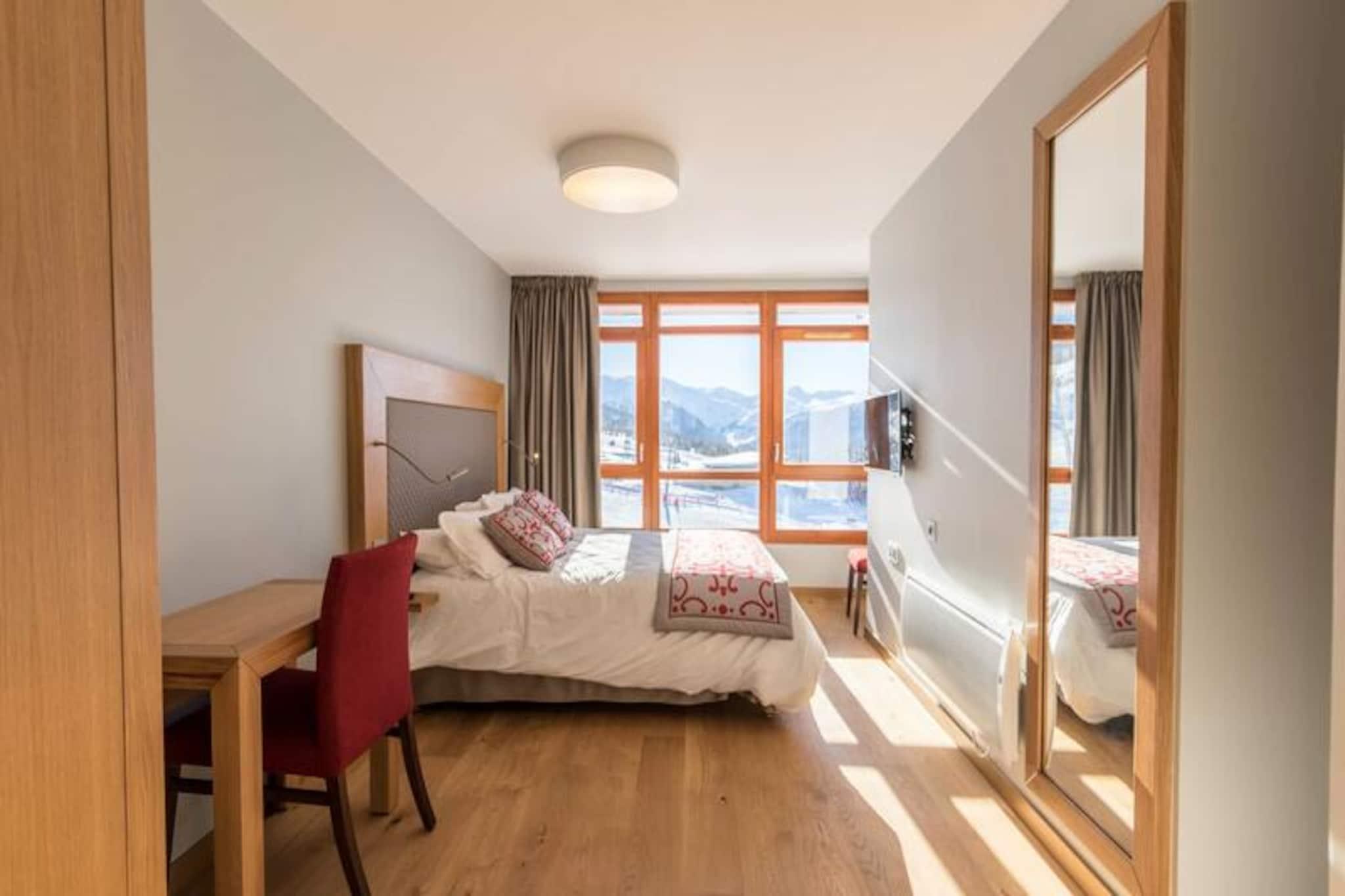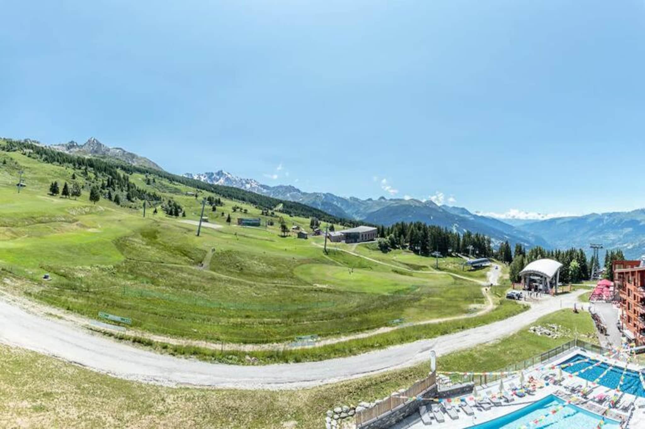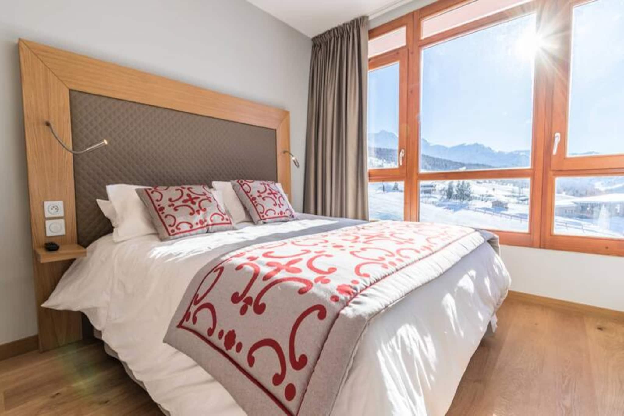 Højt over den maleriske Tarentaise-dal tilbyder denne luksuriøse duplexlejlighed i den prestigefyldte Les Monarques-residens et uovertruffent alpint tilflugtssted. Med en betagende udsigt mod sydvest og direkte adgang til skiområdet Paradiski kombinerer denne 107 m² store ejendom moderne elegance med charmen ved bjerglivet. Uanset om du er her for vintersport eller sommervandreture, lover den rolige atmosfære og de førsteklasses faciliteter et uforglemmeligt ophold. Forestil dig at slappe af i spaen eller tage en forfriskende dukkert i poolen efter en dag med eventyr, omgivet af de majestætiske tinder i de franske alper. \n\nLejligheden har komfortabel plads til op til otte gæster fordelt på fire soveværelser, inklusive en master suite med eget badeværelse. Den åbne opholdsstue har en hyggelig pejs, et fuldt udstyret køkken og en stilfuld lounge, der er perfekt til afslappende aftener. Yderligere bekvemmeligheder såsom Wi-Fi, et Bose Hi-Fi-system og en overdækket parkeringsplads sikrer en problemfri oplevelse. Den gennemtænkte inkludering af håndklæder, opredte senge ved ankomst og slutrengøring tilføjer et strejf af hotellignende service til din ferie. \n\nBeliggende i det eksklusive Edenarc au Chantel-område kan denne residens prale af ski-in/ski-out om vinteren og nærhed til en golfbane om sommeren. I nærheden finder du Nama Springs Spa, gourmet-købmandsforretninger og Dahu-svævebanen, som forbinder dig til det pulserende Arc 1800-resortcenter på få minutter. En gratis shuttle-service sikrer nem udforskning af de omkringliggende landsbyer og attraktioner. \n\nUanset om du søger spændende pister, rolige vandrestier eller blot et øjebliks afslapning i spaen, er denne førsteklasses residens din indgang til det bedste af Les Arcs. Omfavn bjergenes magi og skab minder, der vil vare hele livet.