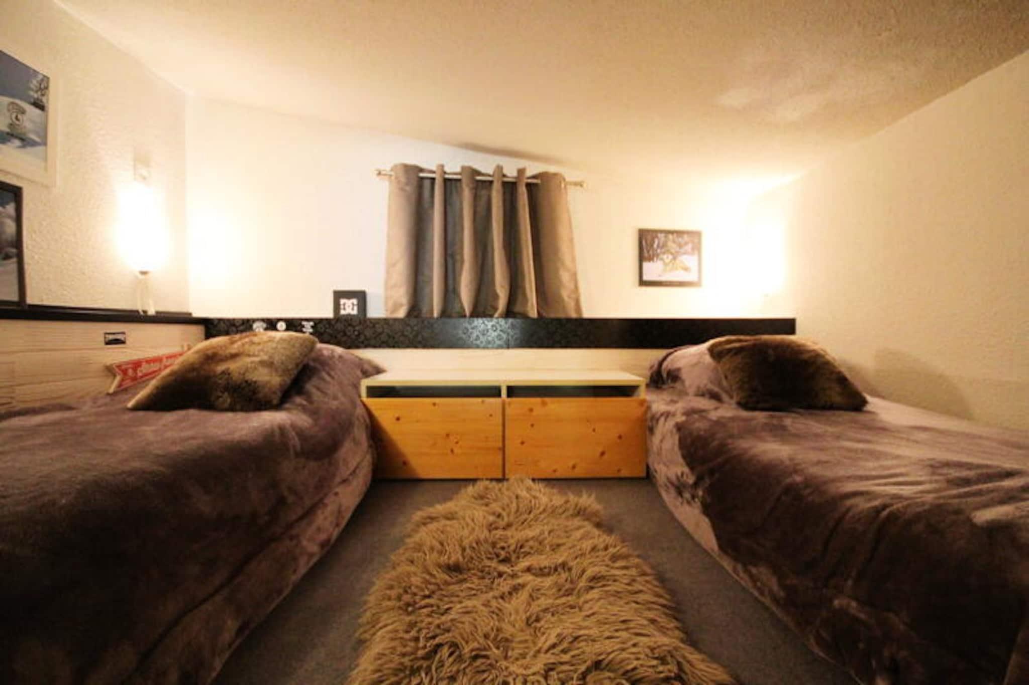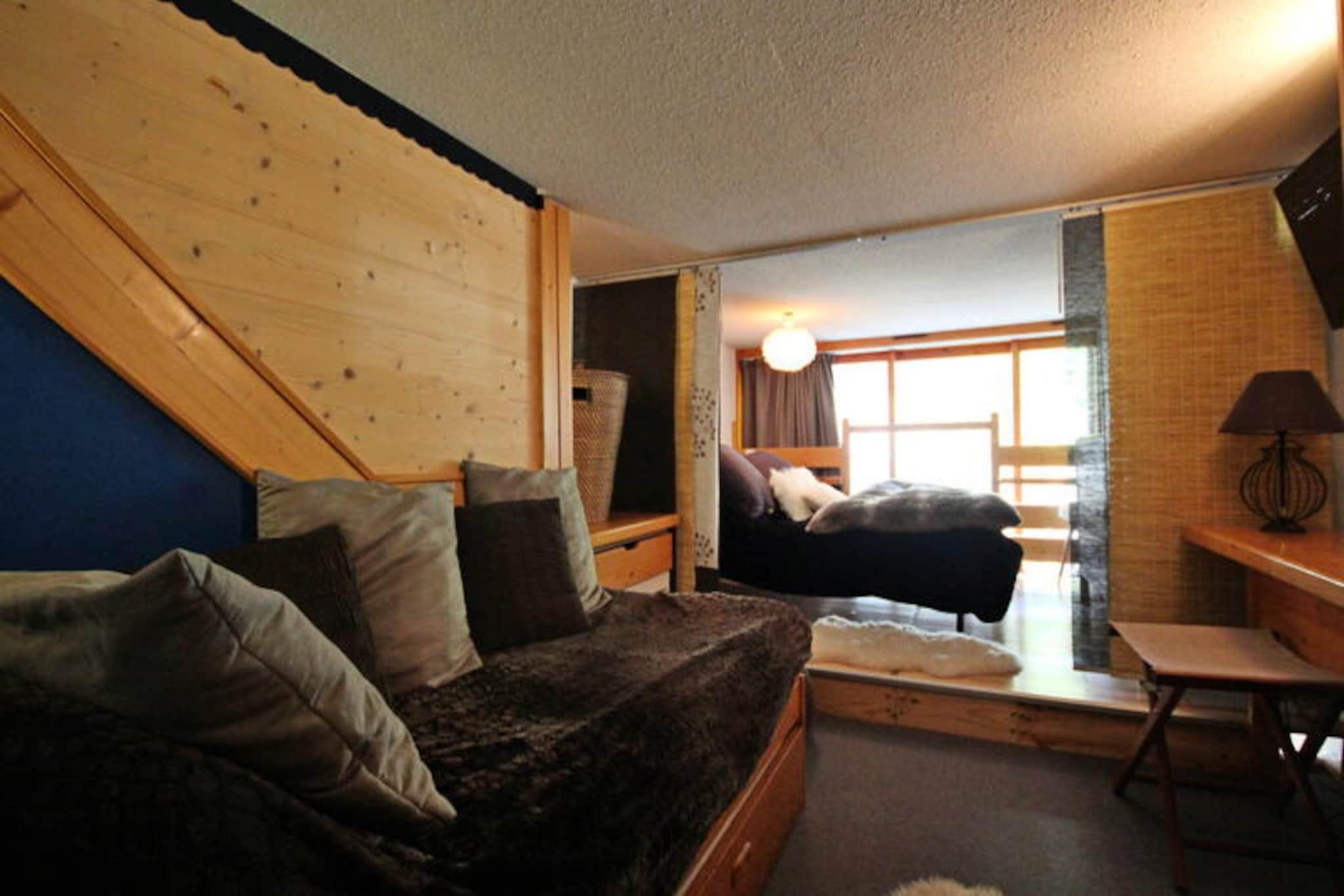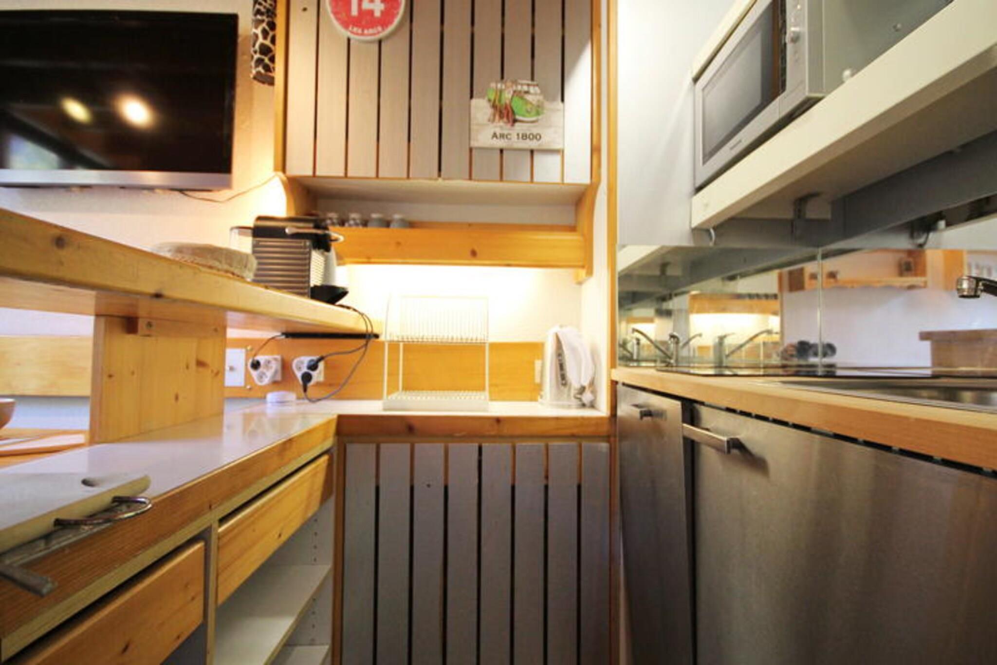 I det fredfyldte Charmettoger-kvarter i Les Arcs 1800 tilbyder denne hyggelige duplexlejlighed et roligt alpint tilflugtssted med nem adgang til pisterne og landsbyens faciliteter. Omgivet af de franske alpers betagende skønhed er boligen perfekt beliggende til en fredelig, men eventyrlig ferie, med shuttlebusser mellem feriestederne kun få skridt væk, der forbinder dig med de pulserende Villards- eller Charmettoger-områder. Den sydøstvendte balkon inviterer dig til at starte dine morgener med en fantastisk udsigt over de omkringliggende tinder badet i sollys. \n\nLejligheden på 34 m² er designet til at rumme op til seks gæster og er gennemtænkt fordelt på to etager. Stueetagen har en indbydende entré, et badeværelse med badekar og et fuldt renoveret åbent køkken udstyret med keramiske kogeplader, mikrobølgeovn, kaffemaskine, elkedel, køleskab og opvaskemaskine. Opholdsstuen, komplet med spisebord og tv, giver et hyggeligt sted at slappe af efter en dag med alpine eventyr. Ovenpå tilbyder mezzaninen en charmerende soveplads med to enkeltsenge, en krog med en udtræksseng og en dagseng samt et privat dobbeltsengsområde adskilt af en svingdør.\n\nResidensen kan prale af praktiske faciliteter, herunder elevatorer, overdækket parkering i Villards og udendørs parkering i Chante Mouche, med gratis pladser foran bygningen (mod betaling om vinteren). Den nærliggende shuttlebus mellem feriestederne sikrer nem adgang til skilifte, butikker og restauranter, hvilket gør det til en ideel base for at udforske Paradiski-området.\n\nUanset om du er her for at stå på ski på de uberørte pister om vinteren eller vandre på de frodige stier om sommeren, kombinerer denne lejlighed komfort, bekvemmelighed og charmen ved de franske alper og lover en uforglemmelig ferieoplevelse.