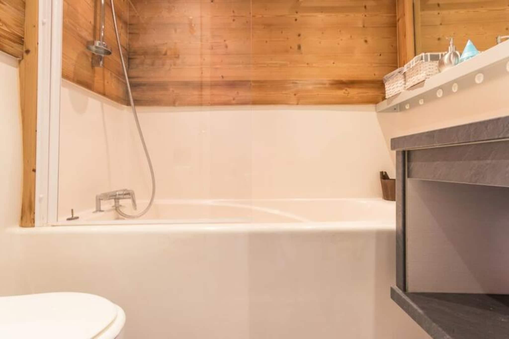 I det fredfyldte Charmettoger-område i Les Arcs 1800 tilbyder denne charmerende duplexlejlighed et roligt tilflugtssted midt i de betagende franske alper. Med sin sydvendte balkon kan du nyde den fantastiske udsigt over bjergene og sole dig i alpinsolen, hvilket skaber de perfekte rammer for en mindeværdig ferie. Uanset om du besøger Le Domaine om vinteren for at stå på ski i verdensklasse eller om sommeren for at udforske de frodige, grønne stier, tilbyder denne bolig en hyggelig og bekvem base for dine eventyr. Lejligheden har komfortabel plads til 6 til 7 gæster, hvilket gør den ideel til familier eller små grupper. Den gennemtænkte planløsning omfatter en entré, et badeværelse med badekar og toilet samt et fuldt udstyret køkken, der åbner op til en indbydende stue. Her finder du induktionskogeplader, en kombinationsovn, et køleskab, en opvaskemaskine samt både en filterkaffemaskine og en Nespresso-maskine til din morgenkaffe. Opholdsstuen har en komfortabel seng, et spisebord til familien og et fladskærms-tv. Ovenpå tilbyder mezzaninen (med en højde på under 1,80 m) to enkeltsenge, en separat enkeltseng med en hængslet dør for ekstra privatliv og et hyggeligt soveværelse med en dobbeltseng og endnu et fladskærms-tv. Beliggende kun få skridt fra shuttle-stoppestedet mellem skisportsstederne i Villards eller Charmettoger, sikrer boligen nem adgang til pisterne og nærliggende faciliteter. Overdækket parkering i Villards, udendørs parkering i Chante Mouche og gratis pladser foran boligen (mod betaling om vinteren) bidrager til bekvemmeligheden. Efter en dag med skiløb eller vandreture kan du slappe af på din balkon med en varm drink og lade den fredfyldte bjergstemning omslutte dig. Uanset om du er her for at grave dig gennem sneen, udforske de alpine stier eller blot slappe af i de fredelige omgivelser, lover denne lejlighed et uforglemmeligt ophold i hjertet af Alperne.