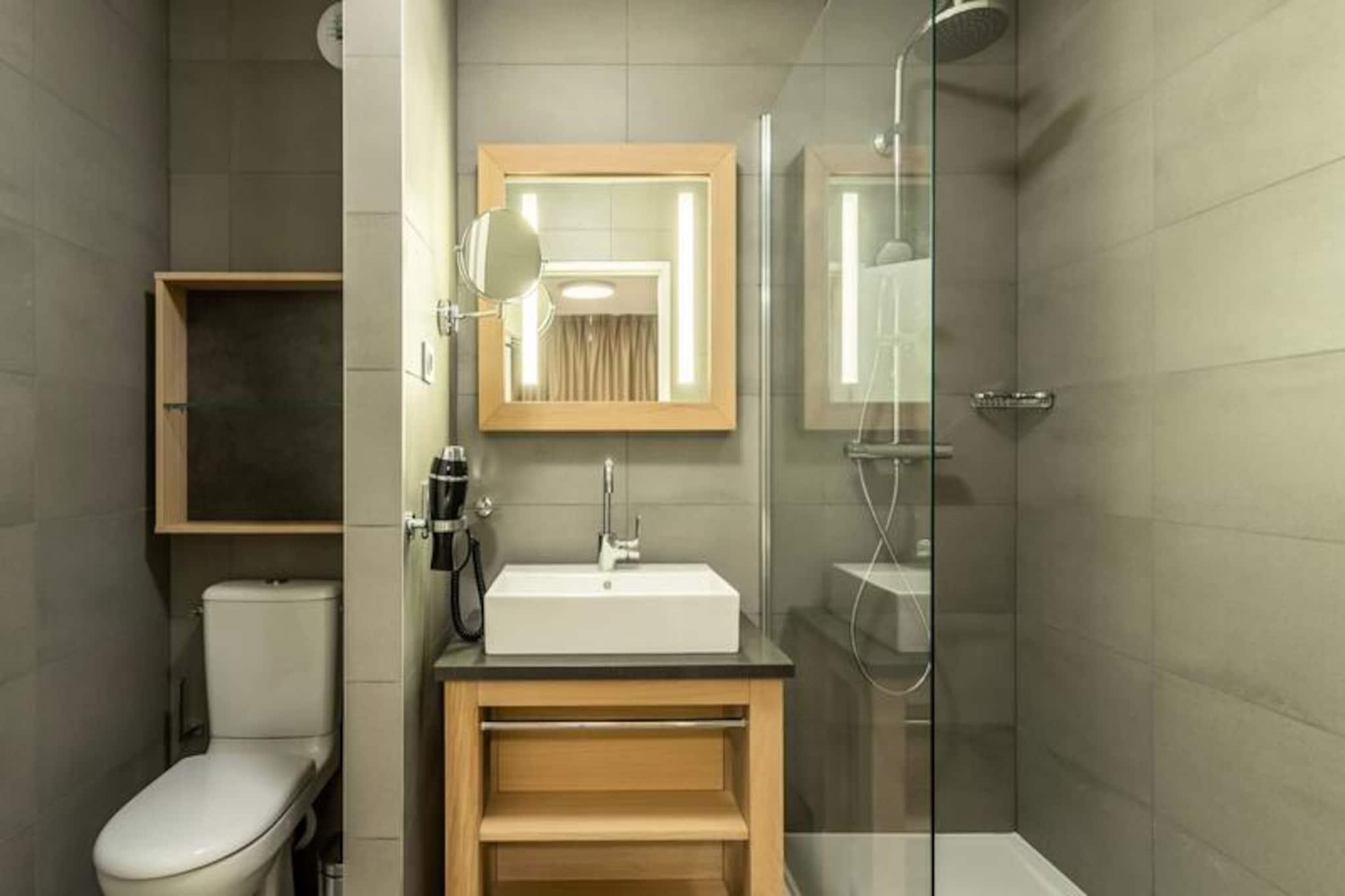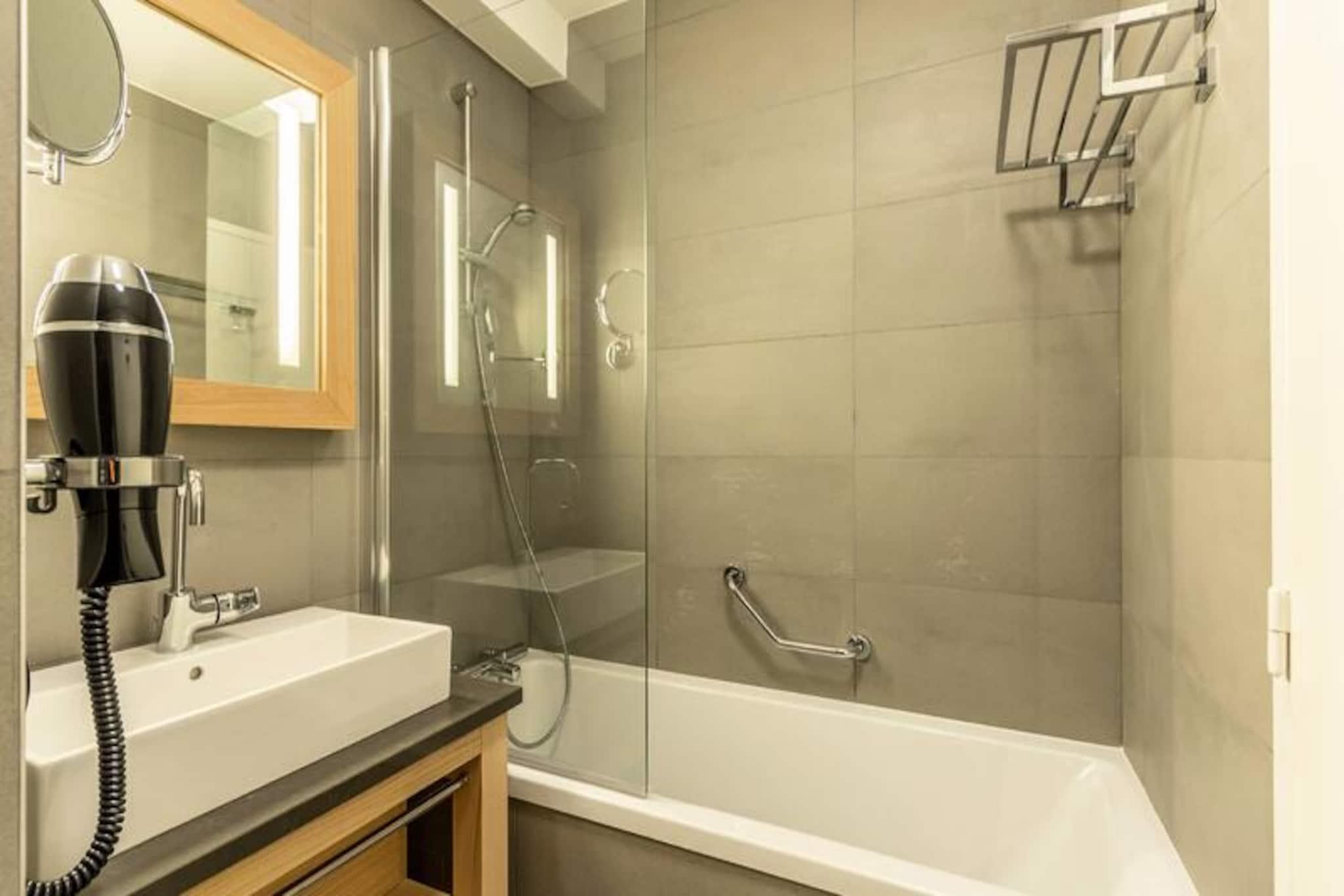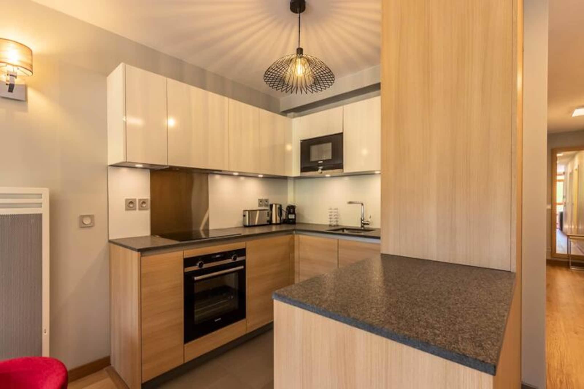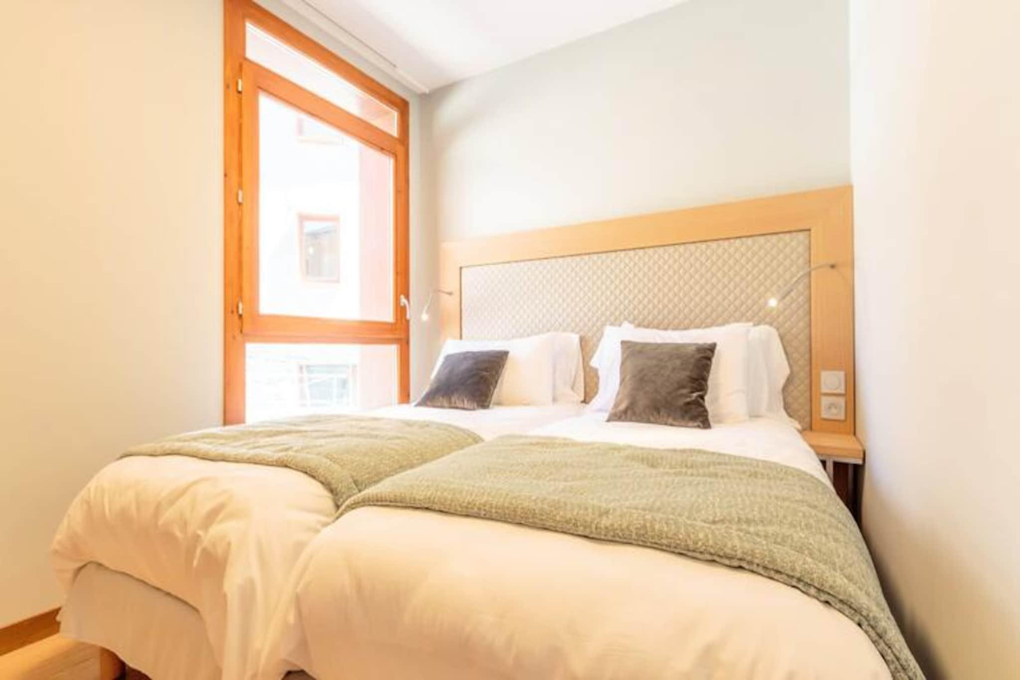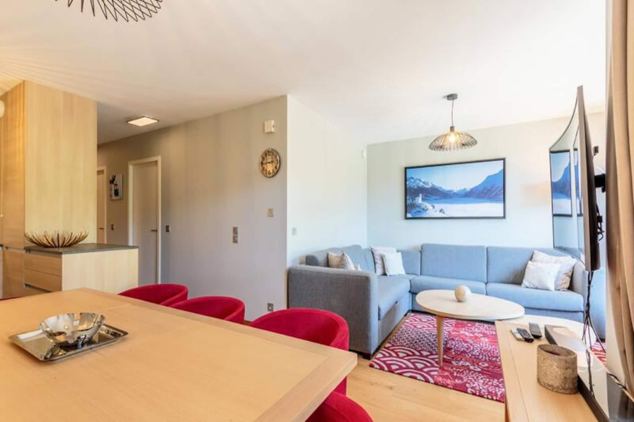 Beliggende i de fredfyldte højder af Arc 1800, tilbyder denne luksuriøse 4-værelses lejlighed i den prestigefyldte residens Les Monarques et uovertruffent alpint tilflugtssted. Med en betagende udsigt over Tarentaise-dalen og direkte ski-in/ski-out adgang, er det den perfekte base for at udforske det verdensberømte Paradiski-område. Uanset om du er her for vinterens pudrede pister eller sommerens frodige golfbaner, tilbyder denne ejendom en problemfri blanding af komfort og eventyr. \n\nLejligheden strækker sig over 86 kvadratmeter og har plads til op til syv gæster med tre elegant designede soveværelser, herunder en master suite med eget bad og toilet. Den åbne opholdsstue har en hyggelig hjørnesofa, fladskærms-tv og en sydvendt balkon, der inviterer dig til at nyde bjergudsigten. Det fuldt udstyrede køkken med Nespresso-maskine, ovn og opvaskemaskine gør det til en fornøjelse at spise derhjemme. Yderligere faciliteter inkluderer højhastigheds-Wi-Fi, et Bose Hi-Fi-system, en vaskemaskine og en tørretumbler, hvilket sikrer et ophold lige så bekvemt som det er luksuriøst. \n\nUd over lejligheden kan du forkæle dig selv med boligens førsteklasses faciliteter, herunder en opvarmet swimmingpool, spa med hammam og sauna samt et fitnessrum. Kun få skridt væk finder du Nama Springs Spa, gourmet-købmandsforretninger og Dahu-svævebanen, som tager dig til feriestedets centrum på få minutter. Om sommeren lokker den nærliggende golfbane og vandrestier, mens vinteren forvandler området til et skiløberparadis med 425 km pister lige uden for døren. \n\nUanset om du søger afslapning eller eventyr, tilbyder denne lejlighed den ultimative bjergflugt, der kombinerer moderne luksus med den tidløse charme i de franske alper.