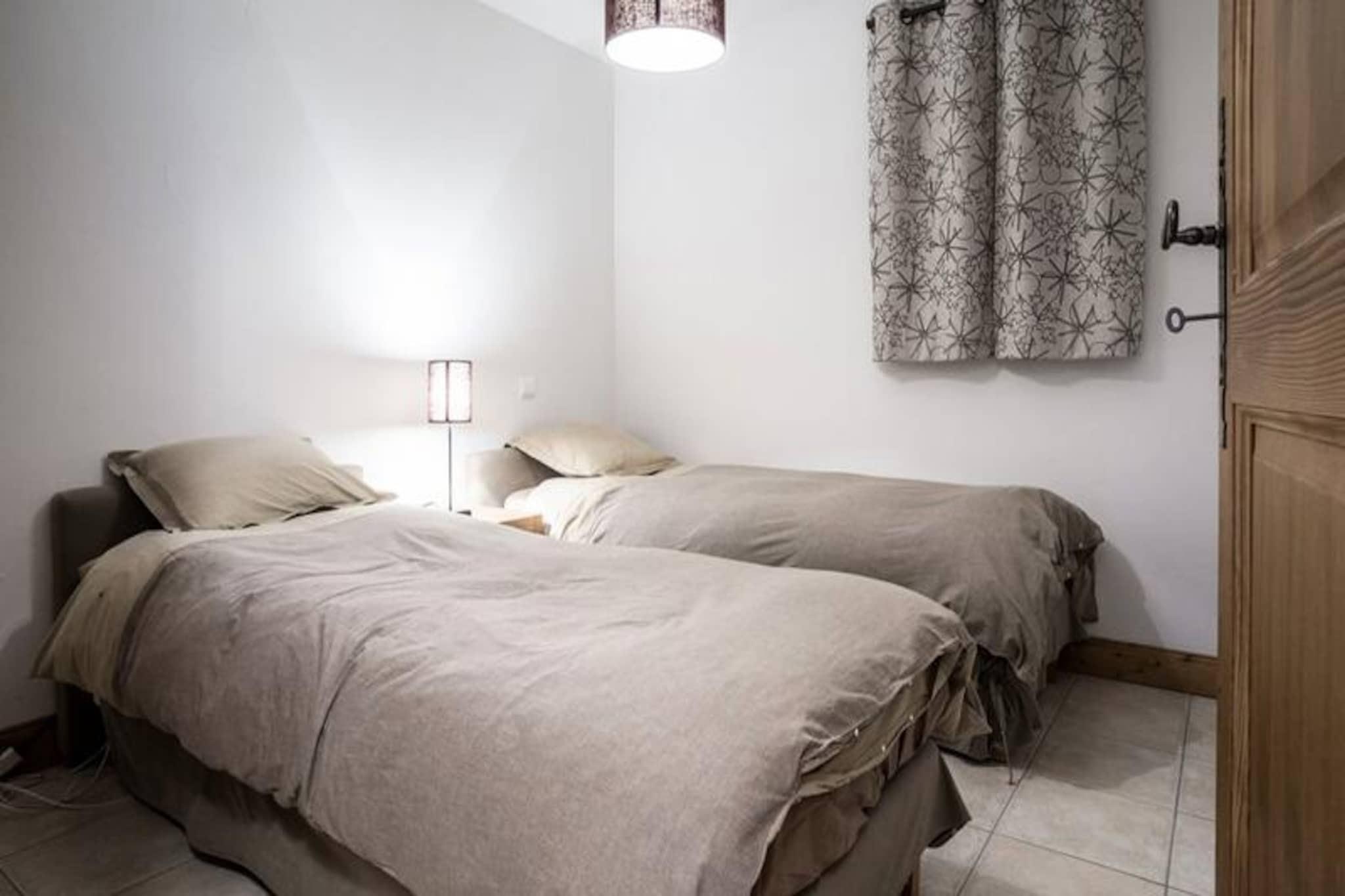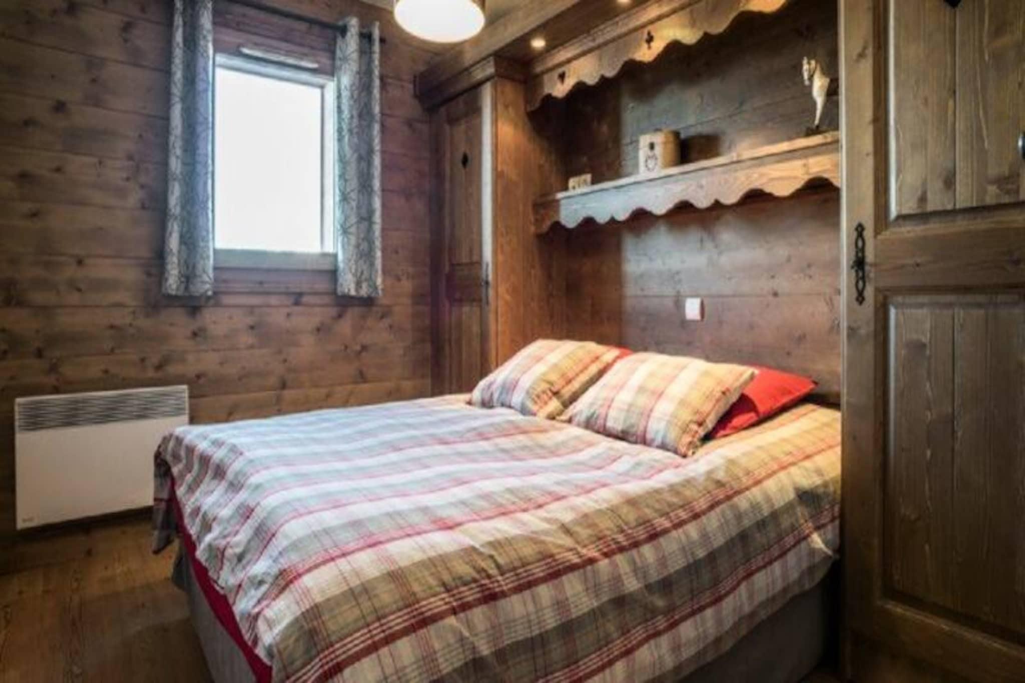 Hvor de majestætiske tinder af Mont Blanc møder den fredfyldte udsigt over dalen, tilbyder denne elegante fireværelseslejlighed i L'Iseran-residensen en uovertruffen alpin flugt. Beliggende i det rolige Le Chantel-kvarter i Arc 1800 kombinerer denne ejendom luksus med bekvemmelighed med direkte adgang til skiløb og en opvarmet indendørs pool. Forestil dig morgener tilbragt med at nyde den friske bjergluft på din private balkon, efterfulgt af spændende eventyr på skråningerne af Paradiski, et af verdens største skiområder. Uanset om du er her for vintersport eller sommervandreture, sætter det betagende panorama scenen for uforglemmelige minder. \n\nLejligheden er designet til komfort og stil og har plads til op til seks gæster fordelt på tre veludstyrede soveværelser, inklusive en master suite med eget bad og toilet. Den rummelige opholdsstue indbyder til afslapning med sin bløde sofa, tv og hjemmebiograf, mens det fuldt udstyrede køkken - komplet med opvaskemaskine, ovn og raclettegrill - gør spisning til en fornøjelse. Yderligere faciliteter såsom Wi-Fi, overdækket parkering og et skirum sikrer et problemfrit ophold. Med håndklæder, sengetøj og slutrengøring inkluderet, er hver eneste detalje omhyggeligt arrangeret for din bekvemmelighed. \n\nESF-skiskolen, butikker og restauranter ligger blot få minutter væk, og er let tilgængelige via den gratis resort-shuttle eller Dahu-svævebanen, der forbinder Le Chantel med det travle resortcentrum på bare tre minutter. Om sommeren forvandles den nærliggende nationalpark Vanoise til et paradis for vandrere og naturelskere med stier, der snor sig gennem uberørte landskaber. Til spisning tilbyder gourmet-købmanden og restauranten Le Voga Goga på Edenarc-forpladsen lækre lokale retter. \n\nUanset om du søger spændingen ved pisterne, roen i den alpine natur eller charmen i en bjerglandsby, er denne bolig din indgang til det bedste af Les Arcs. Perfekt til familier, venner eller par, og den lover et alpint tilflugtssted, der blander eventyr, afslapning og luksus i lige mål.