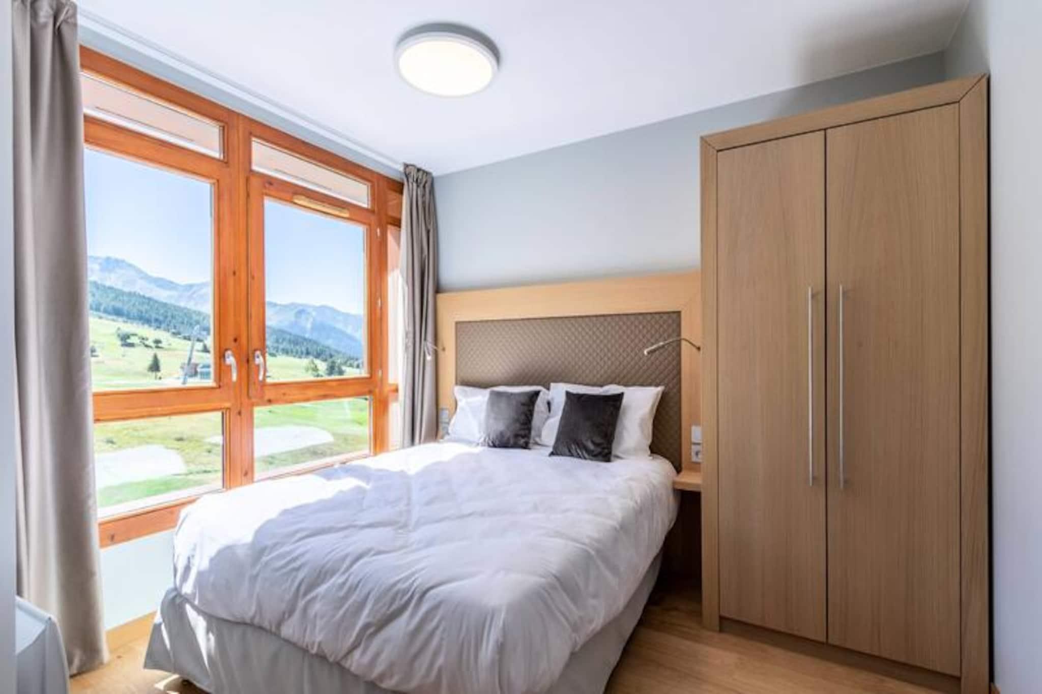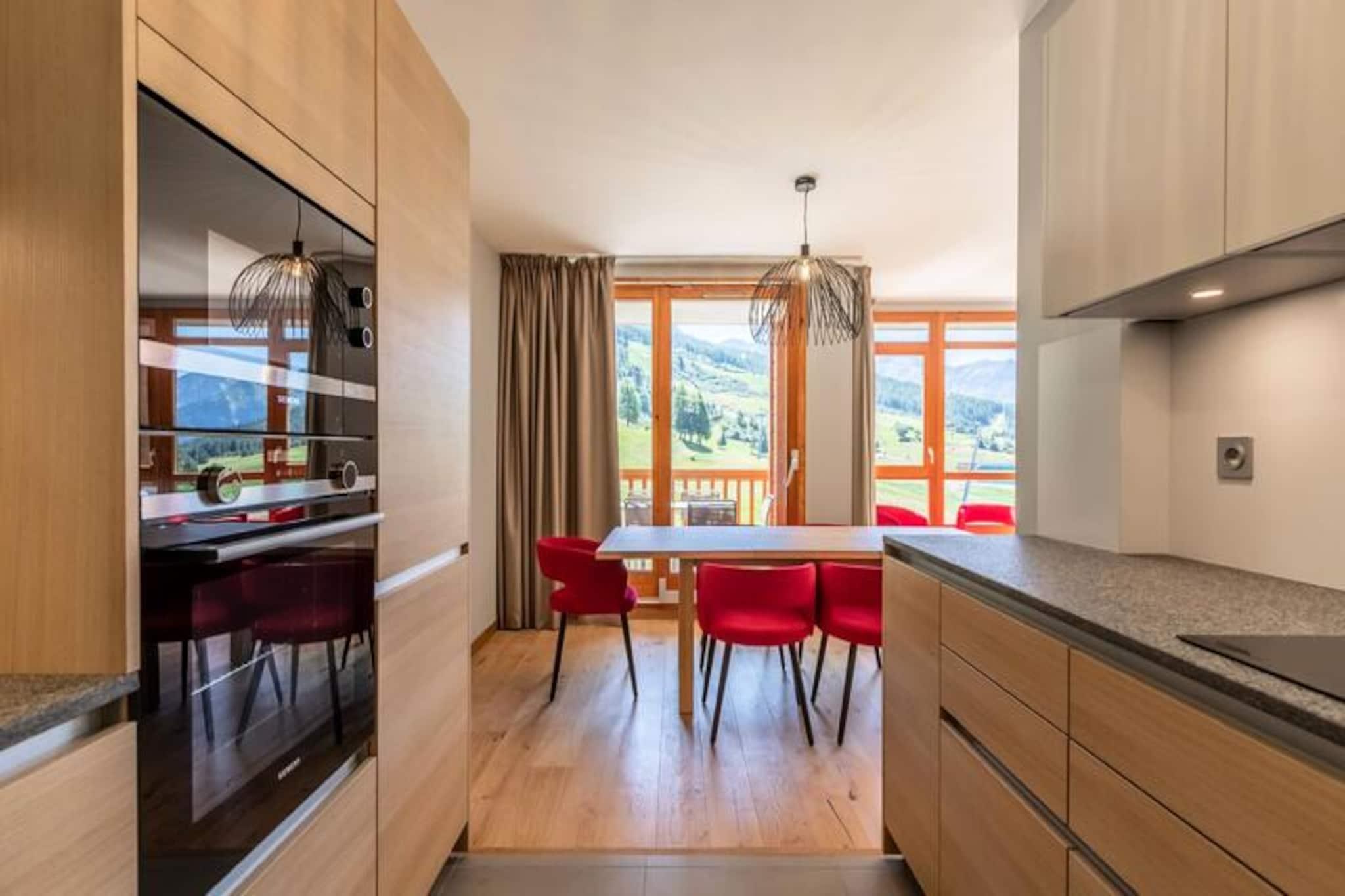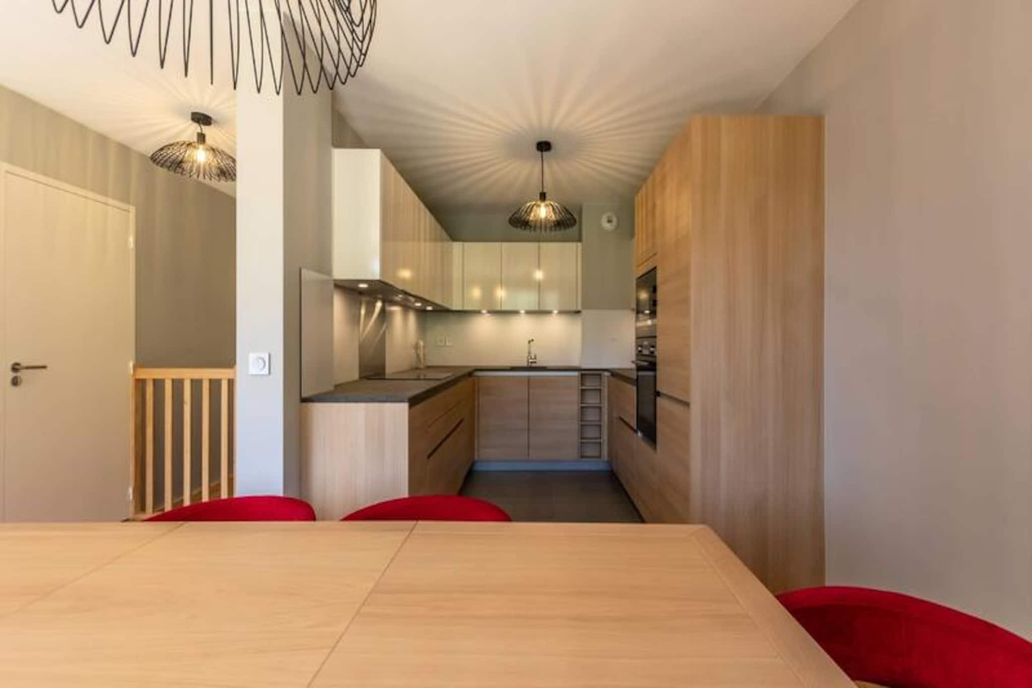 Højt over Tarentaise-dalen tilbyder denne elegante duplexlejlighed i den luksuriøse residens Les Monarques et luksuriøst alpint tilflugtssted i hjertet af Arc 1800. Med en betagende udsigt mod sydvest kombinerer ejendommen moderne komfort med charmen ved bjerglivet. Uanset om du besøger stedet for at opleve verdensklasse skiløb i Paradiski eller de fredfyldte sommerlandskaber, lover denne residens et uforglemmeligt ophold. Gæsterne kan nyde ski-in/ski-out-adgang om vinteren og nærhed til golfbanen om sommeren, hvilket sikrer en charmerende atmosfære året rundt. Lejligheden er på 98 kvadratmeter og har plads til op til seks gæster fordelt på tre smukt indrettede soveværelser, der alle har egen balkon eller eget badeværelse. Den åbne opholdsstue har en designerpejs, et Bose-lydsystem og et fuldt udstyret køkken, perfekt til hyggelige aftener efter en dag med eventyr. Yderligere faciliteter inkluderer Wi-Fi, vaskemaskine, tørretumbler og en overdækket parkeringsplads. Gæsterne har også adgang til residensens eksklusive spa, swimmingpool og fitnessrum, der tilbyder øjeblikke med afslapning og foryngelse. Ejendommen ligger i det prestigefyldte Edenarc-område, kun en kort gåtur fra Nama Springs Spa, gourmet-købmandsforretninger, skiudlejningsbutikker og Dahu-svævebanen, der forbinder til feriestedets centrum på få minutter. En gratis shuttle-service sikrer nem adgang til Arc 1800s livlige restauranter, butikker og afterski-steder. Om sommeren kan du udforske den nærliggende Vanoise Nationalpark, vandre på naturskønne stier eller nyde den fantastiske udsigt over Aiguille Rouge. Uanset om du søger spændende skieventyr eller rolige bjergflugter, er denne bolig din port til det bedste af Les Arcs. Forkæl dig selv med luksus, komfort og den uovertrufne skønhed i de franske alper.