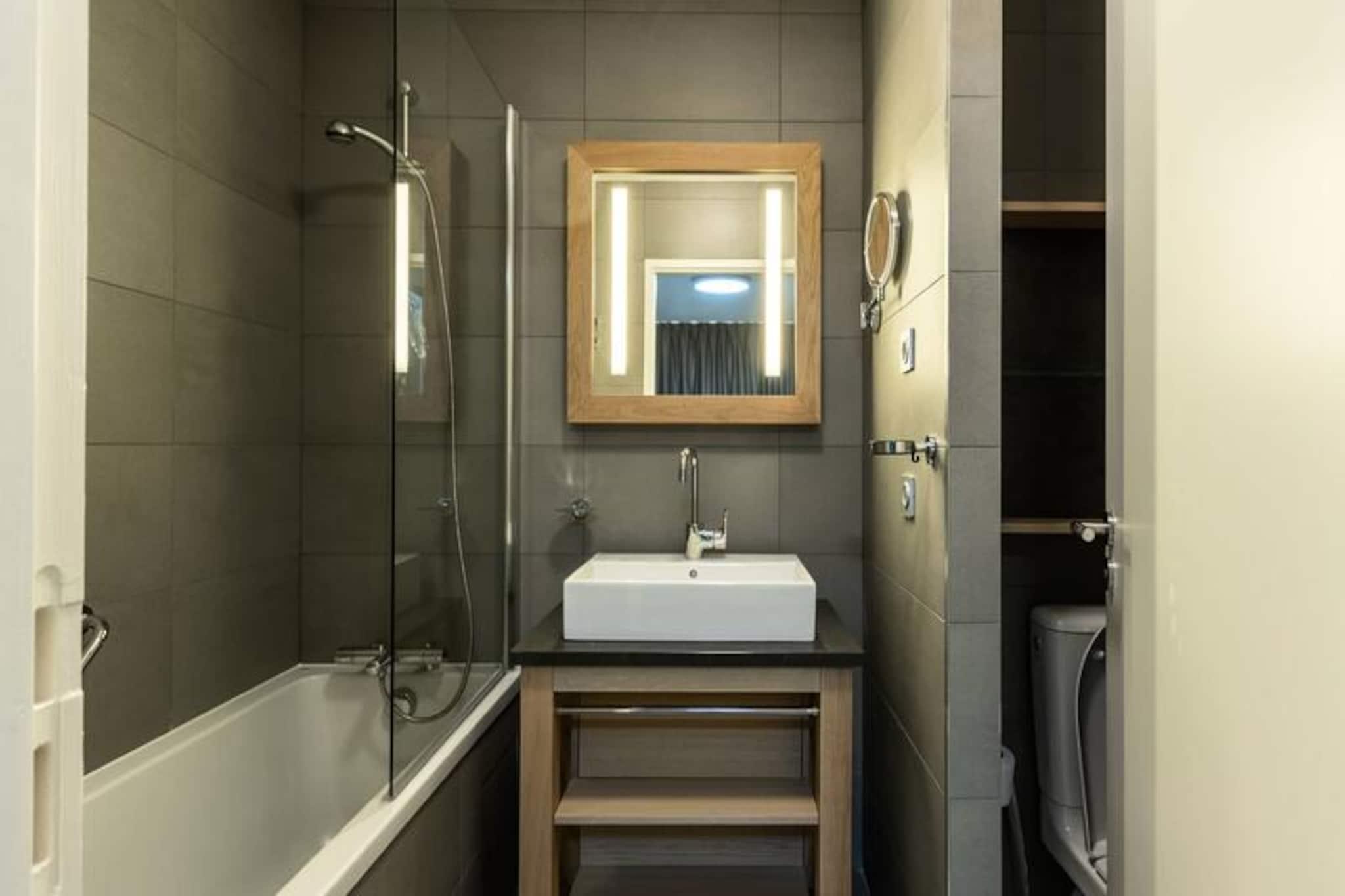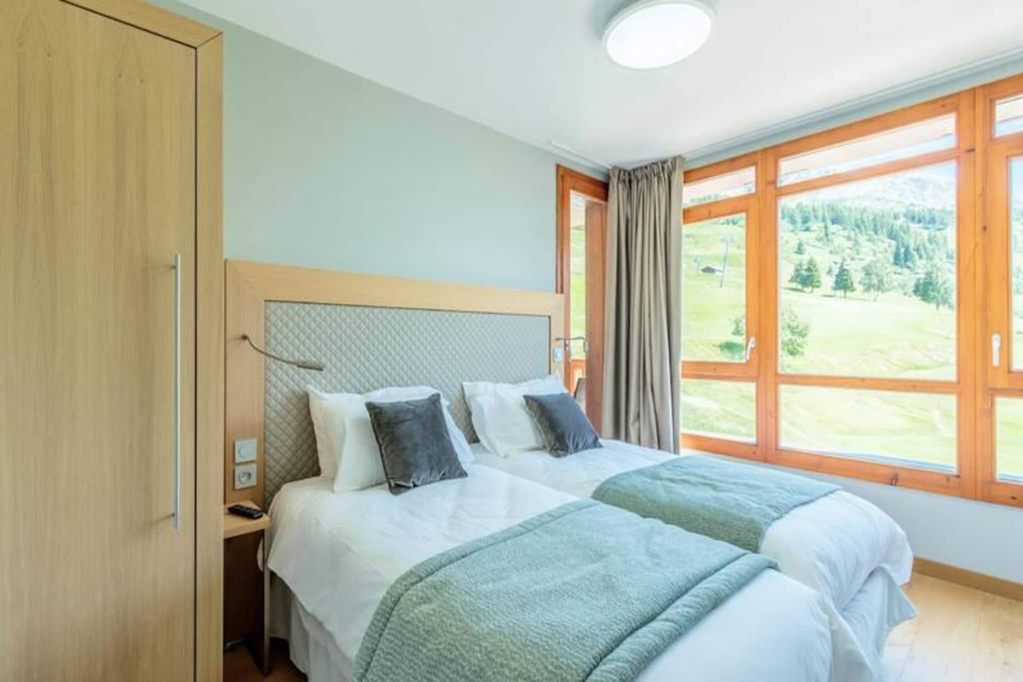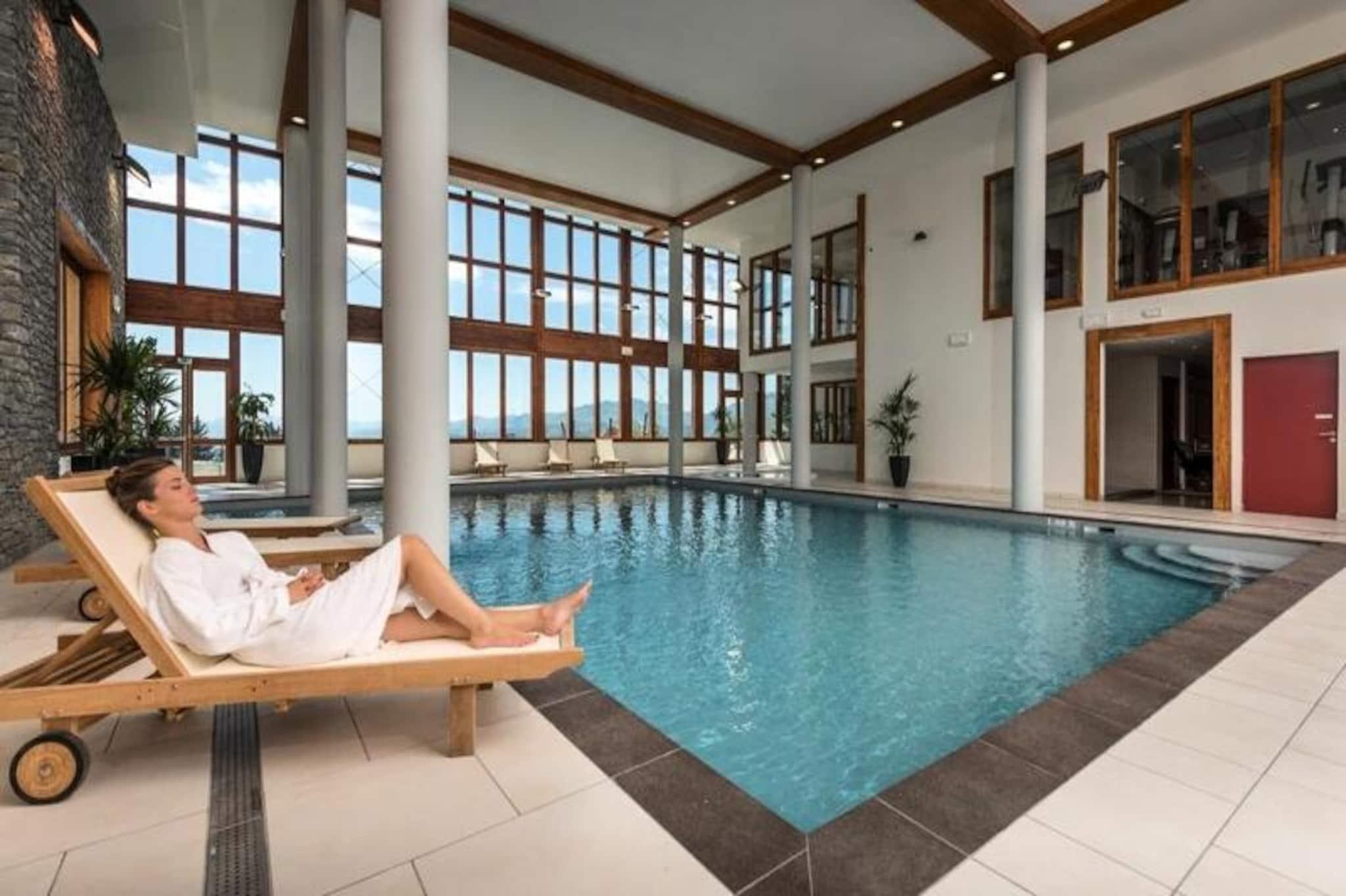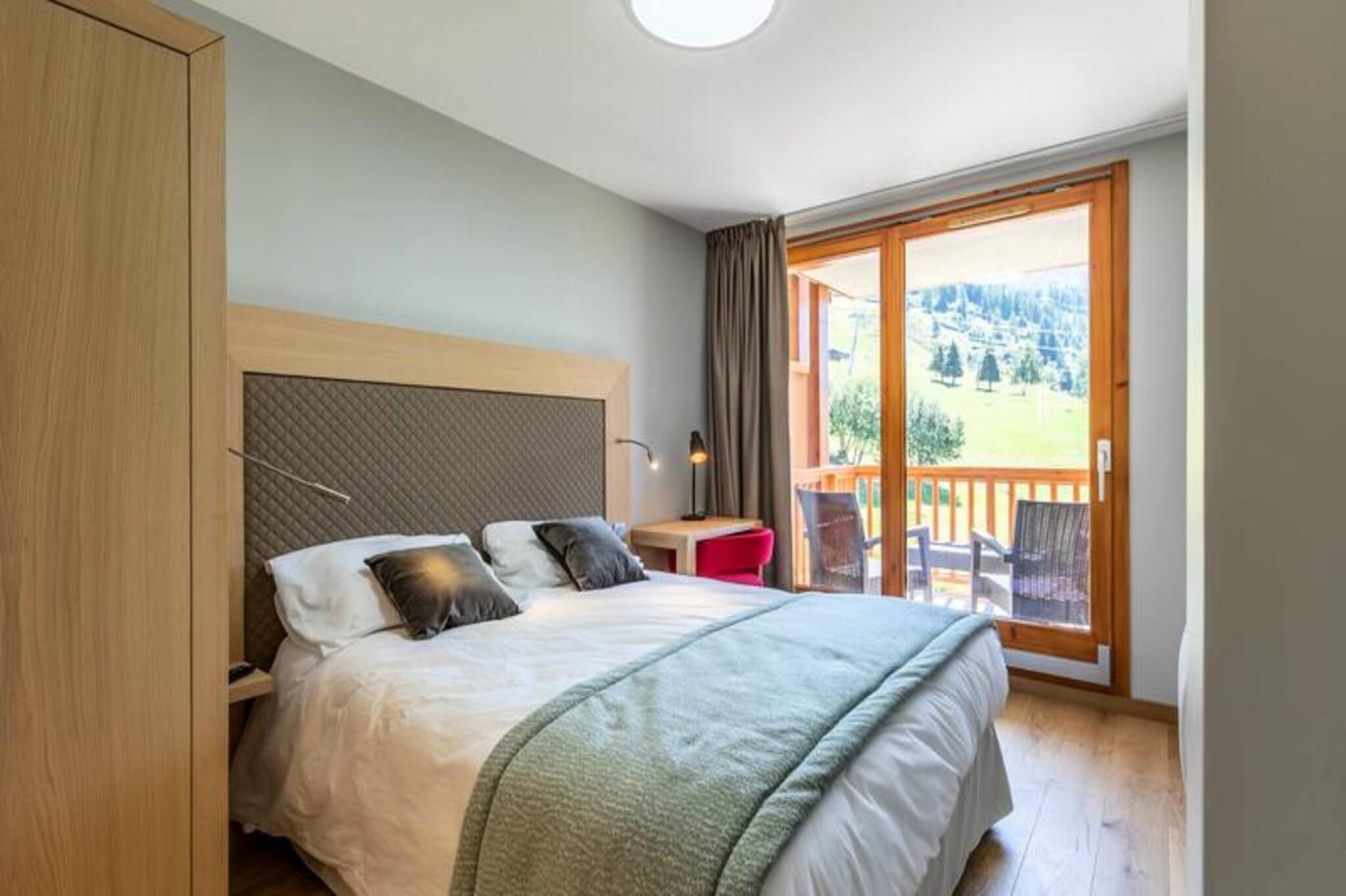 Højt over Tarentaise-dalen tilbyder denne elegante duplexlejlighed i den luksuriøse residens Les Monarques et luksuriøst alpint tilflugtssted i hjertet af Arc 1800. Med en betagende udsigt mod sydvest kombinerer ejendommen moderne komfort med charmen ved bjerglivet. Uanset om du besøger stedet for at opleve verdensklasse skiløb i Paradiski eller de fredfyldte sommerlandskaber, lover denne residens et uforglemmeligt ophold. Gæsterne kan nyde ski-in/ski-out-adgang om vinteren og nærhed til golfbanen om sommeren, hvilket sikrer en charmerende atmosfære året rundt. Lejligheden er på 98 kvadratmeter og har plads til op til seks gæster fordelt på tre smukt indrettede soveværelser, der alle har egen balkon eller eget badeværelse. Den åbne opholdsstue har en designerpejs, et Bose-lydsystem og et fuldt udstyret køkken, perfekt til hyggelige aftener efter en dag med eventyr. Yderligere faciliteter inkluderer Wi-Fi, vaskemaskine, tørretumbler og en overdækket parkeringsplads. Gæsterne har også adgang til residensens eksklusive spa, swimmingpool og fitnessrum, der tilbyder øjeblikke med afslapning og foryngelse. Ejendommen ligger i det prestigefyldte Edenarc-område, kun en kort gåtur fra Nama Springs Spa, gourmet-købmandsforretninger, skiudlejningsbutikker og Dahu-svævebanen, der forbinder til feriestedets centrum på få minutter. En gratis shuttle-service sikrer nem adgang til Arc 1800s livlige restauranter, butikker og afterski-steder. Om sommeren kan du udforske den nærliggende Vanoise Nationalpark, vandre på naturskønne stier eller nyde den fantastiske udsigt over Aiguille Rouge. Uanset om du søger spændende skieventyr eller rolige bjergflugter, er denne bolig din port til det bedste af Les Arcs. Forkæl dig selv med luksus, komfort og den uovertrufne skønhed i de franske alper.