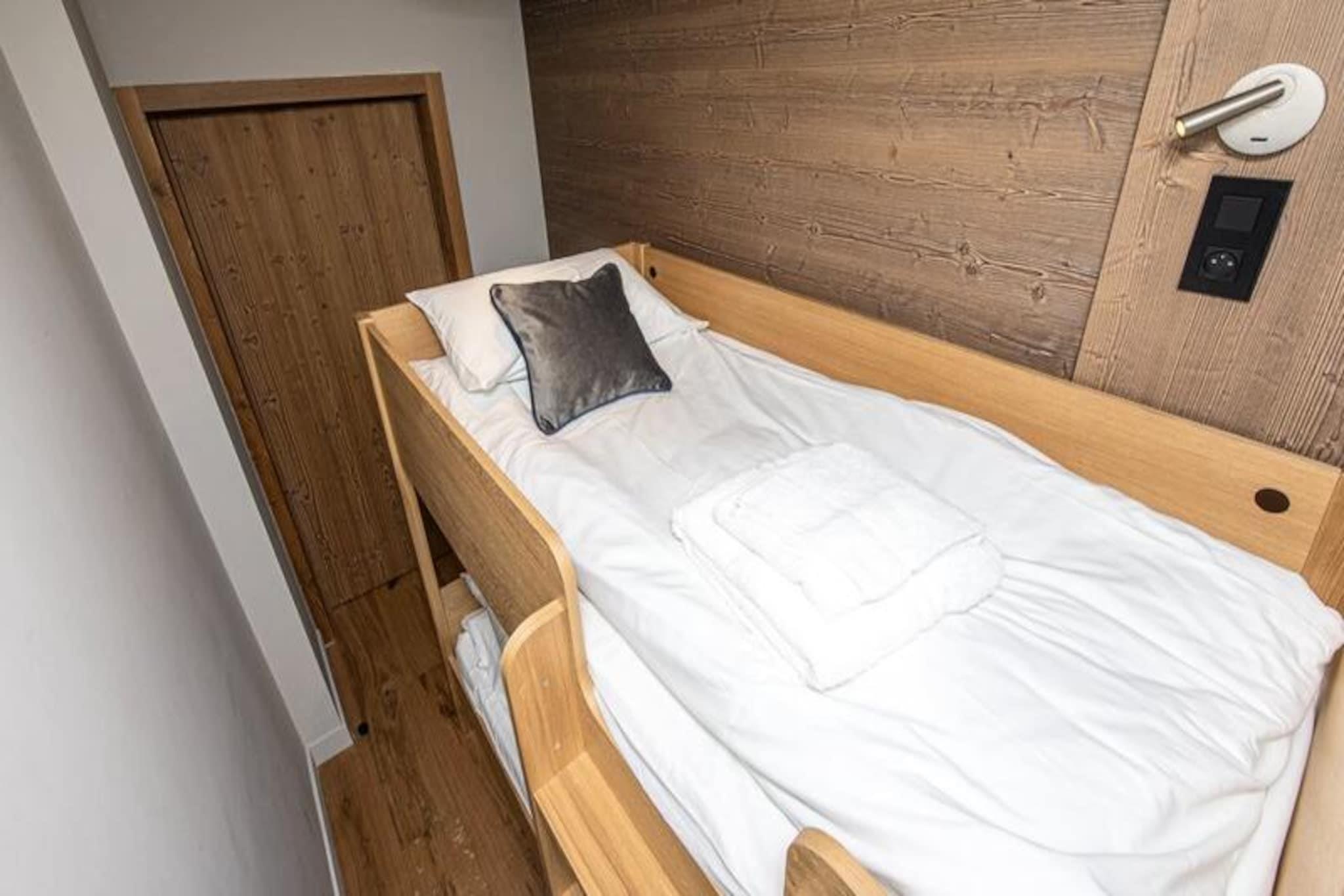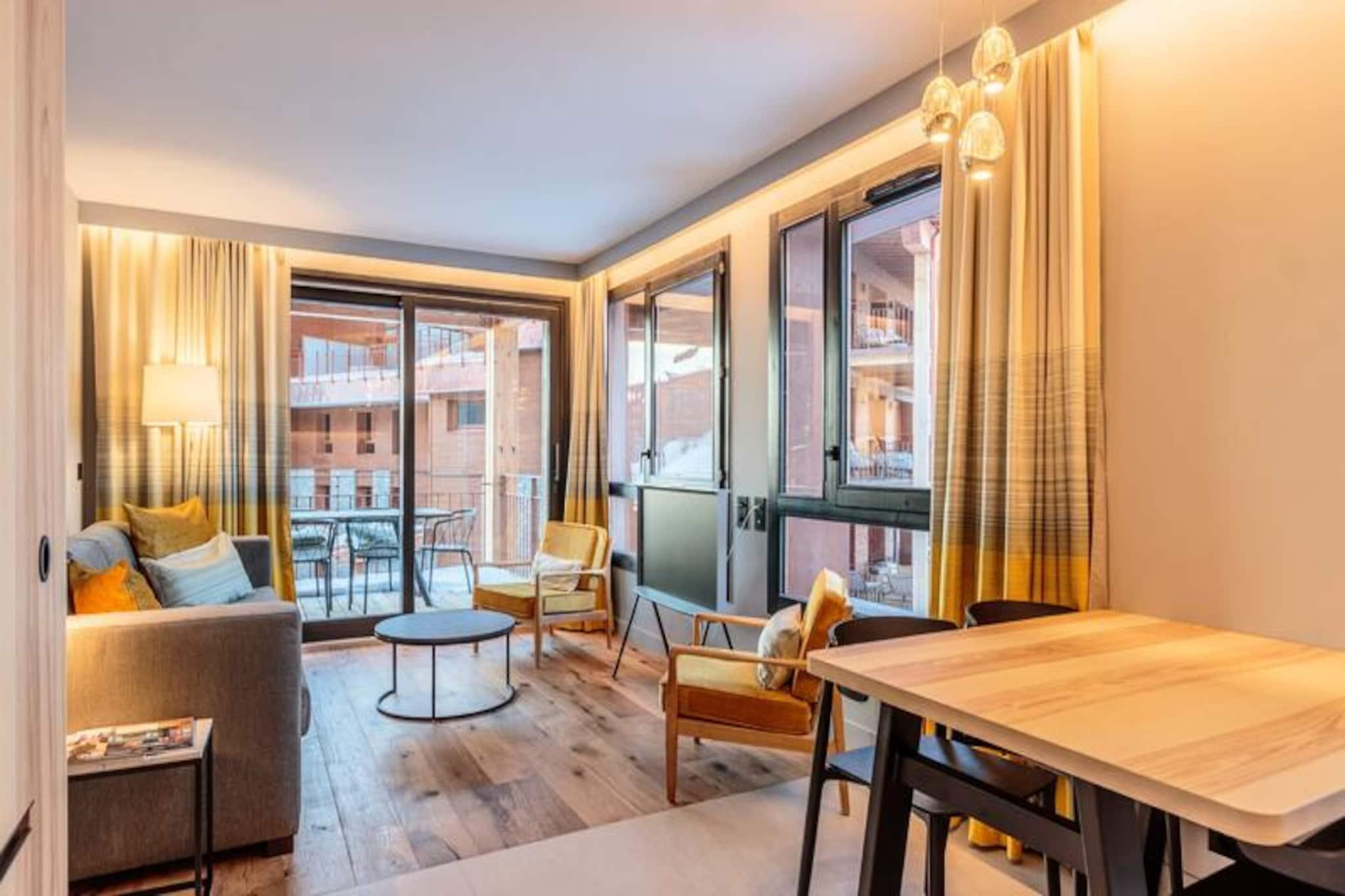 Beliggende på højderne af Arc 1800 i det fredfyldte Le Chantel-kvarter, tilbyder denne luksuriøse 4-stjernede lejlighed i den helt nye Les Cristaux-residens en uforglemmelig alpin ferie. Med en betagende panoramaudsigt over Mont Blanc og Tarentaise-dalen fra den store vestvendte terrasse føles hvert øjeblik her som et postkort, der kommer til live. Den elegante, moderne indretning og det gennemtænkte design skaber en varm og indbydende atmosfære, perfekt til at slappe af efter en dag med eventyr i bjergene. \n\nDenne rummelige lejlighed på 64 m² har komfortabel plads til op til seks gæster og byder på to elegante soveværelser, en hyggelig sovealkove og en lys opholdsstue, der åbner ud til terrassen. Det fuldt udstyrede køkken med moderne apparater inviterer dig til at tilberede lækre måltider, som du kan dele med dine kære. Yderligere faciliteter inkluderer Wi-Fi, et skiskab med støvletørrer og en overdækket parkeringsplads med en elektrisk ladestation. Gæsterne har også adgang til residensens spa, der tilbyder hammam, sauna og jacuzzi for ultimativ afslapning.\n\nLejligheden ligger kun få minutter fra Edenarc og er ideelt placeret til at udforske det pulserende feriested Les Arcs. Den nærliggende Dahu-svævebane forbinder dig med Arc 1800-snefronten på under tre minutter, mens den gratis shuttlebus mellem feriestederne sikrer nem adgang til butikker, restauranter og afterski-aktiviteter. Om vinteren tilbyder Paradiski-området 425 km pister for skientusiaster, mens sommeren forvandler området til et paradis for vandrere og naturelskere med den legendariske Vanoise Nationalpark kun et stenkast væk.\n\nUanset om du søger spændende alpine eventyr eller rolige øjeblikke omgivet af en fantastisk natur, lover Les Cristaux et bjergparadis fyldt med charme, komfort og uforglemmelige minder.