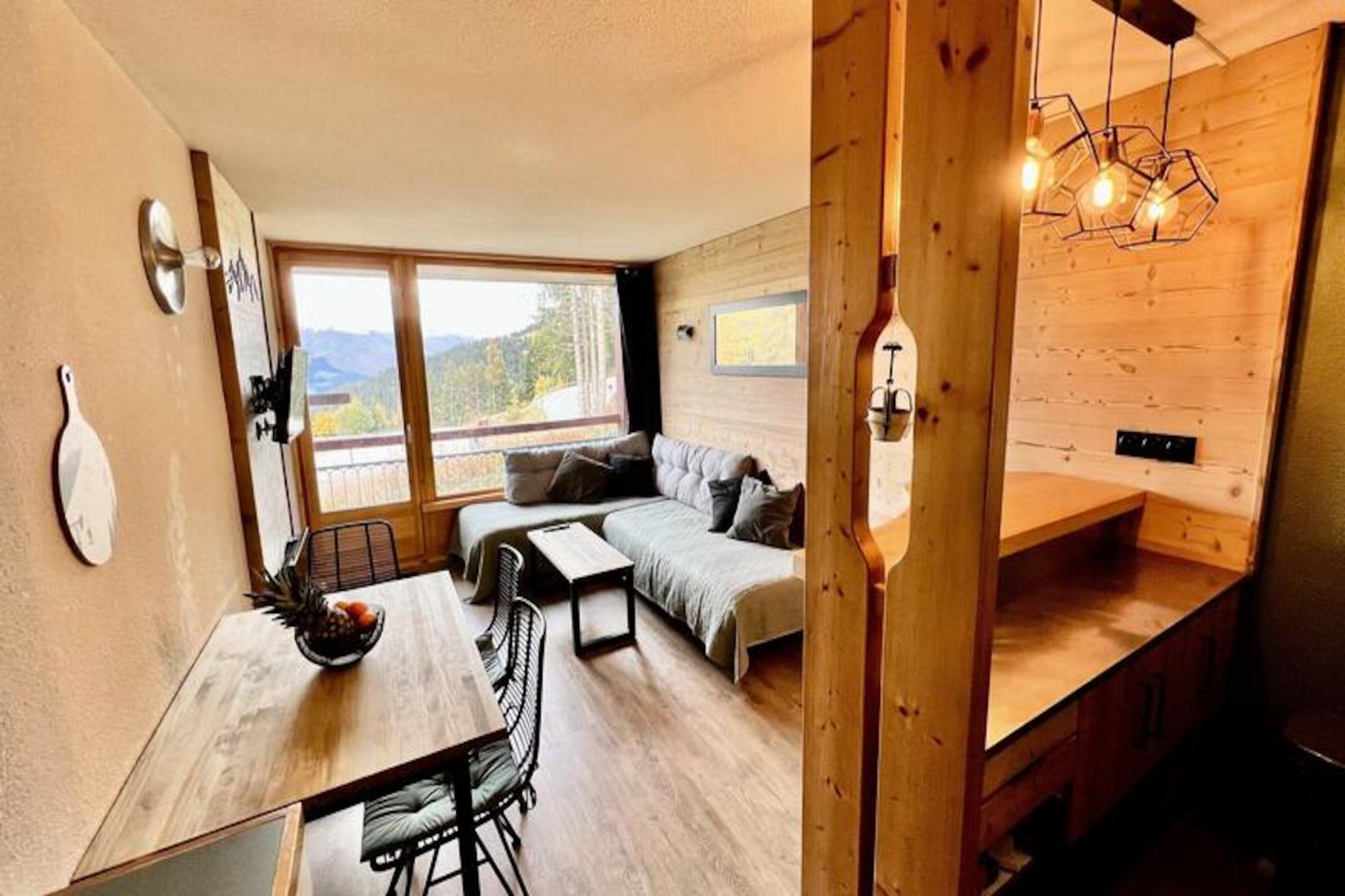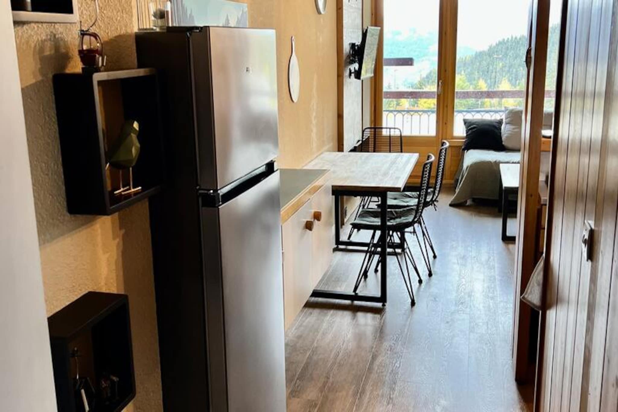 Højt over det travle Charvet-indkøbscenter tilbyder dette charmerende studie et perfekt alpint tilflugtssted med en betagende udsigt over Mont Blanc. Forestil dig at vågne op til den fredfyldte skønhed af snedækkede tinder og træde direkte ud på pisterne fra din ski-in/ski-out-bolig. Uanset om du er her for spændende vintereventyr eller rolige sommerferier, placerer denne beliggenhed dig i hjertet af begivenhederne, samtidig med at den tilbyder et fredeligt tilflugtssted at slappe af efter en dag med udforskning. De sydvendte altaner har udsigt over de livlige pister, mens de nordøstvendte tilbyder et roligt panorama af grantræer og majestætiske bjerge. Dette fuldt renoverede studie på 31 m² har komfortabel plads til op til fem gæster, hvilket gør det ideelt til familier eller små grupper. Entréhallen har to køjesenge og en udtræksseng, mens stuen tilbyder to hyggelige sovesofaer og et fladskærms-tv til aftenafslapning. Det moderne køkken er udstyret med alt, hvad du behøver, herunder induktionskogeplader, mikrobølgeovn, miniovn, køleskab med frostboks, opvaskemaskine og Nespresso-kaffemaskine. Badeværelset er omhyggeligt designet, og miljøvenligt sengelinned er tilgængeligt mod et ekstra gebyr. Et skiopbevaringsområde med elektrisk støvle- og handsketørrer sikrer, at dit udstyr er klar til det næste eventyr. Bekvemmelighed er nøglen her, med ESF Skimômes børneklub, shuttle-stoppesteder og parkeringsmuligheder inden for rækkevidde. Ejendommen er forbundet med Belles Challes og tilbyder gratis Wi-Fi på resortet, så du kan holde forbindelsen, mens du nyder din alpeferie. Om vinteren er pisterne lige uden for døren, mens sommeren giver muligheder for vandreture, cykling og at nyde de franske alpers naturlige skønhed. Med sin uovertrufne beliggenhed, moderne faciliteter og fantastiske udsigt er dette studie det perfekte valg til en mindeværdig bjergferie.
