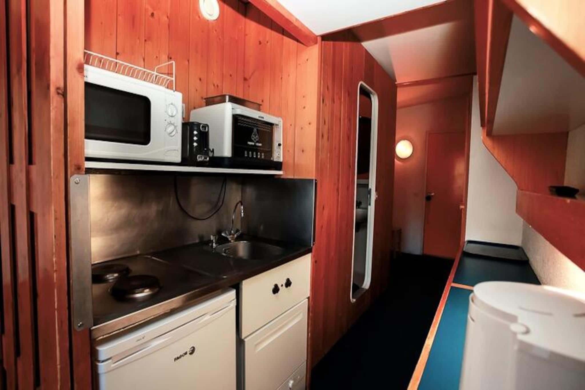 Højt over det pulserende Charvet-indkøbscenter tilbyder dette hyggelige bjergstudie en ægte ski-in/ski-out-oplevelse i hjertet af Paradiski-området. Beliggende på 11. sal i Belles Challes-residensen, tilbyder det en betagende nordøstvendt udsigt over Mont Blanc og de omkringliggende fyrretræsbeklædte tinder, hvilket skaber et idyllisk alpint tilflugtssted. Uanset om du er her for at grave dig gennem frisk puddersne eller blot nyde den fredfyldte bjergatmosfære, placerer denne ejendom dig i centrum af det hele. \n\nStudioet er designet til op til fire gæster og har en smart indretning, der inkluderer et bjerghjørne med to køjesenge og en stue med to komfortable sovesofaer. Tekøkkenet er fuldt udstyret med moderne apparater såsom en miniovn, mikrobølgeovn, køleskab og opvaskemaskine, hvilket gør det nemt at tilberede solide måltider efter en dag på pisterne. Den tæppebelagte opholdsstue, tv'et og den private balkon sikrer et varmt og indbydende miljø at slappe af og koble fra. Bemærk venligst, at køjesengene ikke er egnede til børn under seks år, og kæledyr er ikke tilladt. \n\nTræd udenfor, og du vil finde dig selv direkte på pisterne, med butikker, restauranter og Charvet-shuttlebussen mellem feriestederne lige i nærheden. For dem, der ankommer i bil, er der både overdækket og udendørs parkeringsmuligheder i nærheden (mod betaling om vinteren). Ejendommen tilbyder også gratis Wi-Fi på resortet, hvilket sikrer, at du forbliver forbundet under hele dit ophold. \n\nMed sin uovertrufne beliggenhed, fantastiske udsigt og gennemtænkte faciliteter er dette studie den perfekte base for et uforglemmeligt alpint eventyr. Uanset om du besøger stedet om vinteren for at stå på ski eller om sommeren for at vandre og udforske, lover dette charmerende tilflugtssted minder for livet.