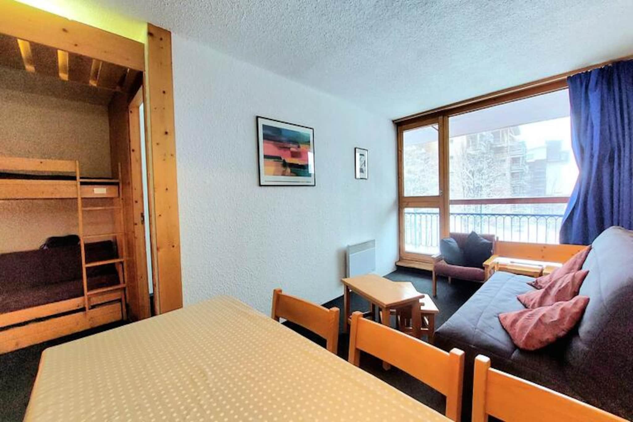 Højt over Villards' travle hjerte i Les Arcs 1800 tilbyder denne charmerende alpine lejlighed et varmt og indbydende tilflugtssted for din bjergferie. Med sin sydvestvendte balkon vil du blive forkælet med en betagende udsigt over dalen og uforglemmelige solnedgange, der maler himlen i nuancer af guld og karmosinrød. Uanset om du er her for spændingen ved skiløb eller roen ved sommervandreture, placerer denne bolig dig i centrum af det hele, med ski-in/ski-out adgang, der sikrer ubesværede eventyr lige fra døren. \n\nIndvendigt er lejligheden omhyggeligt designet til at rumme op til seks gæster. Stuen har en komfortabel sovesofa, mens soveværelset har to enkeltsenge, og det hyggelige hytteområde har køjesenge, der er perfekte til børn over seks år. Det fuldt udstyrede køkken inviterer dig til at tilberede solide måltider efter en dag med udforskning, komplet med elektriske kogeplader, mikrobølgeovn/ovn, opvaskemaskine og essentielle apparater som kaffemaskine og elkedel. Moderne bekvemmeligheder såsom gratis Wi-Fi og miljøvenligt sengetøj sikrer et behageligt og bæredygtigt ophold. \n\nTræd udenfor og oplev den pulserende landsby Villards, hvor butikker, restauranter og afterski-aktiviteter kun ligger en kort gåtur væk. Om vinteren lokker pisterne med uberørt sne, mens sommeren forvandler området til et paradis for vandrere og cyklister. Nærliggende shuttle-stoppesteder giver nem adgang til andre feriesteder, hvilket gør det nemt at udforske det bredere Paradiski-område. \n\nUanset om du er på jagt efter pudrede pister eller rolige stier, tilbyder denne lejlighed den perfekte blanding af komfort, bekvemmelighed og alpin charme. Lad de franske alpers skønhed inspirere til uforglemmelige minder under dit ophold.