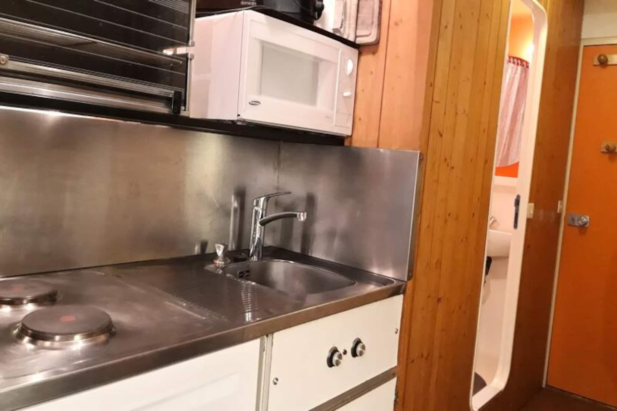 Midt i den pulserende energi i Les Arcs 1800 tilbyder denne charmerende studiohytte et hyggeligt alpint tilflugtssted med uovertruffen ski-in/ski-out adgang. Beliggende over Charvet indkøbscenter, placerer denne bolig dig lige i hjertet af begivenhederne, med pisterne og butikkerne kun få skridt væk. Uanset om du er her for spændingen ved skiløb eller den fredfyldte udsigt over bjergene, lover denne studiolejlighed i stueetagen et ophold fyldt med komfort og bekvemmelighed. \n\nDet 25 m² store studio er designet til at rumme op til fire gæster og har en varm og indbydende opholdsstue med en alkove og en sovesofa med udtræksseng samt to enkeltsofaer. Tekøkkenet er fuldt udstyret med moderne apparater, herunder opvaskemaskine, vaskemaskine, mikrobølgeovn og kaffemaskine, hvilket sikrer, at du har alt, hvad du behøver til en ferie med selvhusholdning. Den sydvestvendte balkon tilbyder udsigt over det travle feriested, mens den nordøstvendte mulighed giver et roligt panorama af grantræer og Mont Blanc i det fjerne. \n\nBoligen er udstyret med en elevator, og der er parkeringsmuligheder i nærheden for ekstra bekvemmelighed. Gæsterne kan også nyde gratis Wi-Fi og miljøvenlig linnedservice for et bæredygtigt ophold. Med shuttle-holdepladsen mellem feriestederne lige udenfor er det nemt at udforske området. \n\nDette studie ligger perfekt ved foden af ??pisterne og er en ideel base for både vintersportsentusiaster og sommereventyrere. Uanset om du snor dig gennem frisk puddersne eller vandrer i et betagende alpint landskab, venter uforglemmelige minder på denne dejlige bjergferie.