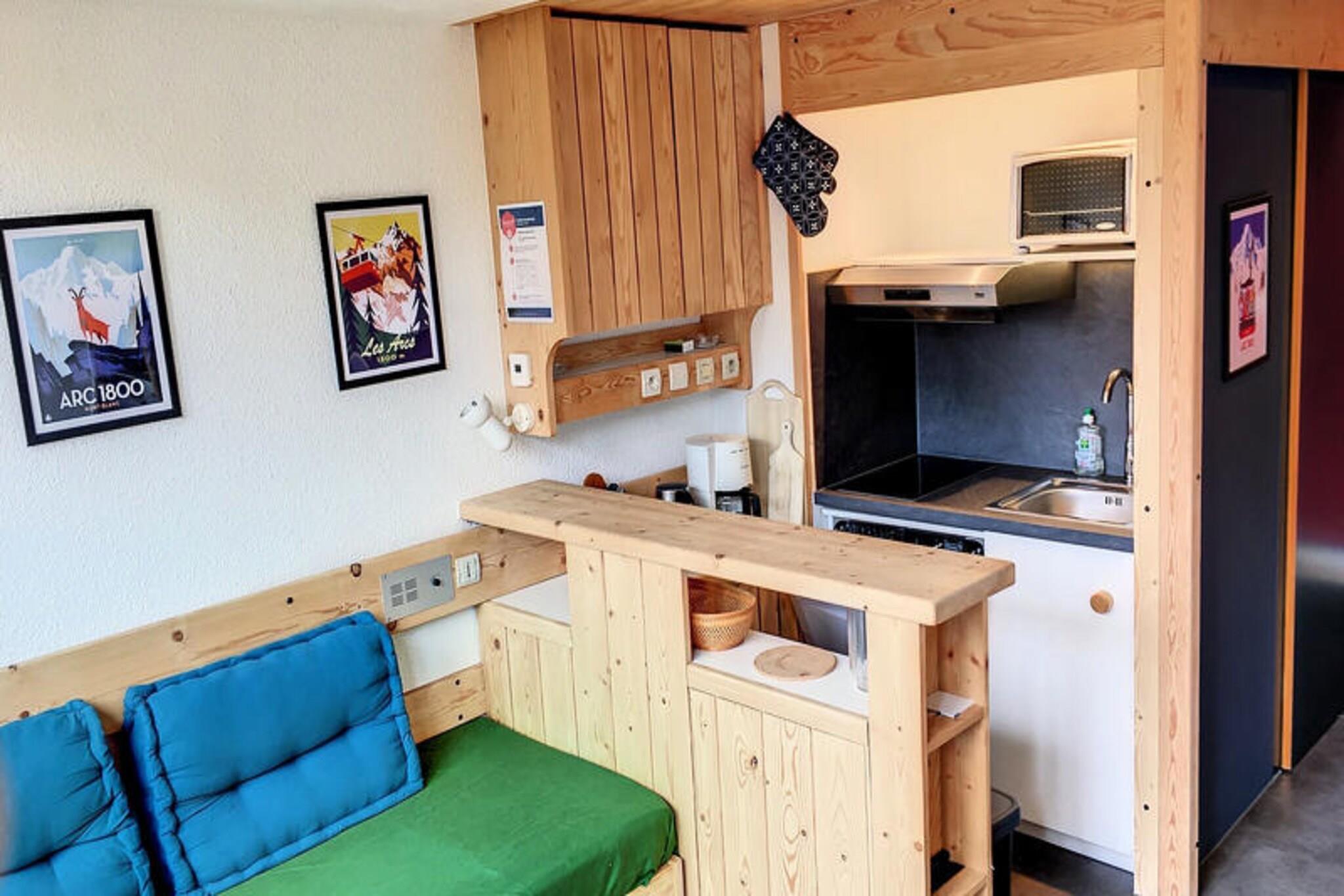 Nyd den fredfyldte alpine charme i Charmettoger, hvor denne hyggelige duplexlejlighed tilbyder en rolig oase ved foden af ??Aiguille Grive 1-pisterne. Forestil dig at træde ud af din dør og ud på pisterne med direkte adgang til skisportssteder lige for enden af ??gangen. Dette fredelige tilflugtssted er perfekt beliggende for dem, der søger både eventyr og afslapning, omgivet af betagende bjergudsigter og den friske, forfriskende luft i de franske alper. Den sydvendte balkon inviterer dig til at nyde solen, mens du beundrer den uspolerede naturlige skønhed, der strækker sig foran dig. Indenfor er lejligheden omhyggeligt designet til at rumme op til fire gæster. Entréhallen fører til et badeværelse med badekar og toilet, mens det fuldt udstyrede tekøkken har tre elektriske kogeplader, en ovn, et køleskab og en opvaskemaskine - perfekt til at tilberede solide måltider efter en dag på pisterne. Stuen, komplet med et spisebord og en komfortabel bænk, tilbyder et indbydende rum at slappe af. Ovenpå tilbyder mezzaninen to forskudte enkeltsenge, et hyggeligt afslapningsområde med en lænestol og et fjernsyn. Et separat soveværelse med en dobbeltseng sikrer afslappende nætter for alle. Selve boligen er udstyret med elevatorer og tilbyder bekvemme parkeringsmuligheder, herunder overdækket parkering ved Charmettoger og gratis parkering langs vejen. En købmand i boligen sikrer, at du har alle dine fornødenheder lige ved hånden, mens Charmettogers rolige omgivelser lover et afslappende ophold. For dem, der ønsker at udforske yderligere, ligger shuttle-stationen kun få skridt væk og forbinder dig med den pulserende energi i Les Arcs. Uanset om du er her for at grave dig gennem uberørt sne, sole dig i sommersolen eller blot nyde roen i bjergene, er denne duplexlejlighed din port til uforglemmelige alpine minder.