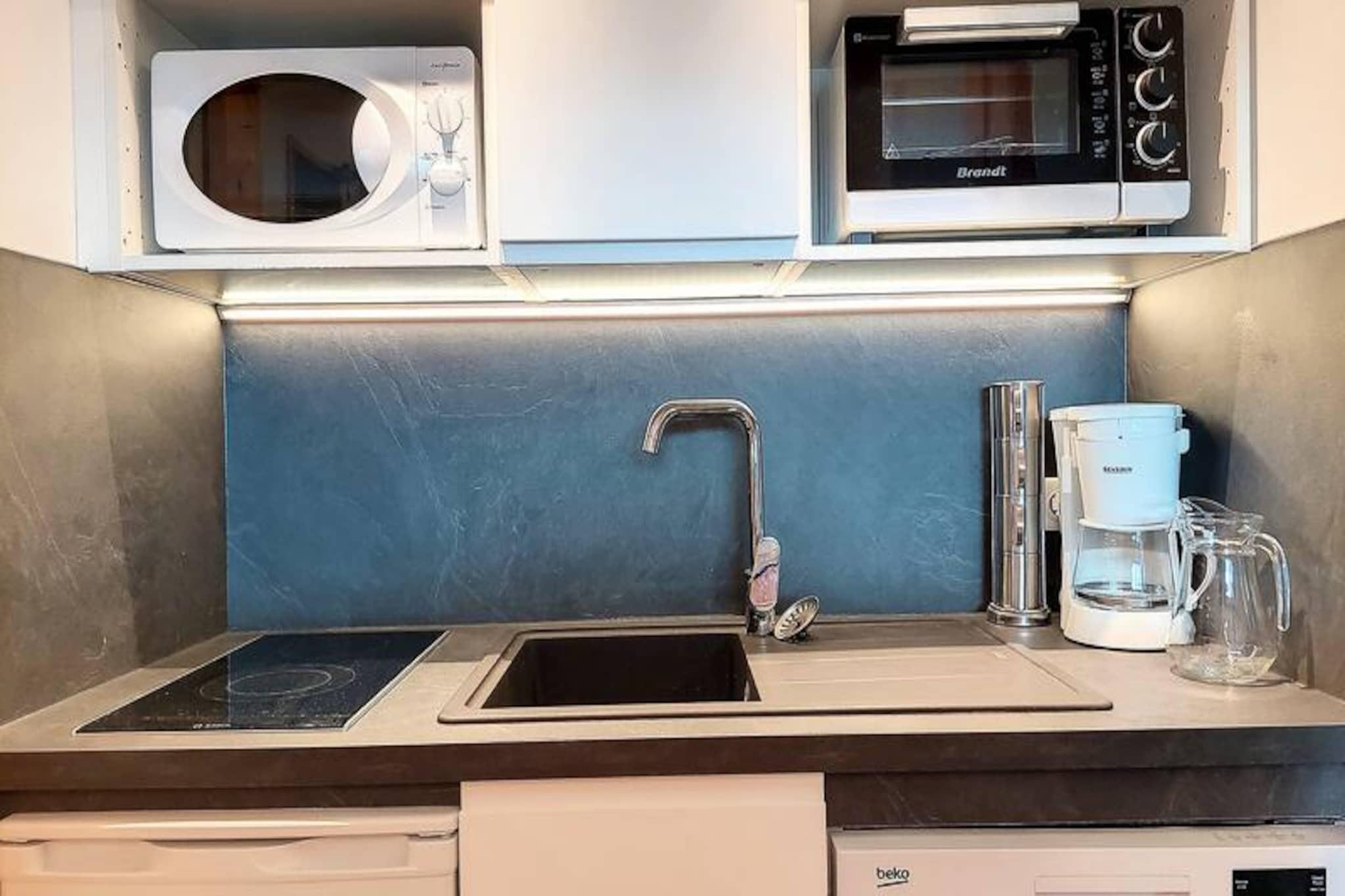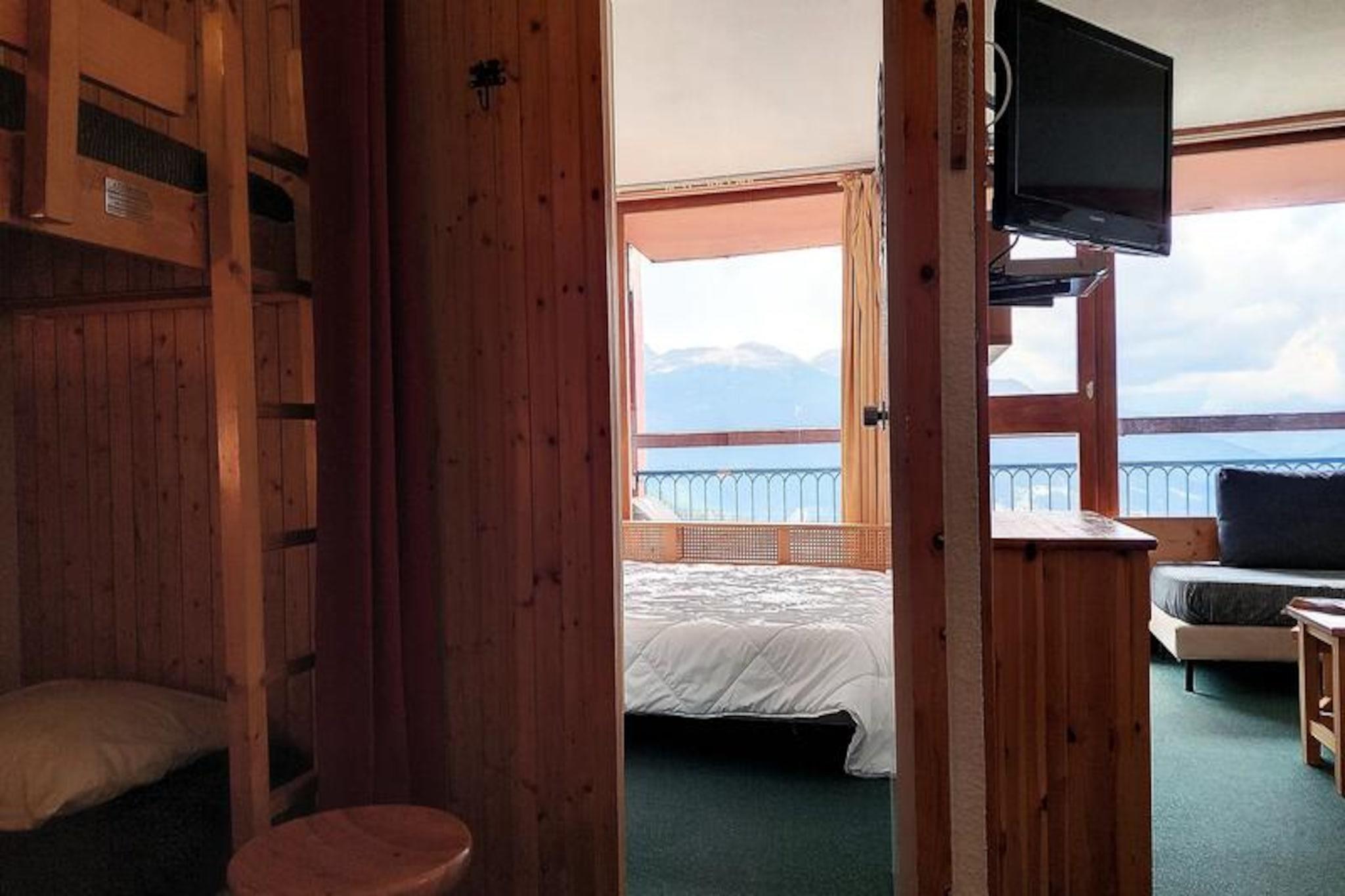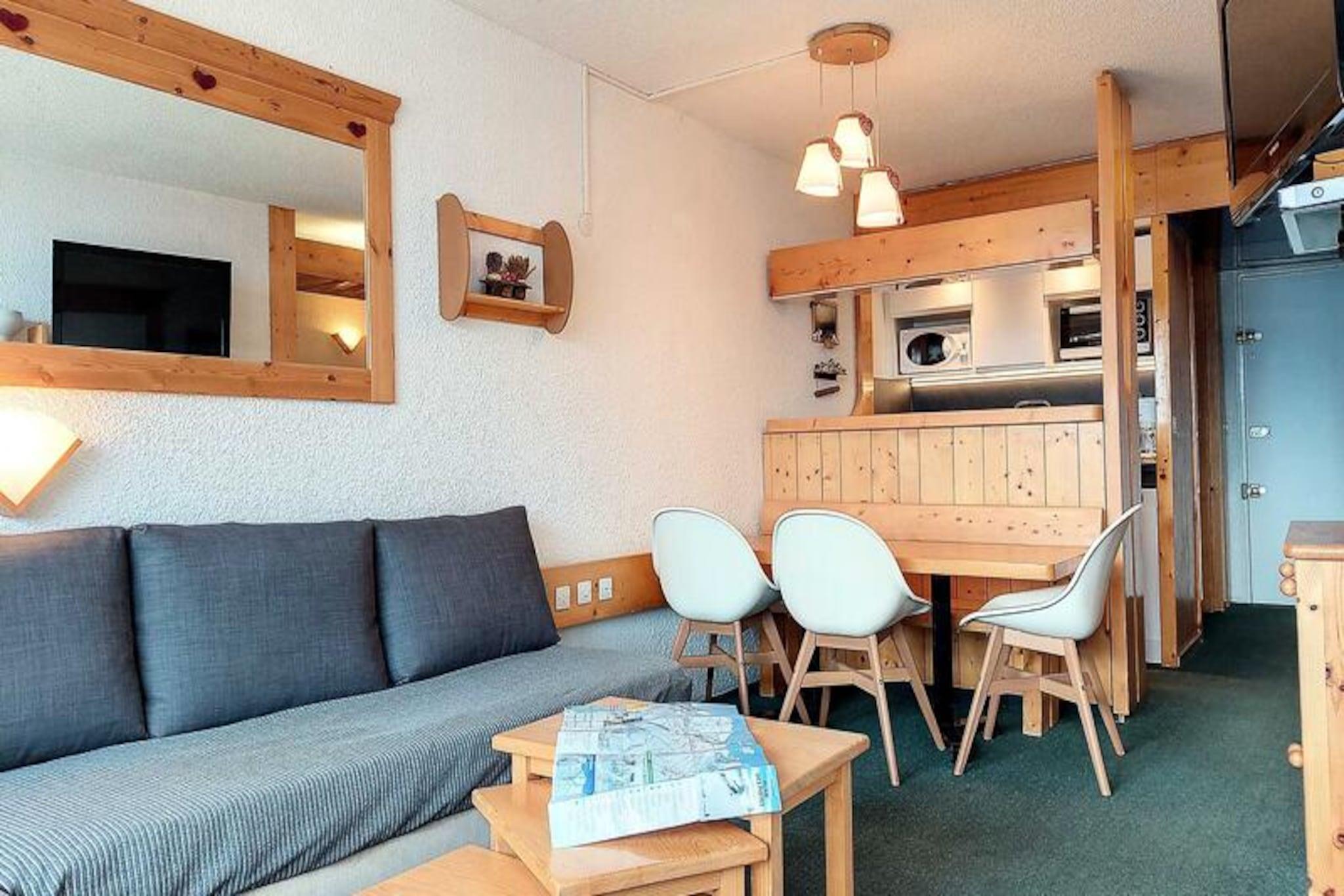 Højt over den glitrende dal tilbyder denne charmerende lejlighed i Nova 3-residensen et perfekt alpint tilflugtssted i hjertet af Villards, Les Arcs 1800. Med pister og butikker kun få skridt væk, vågner du op til en betagende udsigt over solnedgangen over Tarentaise-dalen eller de fredfyldte fyrretræsklædte bakker, afhængigt af din orientering. Uanset om du er her for spændende skieventyr eller rolige sommervandreture, fordyber denne beliggenhed dig i de franske alpers skønhed. \n\nLejligheden er designet til op til seks gæster og har en hyggelig stue med to komfortable sovesofaer og et tv, et privat soveværelse med en blød dobbeltseng og et kahytområde med køjesenge, der er perfekte til børn over seks år. Det veludstyrede køkken inkluderer keramiske kogeplader, en miniovn, mikrobølgeovn, køleskab, opvaskemaskine og endda en Nespresso-maskine til din morgenkaffe. Et separat badeværelse og toilet sikrer bekvemmelighed, mens miljøvenligt sengetøj og rengøringsservice er tilgængelig for at forbedre dit ophold. Gratis Wi-Fi holder dig forbundet, og balkonen tilbyder et fredeligt sted at slappe af med en fantastisk udsigt. \n\nTræd udenfor og nyd adgang til ski-in/ski-out til pister i verdensklasse, eller udforsk den pulserende landsby Villards med dens indkøbscenter, restauranter og shuttle-stop mellem feriestederne. Om sommeren forvandles regionen til et paradis for vandrere og cyklister med stier, der snor sig gennem frodige landskaber og alpine enge. I nærheden lokker de majestætiske tinder af Aiguille Rouge og Vanoise Nationalpark til både eventyrere og naturelskere. \n\nUanset om du søger adrenalinfyldte dage på pisterne eller rolige aftener med solnedgang, tilbyder denne bolig den perfekte balance mellem komfort, bekvemmelighed og uforglemmelig alpin charme.