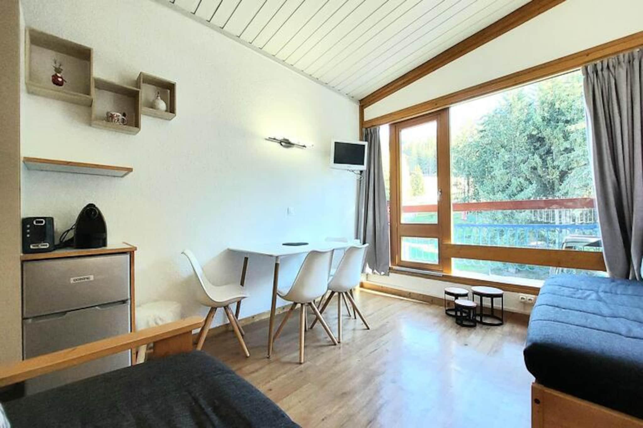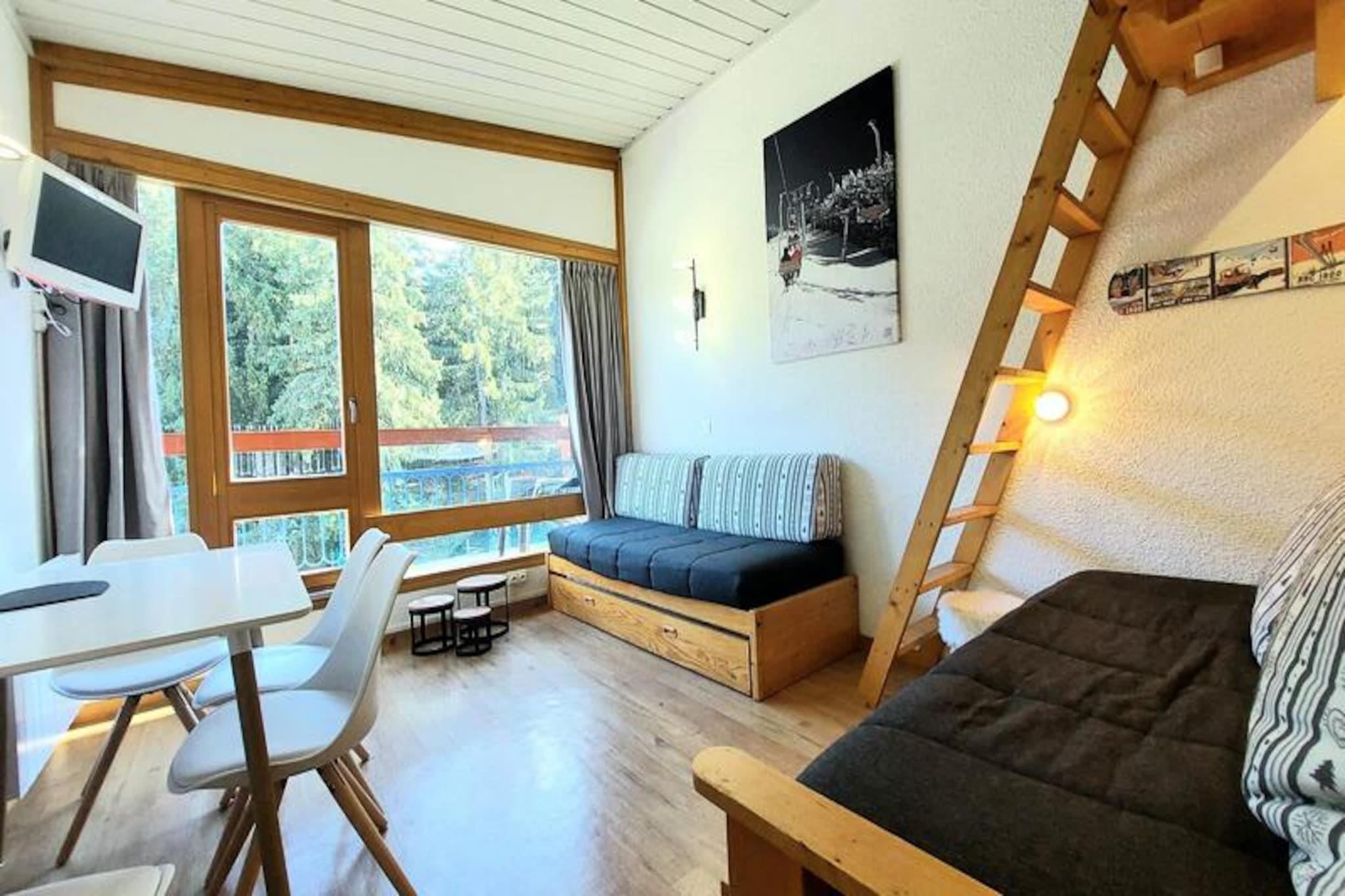 Forestil dig at vågne op til den fredfyldte skønhed af snedækkede grantræer og den friske alpine luft, med pisterne lige uden for døren. Denne charmerende studiohytte, beliggende mellem de maleriske landsbyer Le Charvet og Les Villards, tilbyder en ægte ski-in/ski-out-oplevelse for dem, der søger den ultimative bjergferie. Uanset om du er en erfaren skiløber eller en førstegangsbesøgende, vil bekvemmeligheden ved at træde direkte ud på snefronten gøre din ferie uforglemmelig. Boligens sydvendte balkon tilbyder et roligt tilflugtssted, hvor man kan nyde den fantastiske udsigt over grantræerne og den travle snefront, mens den nordvestvendte beliggenhed afslører en betagende udsigt over dalen nedenfor. \n\nDenne 25 m² store studiohytte er designet til at rumme op til fem gæster og er omhyggeligt indrettet til komfort og funktionalitet. Hytten har to hyggelige køjesenge, perfekte til børn eller venner, mens stuen tilbyder en alsidig sovesofa med udtræksmulighed, der kan omdannes til en dobbeltseng og en ekstra enkeltseng. Det veludstyrede tekøkken har moderne apparater såsom miniovn, mikrobølgeovn, køleskab med fryser, opvaskemaskine, vaskemaskine og endda en Nespresso-kaffemaskine til din morgenkaffe. Efter en dag på pisterne kan du slappe af i den varme atmosfære i opholdsstuen, komplet med fladskærms-tv og gratis Wi-Fi, så du kan holde forbindelsen.\n\nResidensen kan prale af praktiske faciliteter, herunder elevatorer, overdækket parkering i nærheden (mod et gebyr om vinteren) og en skikælder til nem opbevaring af dit udstyr. Shuttle-stoppet mellem resorterne ved Charvet sikrer problemfri adgang til at udforske de omkringliggende landsbyer og attraktioner. For ekstra bekvemmelighed er bomulds- eller miljøvenlige lagner og slutrengøring tilgængelig mod et ekstra gebyr.\n\nUanset om du er her for spændingen ved skiløb, charmen ved de alpine landsbyer eller blot for at slappe af midt i naturen, er denne studiohytte den perfekte base for dit eventyr. Med sin uovertrufne beliggenhed og hyggelige faciliteter lover den et mindeværdigt ophold i hjertet af de franske alper.