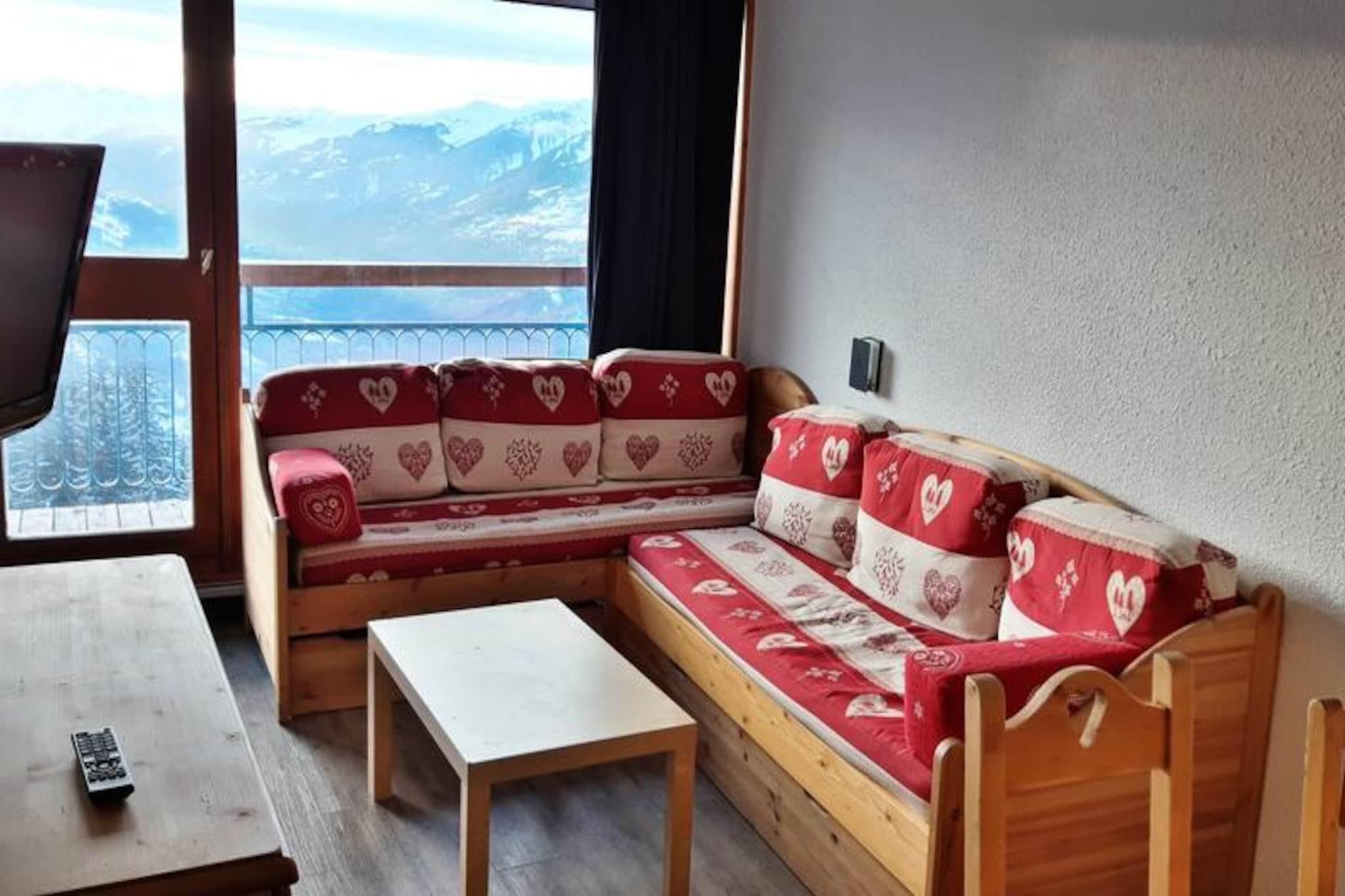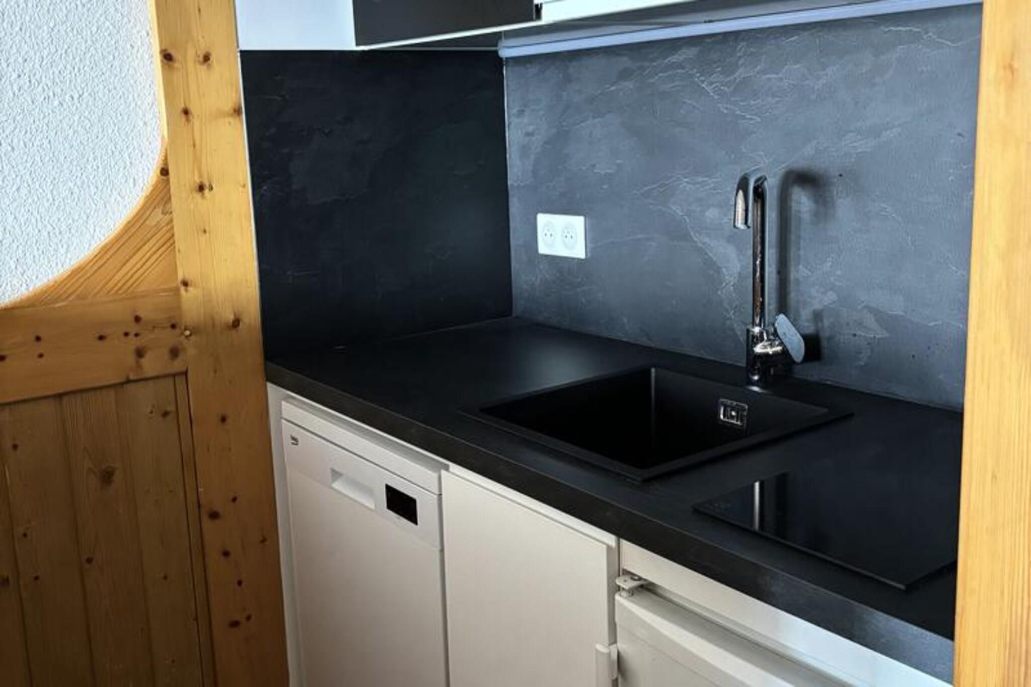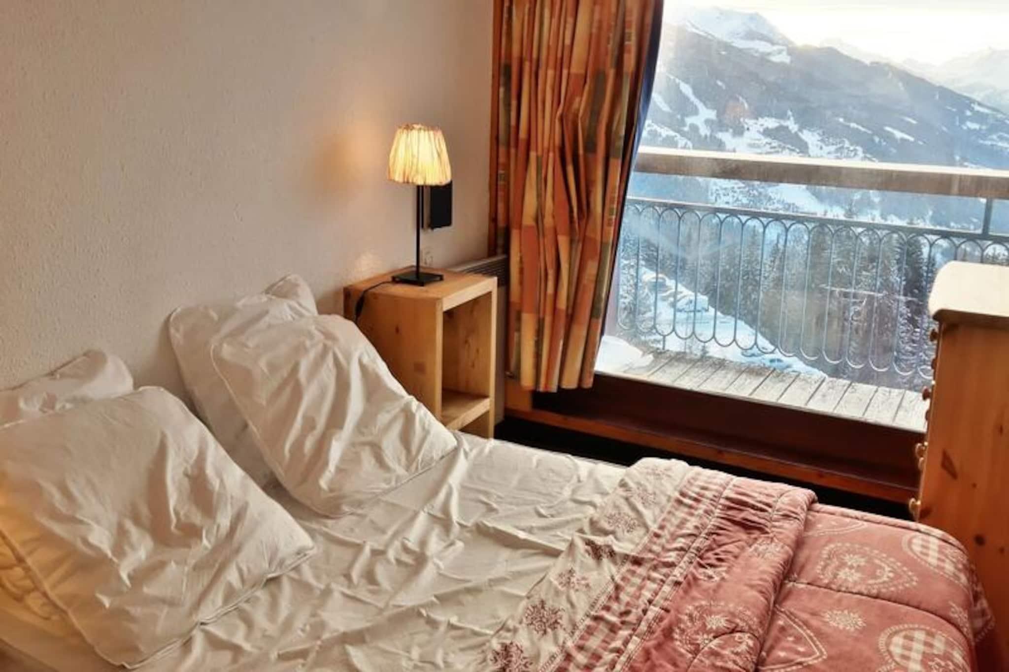 Mens solen går ned over Tarentaise-dalen, inviterer denne charmerende toværelses hyttelejlighed i hjertet af Les Arcs 1800 dig til at opleve magien i de franske alper. Beliggende på 4. sal i Nova 3-residensen, tilbyder dette hyggelige tilflugtssted en betagende udsigt over dalen og grantræerne, hvilket skaber en rolig kulisse for dine alpine eventyr. Uanset om du er her for at stå på ski på de verdensberømte Paradiski-pister eller blot nyde bjergatmosfæren, er denne bolig perfekt placeret til både afslapning og udforskning. \n\nLejligheden er designet til at rumme op til seks gæster og har en komfortabel stue med to sovesofaer, et privat soveværelse med en dobbeltseng og et hytteområde med køjesenge, ideelt til familier eller vennegrupper. Det fuldt udstyrede køkken inkluderer en miniovn, mikrobølgeovn, køleskab, opvaskemaskine og essentielle apparater som en kaffemaskine og brødrister, hvilket sikrer, at du har alt, hvad du behøver til hjemmelavede måltider. Laminatparketgulv tilføjer et strejf af moderne komfort, mens gratis Wi-Fi holder dig forbundet under hele dit ophold. Lejligheden er miljøvenlig, med valgfri linned og rengøringsservice tilgængelig for at forbedre din oplevelse. \n\nTræd udenfor, og du vil befinder dig kun få øjeblikke fra pisterne og butikkerne, med ski-in/ski-out-adgang, der gør det nemt at omfavne den alpine livsstil. Boligen er bekvemt placeret i nærheden af ??shuttle-stoppesteder, der forbinder dig til Villards og Roignaix for endnu mere udforskning. Om vinteren kan du nyde spændingen ved skiløb, mens sommeren forvandler området til et paradis for vandrere, cyklister og naturentusiaster. \n\nUanset om du jagter puddersne på pisterne eller beundrer solnedgangen fra din balkon, tilbyder denne lejlighed den perfekte blanding af komfort, bekvemmelighed og naturlig skønhed. Skab uforglemmelige minder i Les Arcs 1800, hvor hvert øjeblik er gennemsyret af alpin charme.