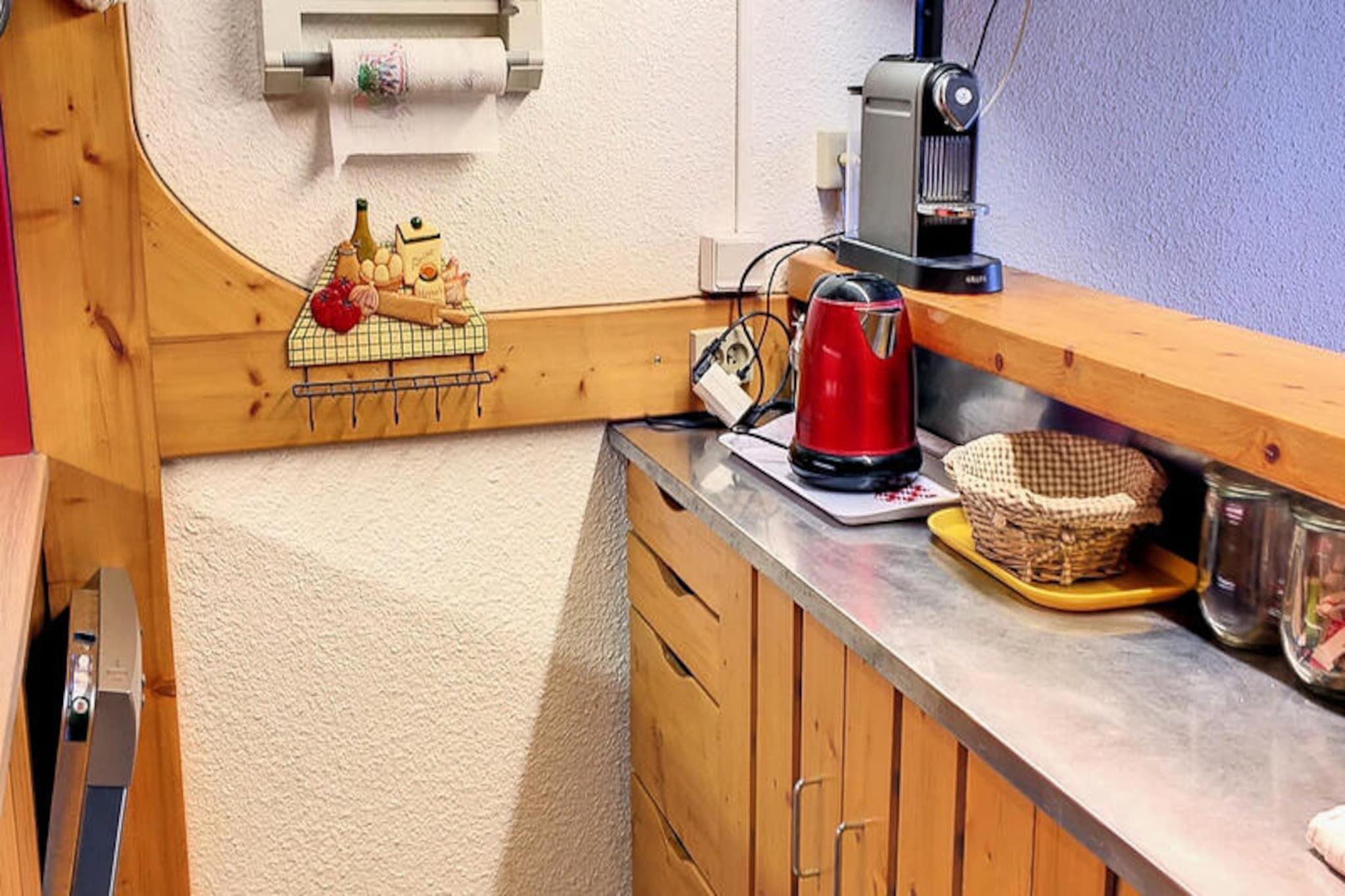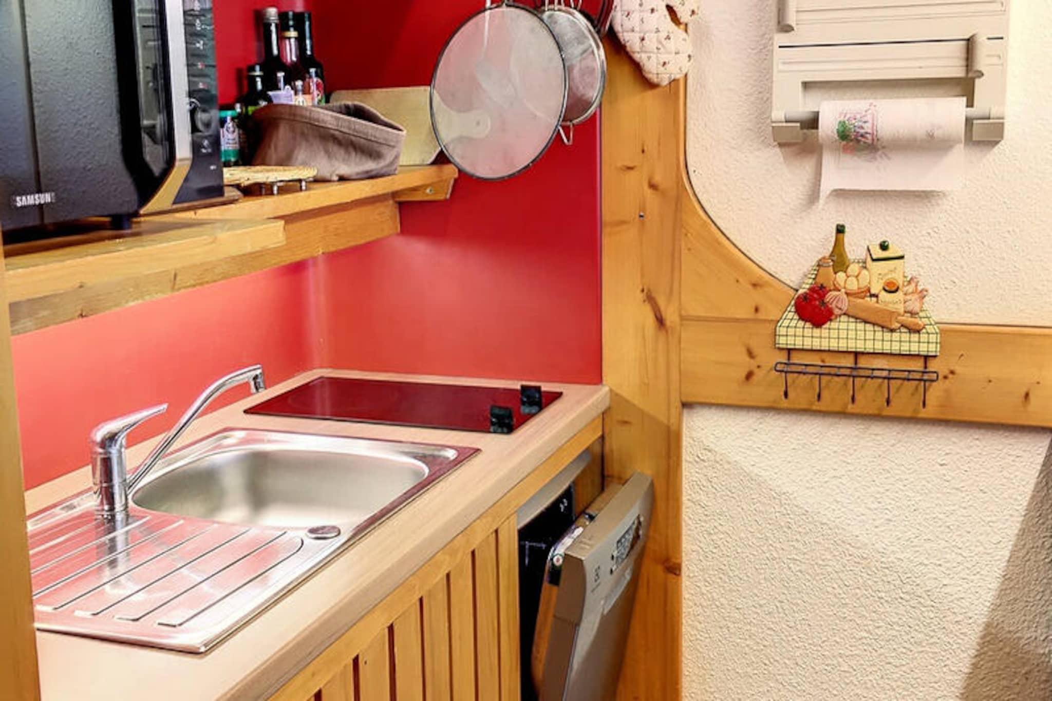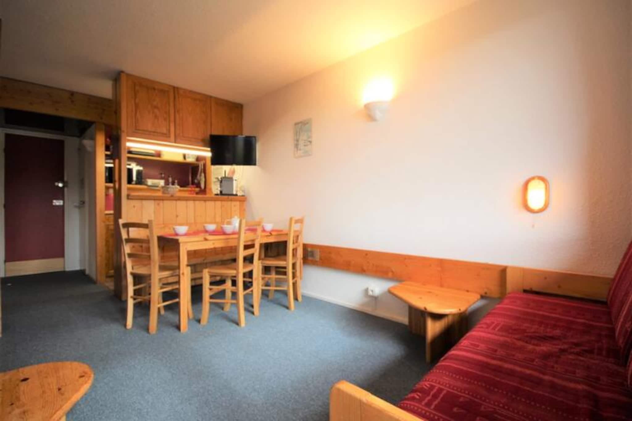Højt over det travle hjerte af Les Arcs 1800 tilbyder denne charmerende lejlighed et roligt tilflugtssted med betagende udsigt over dalen og de omkringliggende bjerge. Når solen går ned over Tarentaise, bliver den sydvestvendte balkon det perfekte sted at slappe af og byder på et panorama af gyldne nuancer og alpin ro. Uanset om du søger eventyr eller afslapning, er denne bolig din port til de franske alper. \n\nIndvendigt er lejligheden omhyggeligt designet til at rumme op til seks gæster. Det hyggelige soveværelse har en komfortabel dobbeltseng, mens sovealkoven med køjesenge er ideel til børn eller venner. Den lyse stue med dagsenge og spisebord inviterer dig til at dele måltider og stunder sammen. Det åbne køkken er fuldt udstyret med moderne apparater, herunder elektrisk komfur, ovn, køleskab og opvaskemaskine, hvilket sikrer, at du har alt, hvad du behøver for et behageligt ophold. Badeværelset med badekar og separat toilet gør din alpine ferie endnu mere behagelig. \n\nBeliggende i det rolige Villards-område, ligger boligen kun få skridt fra de vigtigste faciliteter. Overdækket parkering, udendørs muligheder og gratis parkering langs vejen gør det nemt at komme an, mens det nærliggende shuttle-stoppested forbinder dig med den bredere Les Arcs-region. Om vinteren er pisterne inden for rækkevidde, og om sommeren forvandles området til et paradis for vandrere, cyklister og naturelskere. Gratis Wi-Fi sikrer, at du forbliver forbundet, mens miljøvenligt sengetøj og rengøringsservice tilføjer et strejf af bæredygtighed til dit ophold. \n\nUanset om du er her for at grave dig gennem uberørt sne eller udforske frodige bjergstier, tilbyder denne lejlighed den perfekte balance mellem komfort, bekvemmelighed og fantastisk alpin skønhed. Lad magien i Les Arcs 1800 skabe uforglemmelige minder for dig og dine kære.
