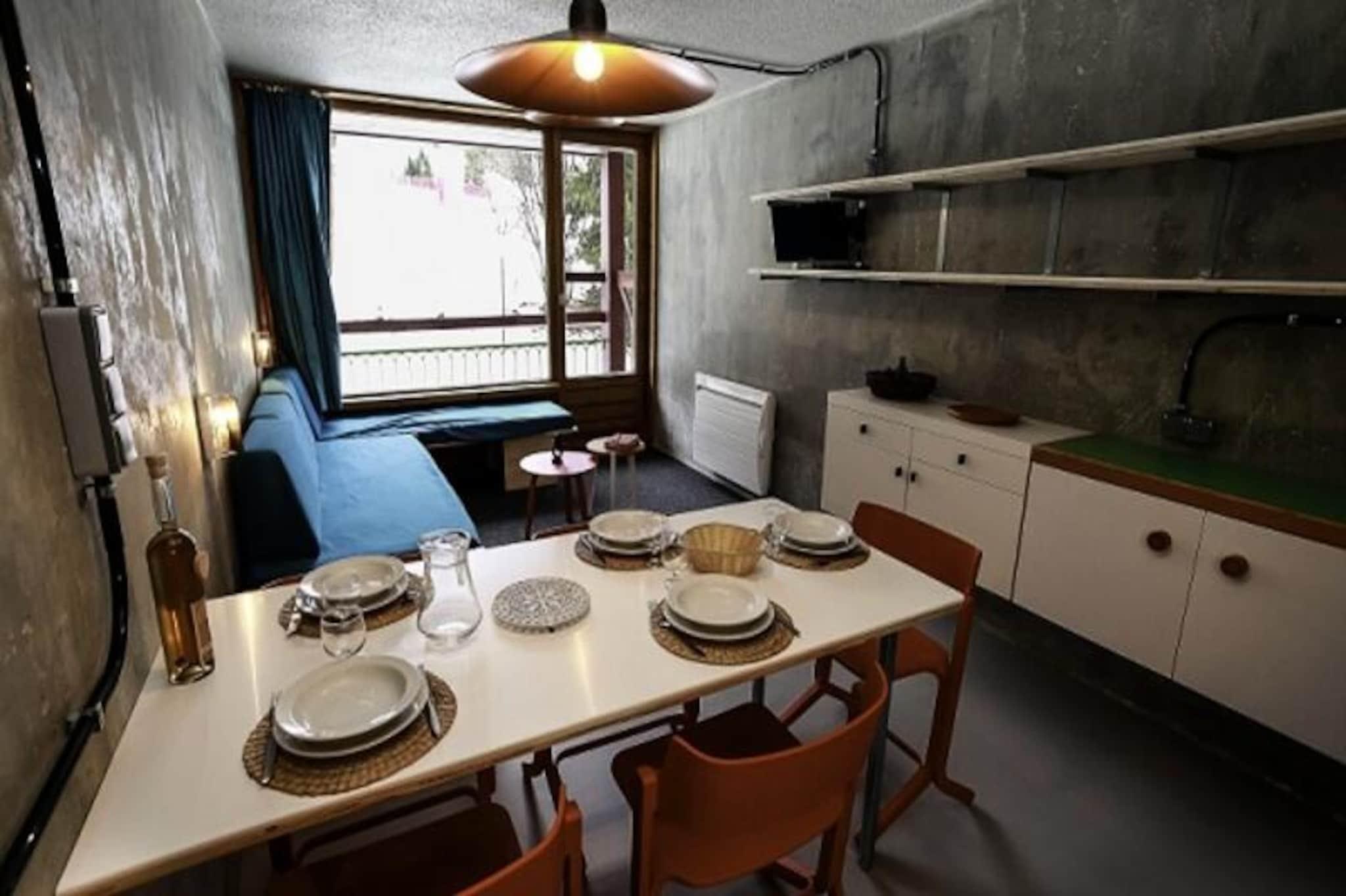Højt over det travle Charvet-indkøbscenter tilbyder dette charmerende studie et hyggeligt alpint tilflugtssted med ski-in/ski-out-bekvemmeligheder. Forestil dig at vågne op til den friske bjergluft, træde ud på din sydvendte balkon for at beundre pisterne eller nyde den fredfyldte udsigt over Mont Blanc fra nordøstsiden. Dette renoverede studie på 27 m² ligger på 9. sal i Lauzières du Charvet-residensen og er perfekt til op til fem gæster, der søger både komfort og tilgængelighed i hjertet af Les Arcs 1800. \n\nIndvendigt er studiet omhyggeligt designet til at maksimere plads og funktionalitet. Entréen har to køjesenge og en udtræksseng, mens opholdsstuen har en sovesofa og en ekstra udtræksseng, der kan laves om til en dobbeltseng. Tekøkkenet er fuldt udstyret med moderne apparater, herunder keramiske kogeplader, en kombinationsovn, et køleskab/fryser, en opvaskemaskine og essentielle små apparater som en elkedel og brødrister. Badeværelset er rent og praktisk og sikrer et behageligt ophold. \n\nTræd udenfor, og du vil finde dig selv ved foden af ??pisterne med bekvemmeligheden af ??skibokse og direkte adgang til ESF Skimômes børneklub. Det nærliggende Charvet indkøbscenter tilbyder et udvalg af butikker og spisesteder, mens shuttle-stoppestedet mellem feriestederne sikrer nem udforskning af området. For dem, der ankommer i bil, er der overdækket og udendørs parkeringsmuligheder i nærheden (mod betaling om vinteren). \n\nUanset om du er her for spændingen ved skiløb, charmen ved alpelandsbyen eller blot for at slappe af midt i en betagende natur, kombinerer denne studiolejlighed praktisk sans med en varm og indbydende atmosfære. Med gratis Wi-Fi på resortet, miljøvenligt sengetøj og mulighed for slutrengøring lover din ferie i de franske alper at blive lige så problemfri, som den er mindeværdig.