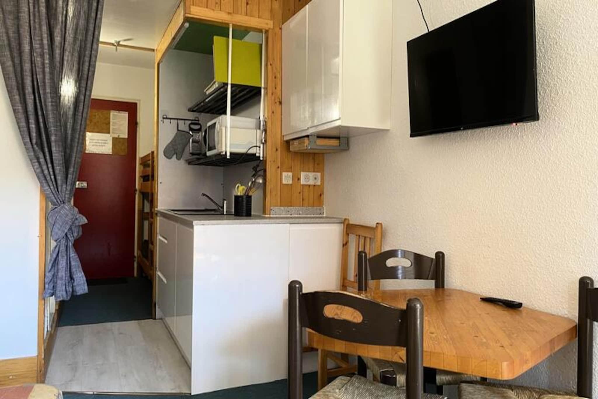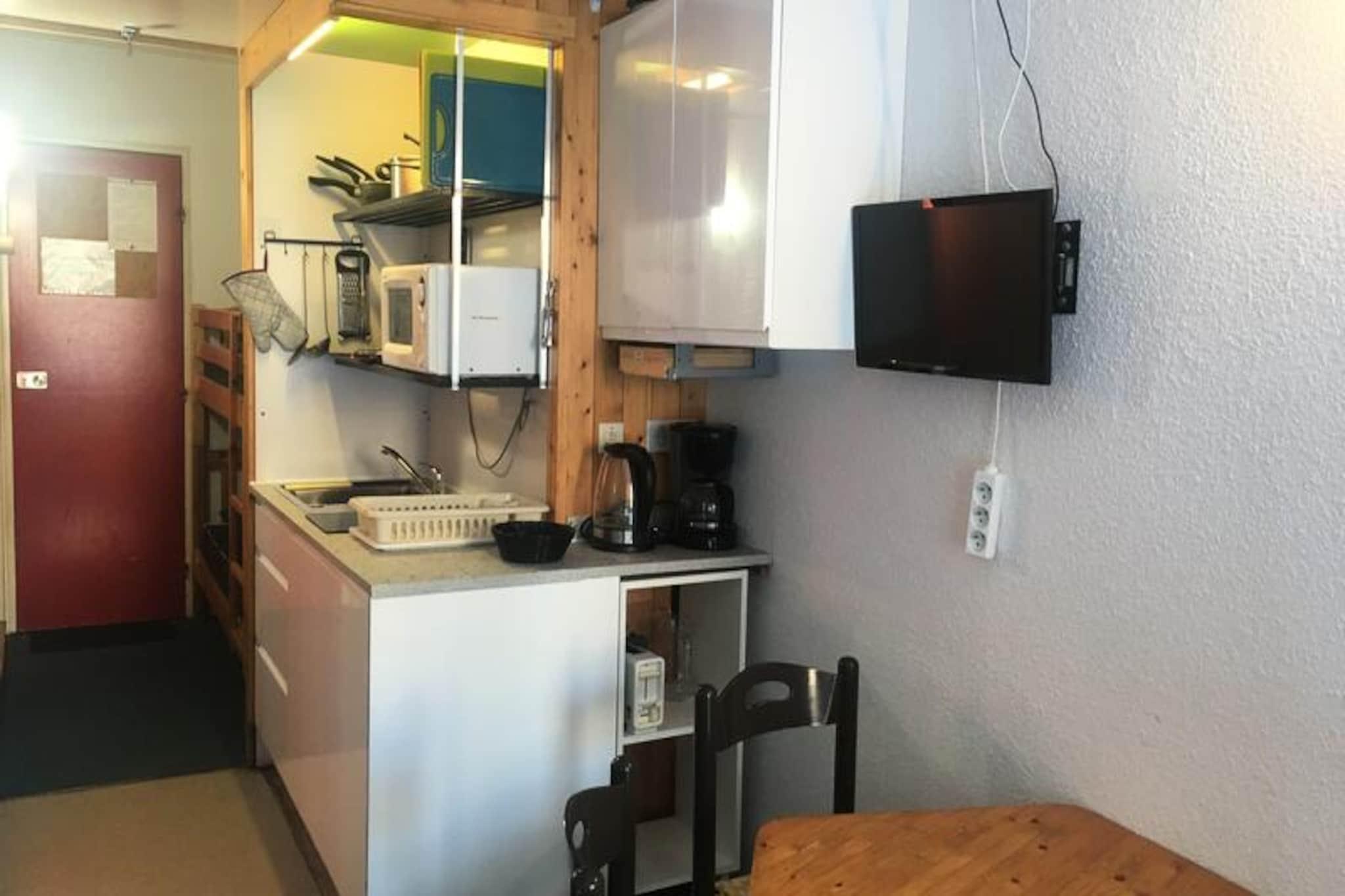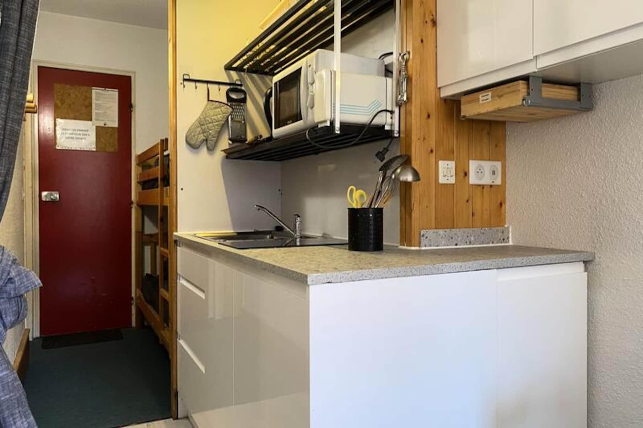 Højt over den fortryllende Tarentaise-dal ligger dette hyggelige studie i det rolige Villards-område i Les Arcs 1800 og tilbyder et roligt alpint tilflugtssted. Beliggende på 4. sal i Armoise-residensen er dette charmerende sted perfekt til par eller små grupper, der søger en fredelig ferie midt i en betagende udsigt over bjergene og frodige grantræer. Uanset om du er tiltrukket af de snedækkede tinder om vinteren eller det pulserende grønne landskab om sommeren, tilbyder denne residens en plads på første række til de franske alpers naturlige skønhed. Det 19 m² store studie er designet til komfort og bekvemmelighed og har plads til op til tre gæster. Hytteområdet ved indgangen har en hyggelig enkeltseng, mens stuen har en komfortabel sovesofa, et lille spisebord og et fladskærms-tv til hyggelige aftener. Tekøkkenet er udstyret med elektriske komfurer, mikrobølgeovn og køleskab, hvilket gør det nemt at tilberede måltider efter en dag med eventyr. Den nordøstvendte balkon tilbyder et roligt sted at slappe af med udsigt over de omkringliggende bjerge og grantræer. Gratis Wi-Fi sikrer, at du forbliver forbundet under dit ophold, og miljøvenligt sengetøj og rengøringsservice er tilgængelig mod et ekstra gebyr. Beliggende lige under indkøbscentret på den øverste plads i Village des Villards, tilbyder residensen nem adgang til lokale faciliteter. Der er overdækket og udendørs parkering i nærheden, og Villards togstations shuttlebusstoppested ligger bekvemt tæt på. Om vinteren er Les Arcs' pister lige ved hånden, mens sommeren byder på muligheder for vandreture, cykling og udforskning af det pulserende alpine landskab. Med sin blanding af komfort, bekvemmelighed og fantastiske omgivelser er dette studie din port til uforglemmelige bjergminder.