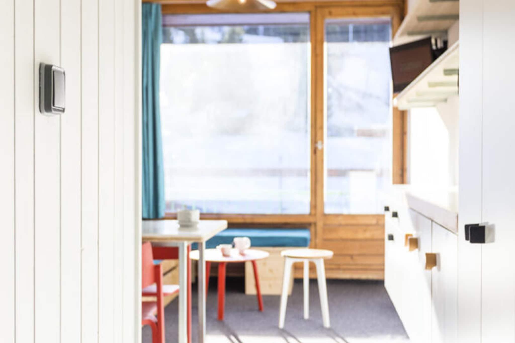 Højt over det travle Charvet-indkøbscenter tilbyder dette hyggelige studie en uovertruffen ski-in/ski-out-oplevelse i hjertet af Les Arcs 1800. Forestil dig at træde ud af din dør og direkte ud på pisterne med det majestætiske Mont Blanc som baggrund. Uanset om du er her for spændingen ved skiløb eller charmen ved alpint liv, lover dette sydvendte tilflugtssted en betagende udsigt over pisterne og en varm og indbydende atmosfære til din bjergferie. \n\nDette renoverede studie på 27 m² har komfortabel plads til op til fem gæster, hvilket gør det perfekt til familier eller små grupper. Entréhallen har to køjesenge og en udtræksseng, mens stuen tilbyder en sovesofa og en anden udtræksseng, hvilket sikrer fleksible sovemuligheder. Køkkenet er fuldt udstyret med moderne apparater, herunder keramiske kogeplader, mikrobølgeovn, køleskab/fryser, opvaskemaskine og mere, hvilket gør det nemt at tilberede solide måltider efter en dag på pisterne. Den sydvendte balkon er det perfekte sted at nyde den alpine sol og den fantastiske natur. \n\nBekvemt placeret ved foden af ??pisterne og butikkerne tilbyder denne bolig også adgang til et skirum, gratis Wi-Fi på resortet og parkeringsmuligheder i nærheden. Familier vil sætte pris på ESF Skimômes børneklub lige ved foden af ??boligen, mens shuttle-holdepladsen mellem resorterne sikrer problemfri udforskning af området. Om vinteren kan du nyde spændingen ved at stå på ski direkte fra døren, og om sommeren kan du opleve vandrestier og panoramaudsigt over Mont Blanc. \n\nUanset om du søger eventyr eller afslapning, tilbyder denne charmerende studiolejlighed i Le Charvet den perfekte blanding af komfort, bekvemmelighed og alpin charme. Book dit ophold og skab uforglemmelige minder i hjertet af de franske alper.