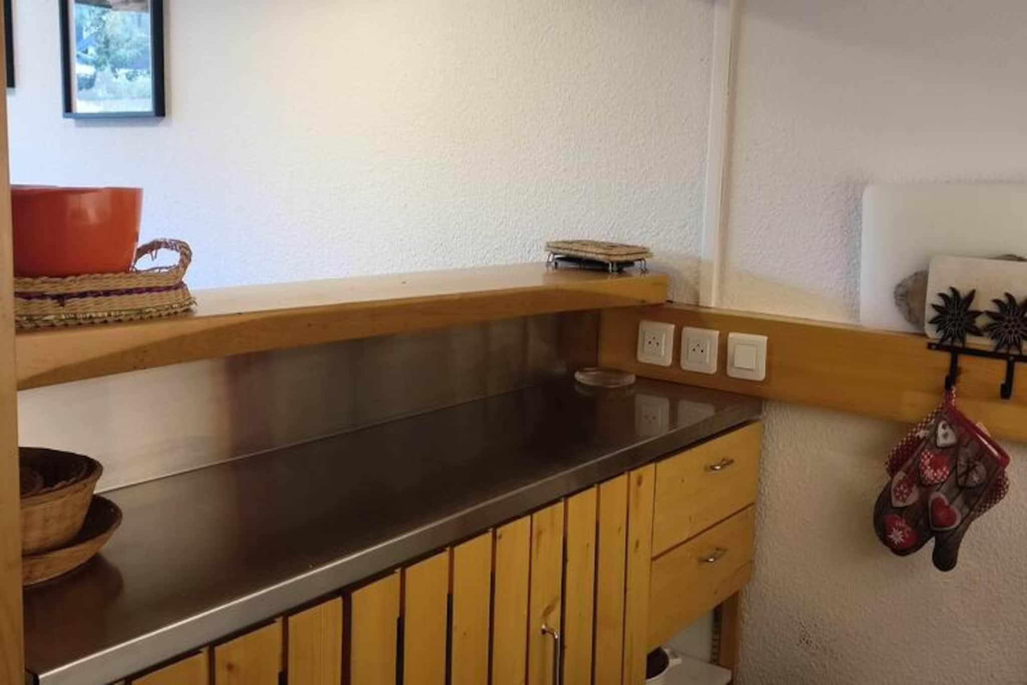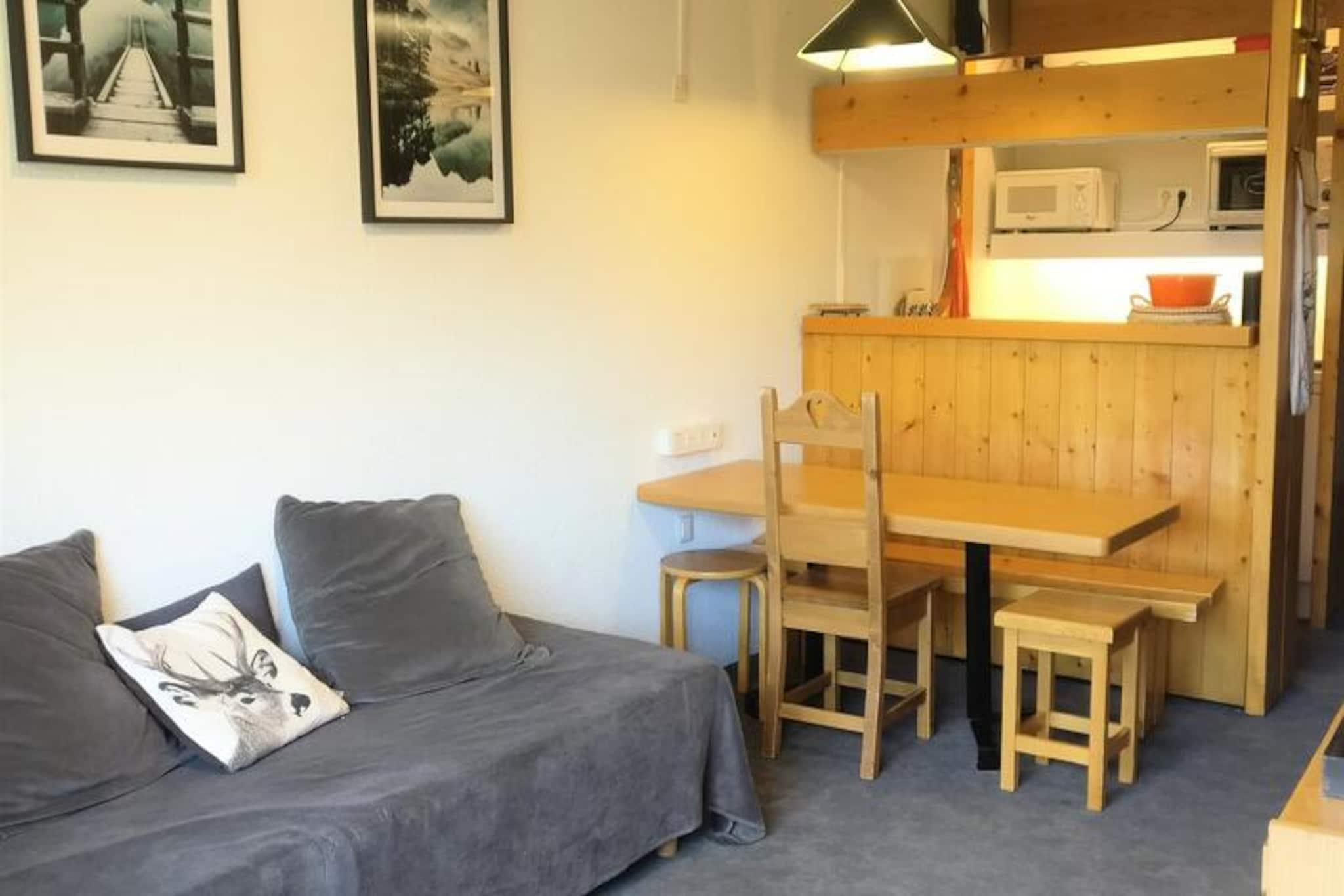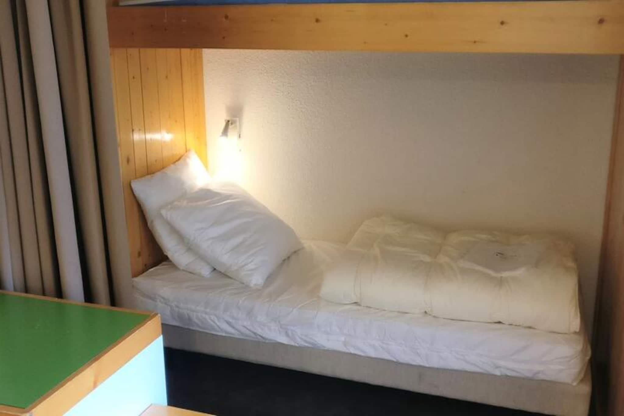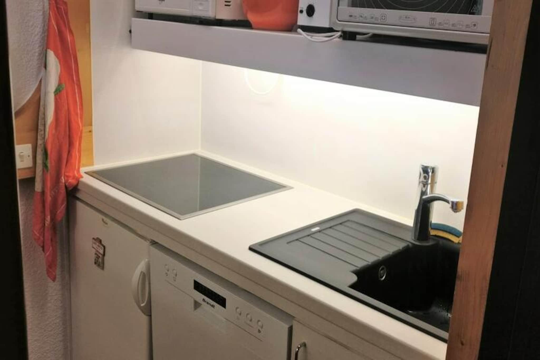 Højt over det travle hjerte af Villards i Les Arcs 1800 inviterer denne charmerende lejlighed dig til at opleve magien i de franske alper med ski-in/ski-out bekvemmelighed. Forestil dig at vågne op til en betagende udsigt over dalen badet i gyldent sollys, træde ud på din sydvestvendte balkon og indånde den friske bjergluft, inden du begiver dig direkte ud på pisterne. Med sin førsteklasses beliggenhed under snefronten er du perfekt placeret til at udforske Paradiski-domænet, der tilbyder uendelige eventyr for både skiløbere og snowboardere. Shuttlebussen mellem resorterne stopper i nærheden og sikrer nem adgang til de omkringliggende landsbyer og faciliteter. \n\nDenne hyggelige toværelses hyttelejlighed har plads til op til fem gæster, hvilket gør den ideel til familier eller små grupper, der søger et komfortabelt alpint tilflugtssted. Stuen har to enkeltsenge og et tv, mens soveværelset og hytteområdet begge tilbyder ekstra enkeltsenge, hvilket sikrer afslappende nætter efter aktive dage. Køkkenet er fuldt udstyret med moderne apparater, herunder keramiske kogeplader, miniovn, mikrobølgeovn, køleskab og opvaskemaskine, så du nemt kan tilberede solide måltider. Miljøvenligt sengetøj og slutrengøring bidrager til bekvemmeligheden, mens gratis Wi-Fi holder dig forbundet under hele dit ophold. \n\nTræd udenfor for at opdage det pulserende Villards-indkøbscenter, kun en kort gåtur væk, eller nyd bekvemmeligheden ved nærliggende overdækkede parkeringsmuligheder. Om vinteren er pisterne din legeplads, mens sommeren forvandler regionen til et paradis for vandreture, cykling og udforskning af de frodige landskaber. Uanset om du jagter puddersne eller nyder alpesolen, tilbyder denne bolig den perfekte base for uforglemmelige bjergminder. \n\nVælg denne lejlighed for dens uovertrufne beliggenhed, hyggelige atmosfære og løftet om eventyr lige uden for døren. Din alpine flugt venter!