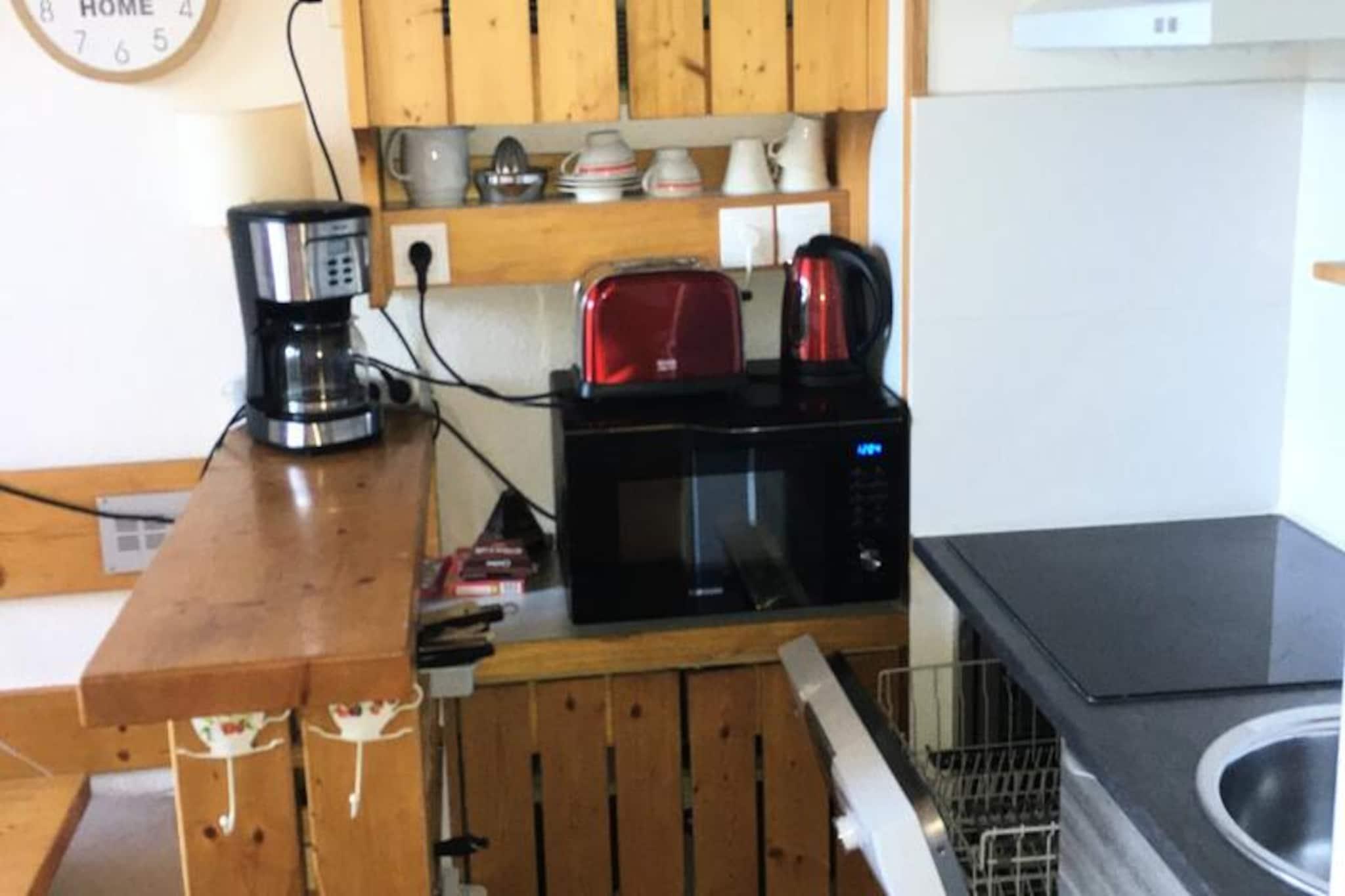 Højt over den charmerende landsby Charmettoger inviterer dette dejlige mezzanin-studie dig til at omfavne de franske alpers skønhed. Beliggende på 4. og øverste sal i den fredelige Archeboc-residens, tilbyder ejendommen et roligt tilflugtssted med betagende sydvestvendt udsigt over dalen og solnedgangene. Uanset om du er her for spændingen ved skiløb eller roen i bjerglivet, lover dette studie en uforglemmelig alpin flugt. Det er muligt at komme tilbage på ski, og Transarc-skiområdet ligger kun 2 minutters kørsel væk, hvilket gør det til en ideel base for vintersportsentusiaster. Indenfor er det 30 m² store studie omhyggeligt designet til at rumme op til seks gæster. Den lyse stue har et spisebord, en komfortabel sovesofa, en udtræksseng og et tv, hvilket skaber et hyggeligt rum at slappe af efter en dag med eventyr. Mezzanin-etagen tilføjer charme og funktionalitet med to køjesenge og et separat område med en dobbeltseng og fladskærms-tv, hvilket sikrer privatliv og komfort for alle. Det fuldt udstyrede tekøkken har keramiske kogeplader, køleskab, mikrobølgeovn og opvaskemaskine, hvilket gør madlavning til en leg. Badeværelset, komplet med badekar, tilføjer et strejf af afslapning til dit ophold. Gå ud på den sydvestvendte balkon for at nyde den fantastiske udsigt over dalen og se solen synke ned under horisonten. For dem, der søger bekvemmelighed, tilbyder boligen gratis Wi-Fi, elevatorer og forskellige parkeringsmuligheder, herunder overdækket parkering ved Charmettoger og udendørsområder ved Chante Mouche. Den nærliggende shuttlebus mellem resorterne stopper ved Villards og sikrer nem adgang til de omkringliggende attraktioner. Uanset om du nyder rolige øjeblikke omgivet af grantræer eller udforsker de livlige skiløjper, blander denne studiolejlighed komfort, bekvemmelighed og naturlig skønhed. Skab varige minder i denne idylliske alpine oase.