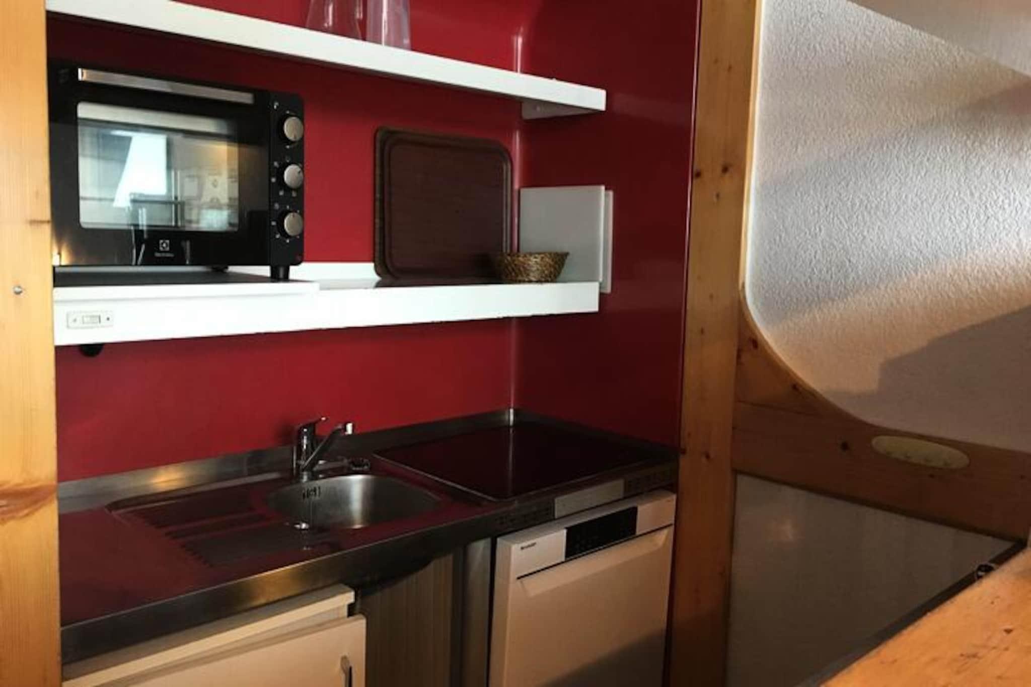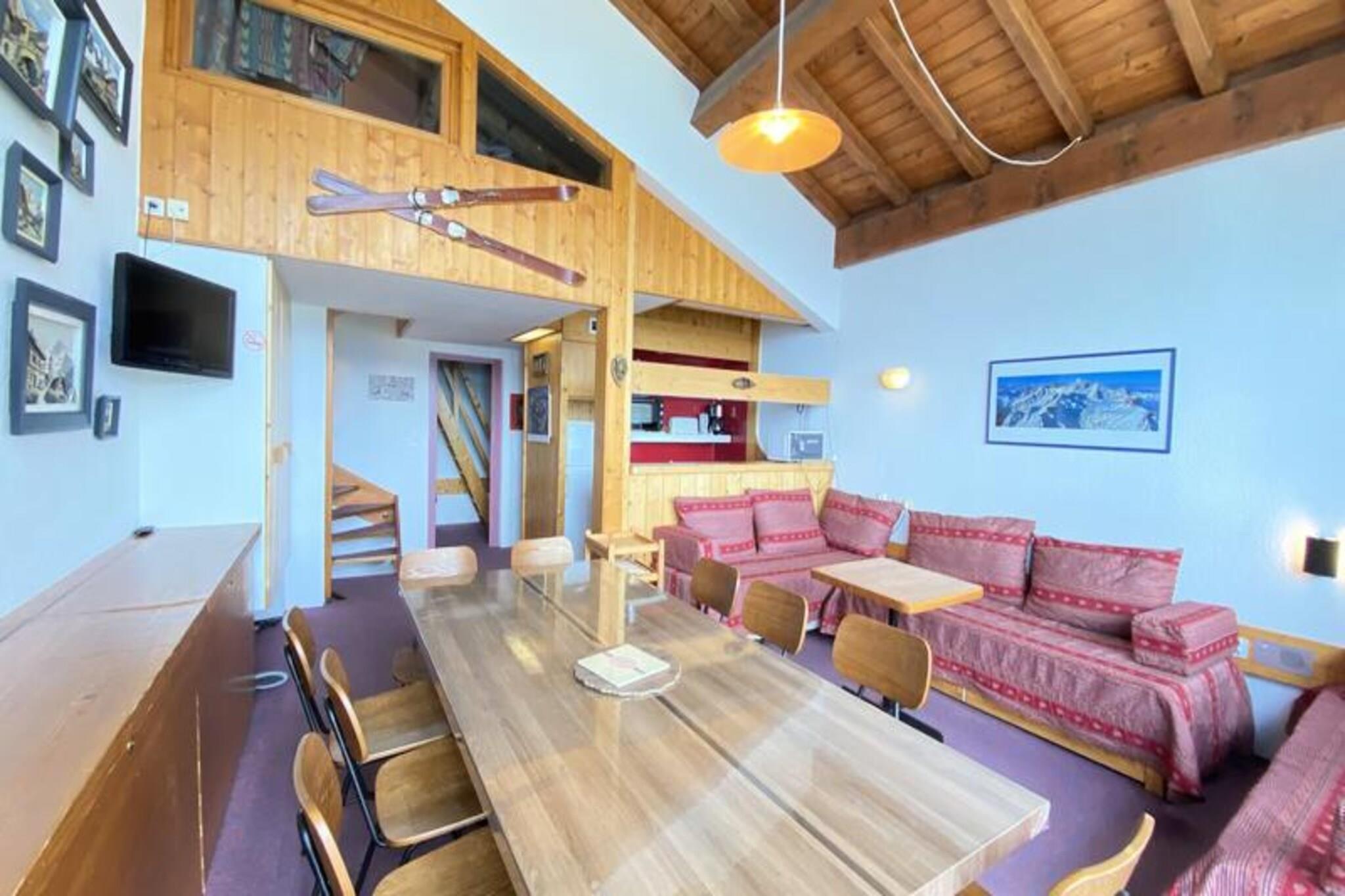Højt over den charmerende Village des Villards i Les Arcs 1800 tilbyder dette rummelige alpine feriested en perfekt blanding af komfort og bekvemmelighed til din bjergferie. Med sin misundelsesværdige beliggenhed ved foden af ??pisterne kan du træde ud af boligen og ud på skiløjperne, hvilket gør det til et ideelt valg for både vintersportsentusiaster og naturelskere. Uanset om du kigger på solopgangen over pisterne eller nyder en gylden solnedgang fra din vestvendte balkon, er hvert øjeblik her omgivet af alpin skønhed. \n\nDenne duplexlejlighed strækker sig over imponerende 90 m² og er designet til at rumme op til 10 gæster, hvilket gør den perfekt til familier eller vennegrupper. Den gennemtænkte planløsning inkluderer tre hyggelige soveværelser, en sovealkove og en mezzanin, der sikrer, at alle har deres egen plads til at slappe af. Det fuldt udstyrede køkken med opvaskemaskine, mikrobølgeovn og kaffemaskine inviterer dig til at tilberede solide måltider efter en dag på pisterne. Moderne faciliteter såsom gratis Wi-Fi, fladskærms-tv og to badeværelser sikrer et behageligt og stressfrit ophold. \n\nResidensen ligger oven over indkøbscentret Village des Villards og tilbyder nem adgang til butikker, restauranter og afterski-aktiviteter. Shuttlebussen mellem feriestederne stopper kun få skridt væk, hvilket gør det nemt at udforske det bredere Paradiski-område. Om sommeren forvandles regionen til et paradis for vandrere og mountainbikere med stier, der fører til betagende udsigter og alpine enge. \n\nUanset om du er her for at kæmpe dig gennem frisk puddersne eller sole dig i bjergenes ro, lover denne residens en uforglemmelig alpeferie. Med sin uovertrufne beliggenhed, generøse plads og hyggelige atmosfære er det den perfekte base for at skabe dyrebare minder i hjertet af de franske alper.