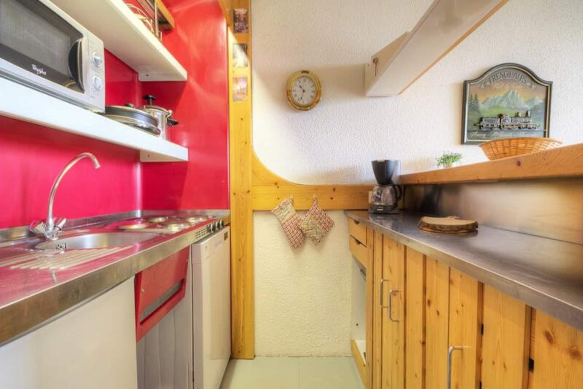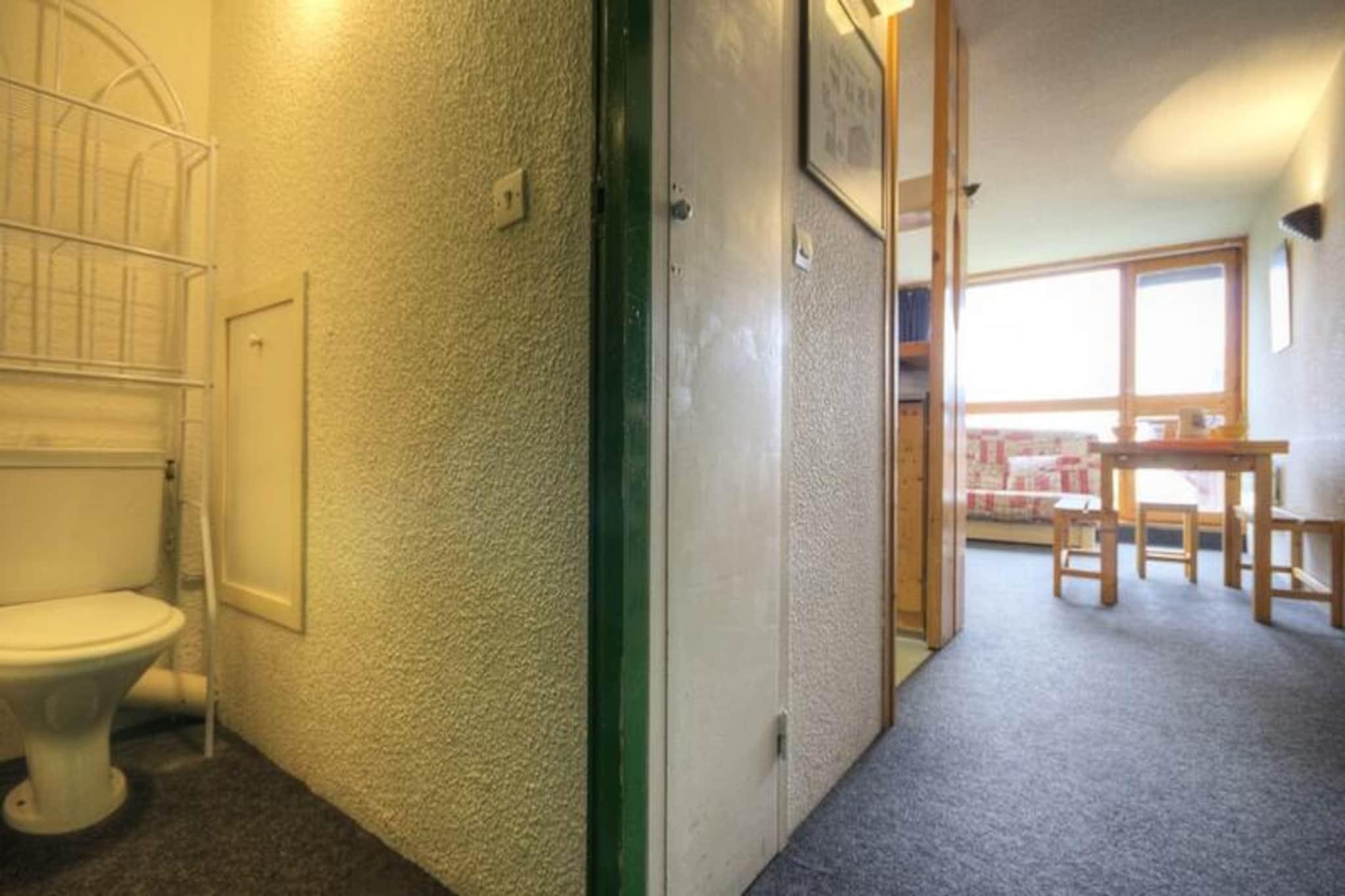 Højt over den pulserende Village des Villards i Les Arcs 1800 inviterer dette charmerende alpine tilflugtssted dig til at opleve den perfekte blanding af bekvemmelighed og naturlig skønhed. Beliggende direkte ved foden af ??pisterne tilbyder residensen ski-in/ski-out adgang, hvilket gør den til et ideelt valg for vintersportsentusiaster. Når dagen begynder, kan du gå ud på din sydvestvendte balkon for at nyde den betagende udsigt over dalen badet i gyldent sollys, eller nyde det fredfyldte syn af snedækkede tinder fra de østvendte balkoner. Denne hyggelige lejlighed på 33 m² er omhyggeligt designet til at rumme op til fem gæster. Stuen har en komfortabel sovesofa, spiseplads og et fladskærms-tv, hvilket skaber et indbydende rum at slappe af efter en dag med eventyr. Det private soveværelse har tre enkeltsenge, hvoraf to er køjesenge, hvilket gør det perfekt til familier eller små grupper. Det åbne køkken er fuldt udstyret med moderne apparater, herunder mikrobølgeovn, køleskab og opvaskemaskine, hvilket sikrer, at du har alt, hvad du behøver for at tilberede solide måltider. Et badeværelse med badekar og et separat toilet bidrager til bekvemmeligheden under dit ophold. Beliggende i hjertet af Les Arcs 1800, kun få skridt fra indkøbscentret, restauranterne og afterski-mulighederne i Village des Villards. Shuttle-holdepladsen mellem feriestederne ved Villards togstation sikrer nem adgang til at udforske det bredere Paradiski-område. Om sommeren forvandles regionen til et paradis for vandrere og mountainbikere med stier, der snor sig gennem frodige alpine enge og tilbyder en fantastisk udsigt over Tarentaise-dalen. Uanset om du er her for at slentre gennem uberørte pister, udforske den pulserende lokale kultur eller blot slappe af midt i de franske alpers skønhed, tilbyder denne lejlighed en varm og indbydende base for uforglemmelige minder.