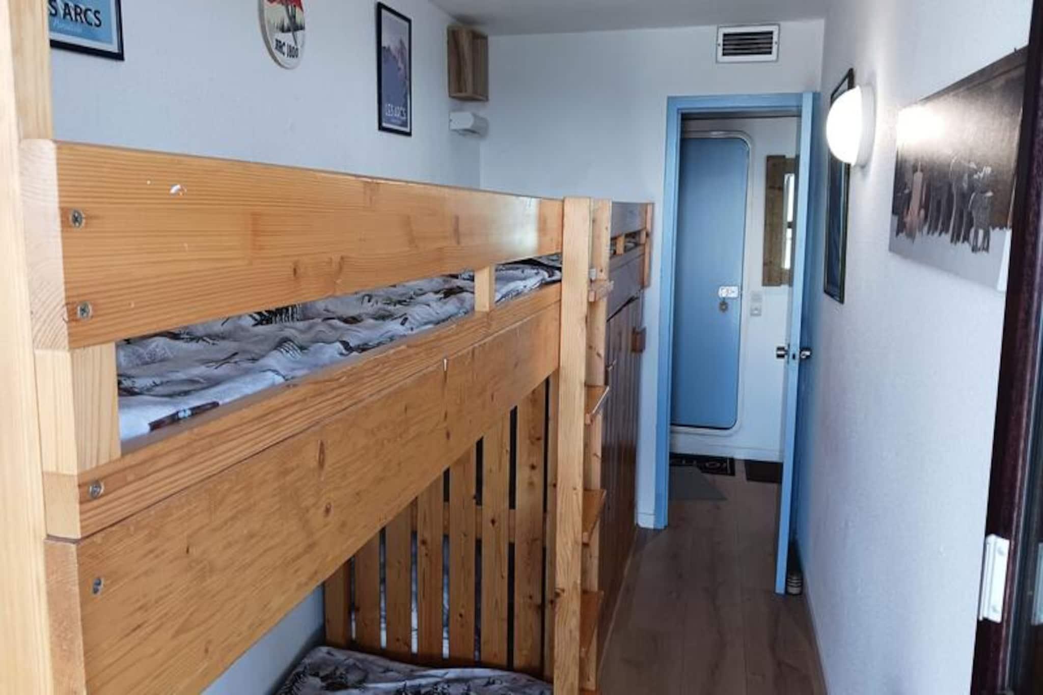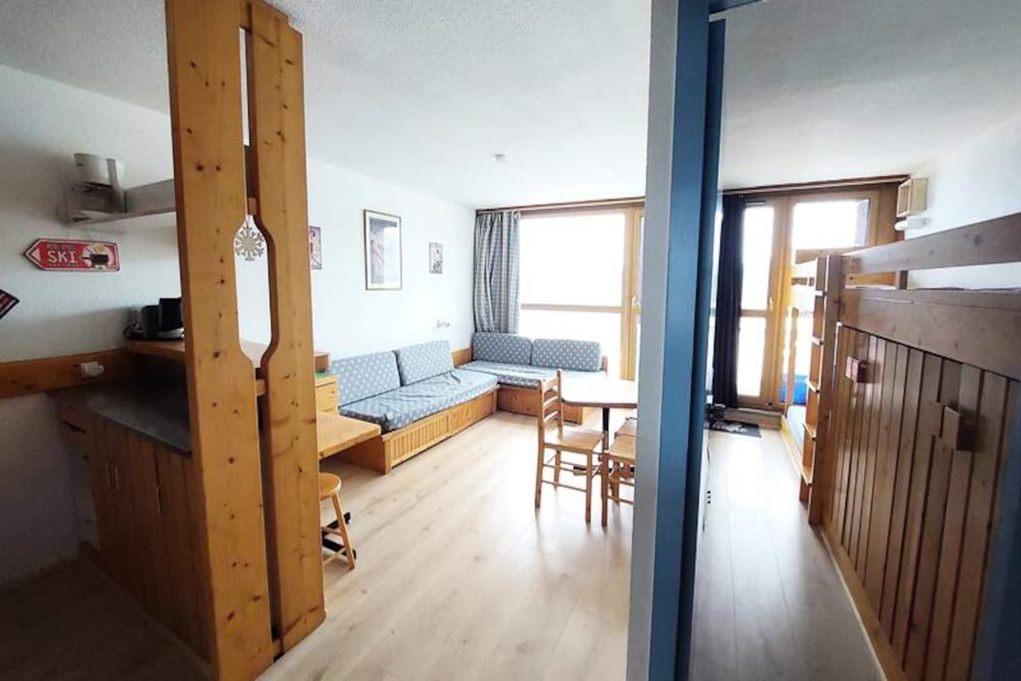Højt over Tarentaise-dalen, hvor den alpine luft giver energi og pisterne lokker, ligger dit perfekte bjergrefugium i Tournavelles Residences. Med ski-in/ski-out-adgang ligger denne hyggelige lejlighed kun få skridt fra Vagère-stoleliften og Transarc-gondolen, hvilket sikrer problemfri adgang til det verdenskendte Paradiski-område. Uanset om du carver gennem frisk puddersne eller udforsker sommerstier, tilbyder denne beliggenhed en uovertruffen adgang til det bedste af Les Arcs 1800. Indvendigt er den 33 m² store lejlighed omhyggeligt designet til at rumme op til fem gæster. Stuen har to komfortable enkeltsenge, mens soveværelset har et unikt sæt med tre køjesenge, der er perfekt til familier eller tætte grupper. Den vestvendte altan indbyder til afslapning med en fantastisk udsigt over feriestedet og dalen, en perfekt kulisse til din morgenkaffe eller afslapning om aftenen. Det fuldt udstyrede køkken med elektrisk komfur, ovn, opvaskemaskine og meget mere sikrer, at madlavningen er både praktisk og behagelig. Moderne faciliteter som Wi-Fi og fladskærms-tv bidrager til komforten under dit ophold. Træd udenfor, og du finder alt, hvad du har brug for, inden for gåafstand. Fra ESF-skiskolen og en dagligvarebutik ved foden af boligen til det livlige Villards-indkøbscenter med sine barer og natklub, summer området af aktivitet. Om vinteren forbinder den gratis shuttlebus dig med det større feriested hvert 20. minut, mens sommeren byder på muligheder for vandreture, mountainbiking og paragliding over det fantastiske alpine landskab. Uanset om du er på udkig efter spændende eventyr eller rolige øjeblikke omgivet af betagende natur, lover denne lejlighed i hjertet af Les Arcs 1800 en uforglemmelig ferie. Book dit ophold, og lad bjergenes magi fortrylle dig.