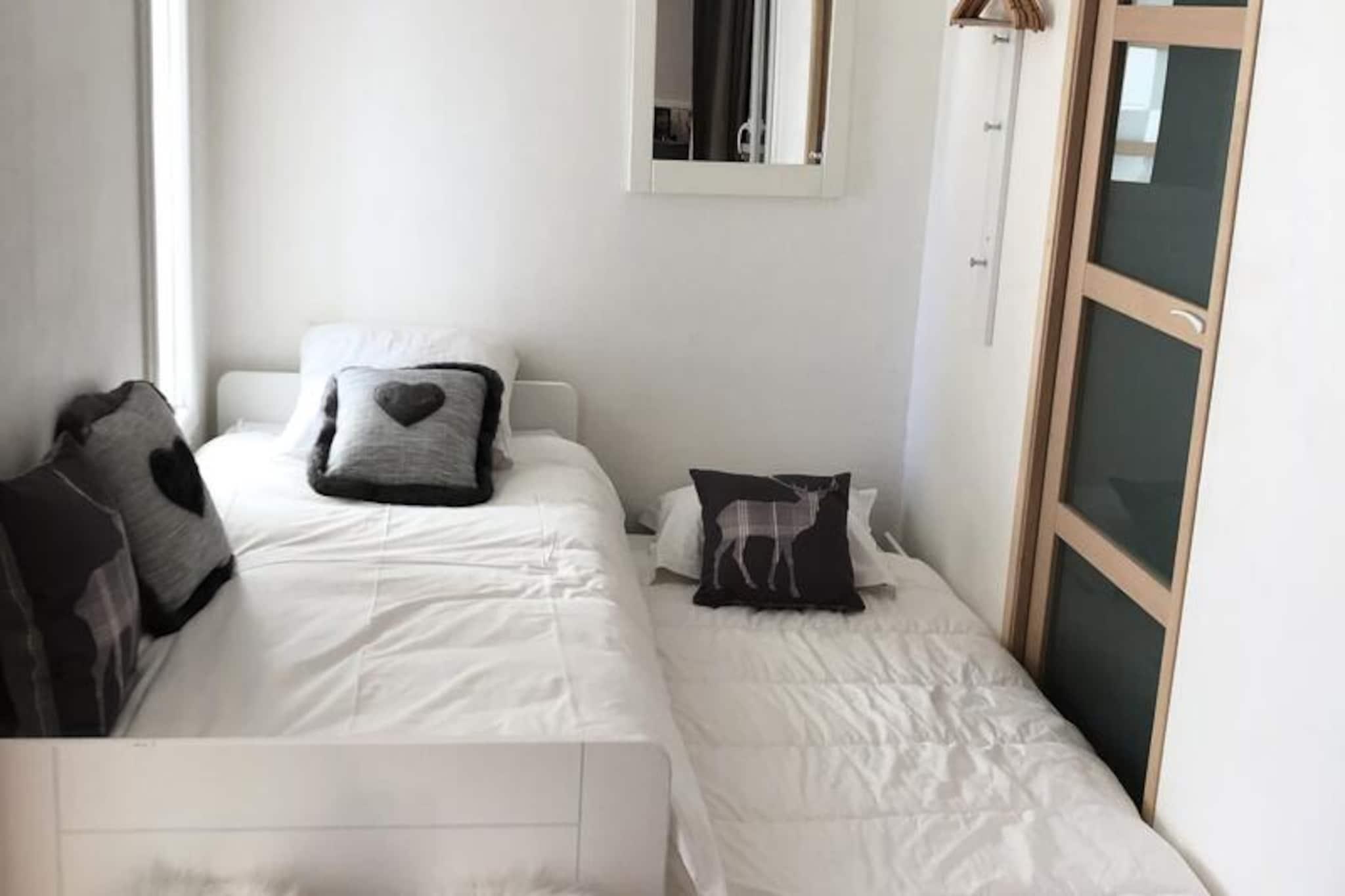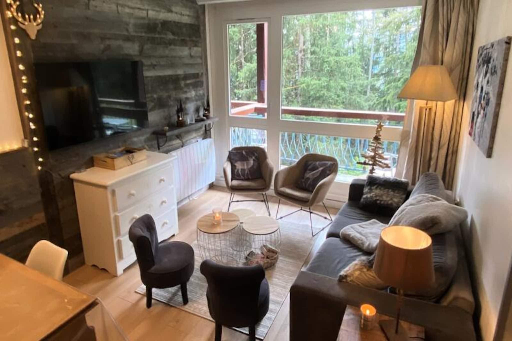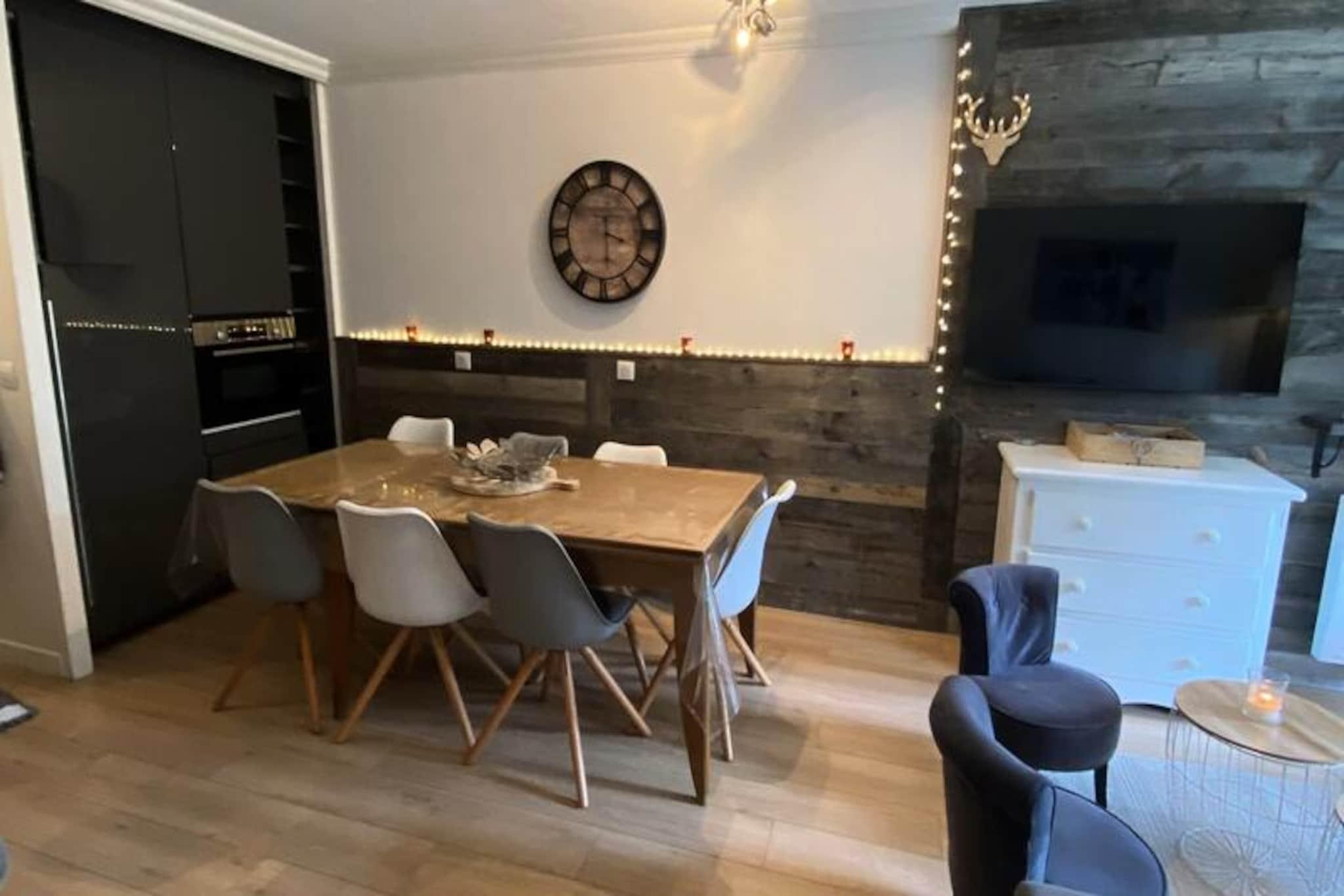 I hjertet af det charmerende Charmettoger-område tilbyder denne smukt renoverede lejlighed et roligt tilflugtssted midt i den pulserende energi i Les Arcs 1800. Med sin sydvestvendte balkon kan du sole dig i det alpine solskin, mens du nyder panoramaudsigten over de omkringliggende tinder, hvilket skaber de perfekte rammer for en mindeværdig bjergferie. Uanset om du er her for vintersport eller sommereventyr, placerer denne bolig dig i centrum af det hele. Denne rummelige og moderne lejlighed er på 54 kvadratmeter og har komfortabel plads til op til otte gæster. Den åbne stue er lys og indbydende med bløde sofaer, et spisebord til familien og et fladskærms-tv, perfekt til afslappende aftener efter en dag med udforskning. Det fuldt udstyrede køkken kan prale af high-end apparater, herunder en kombineret ovn/mikrobølgeovn, opvaskemaskine og Nespresso-kaffemaskine, der sikrer, at du har alt, hvad du behøver for at tilberede lækre måltider. Sovepladserne omfatter et hyggeligt soveværelse med en dobbeltseng, et andet soveværelse med en dobbeltseng og eget tv samt et hytteområde med køjesenge og en udtræksseng i stuen. To elegante badeværelser og en vaskemaskine/tørretumbler bidrager til bekvemmeligheden og komforten under dit ophold. Beliggende nær feriestedets centrum finder du skibokse, parkeringsmuligheder og gratis Wi-Fi for din bekvemmelighed. Shuttlebusstoppestedet til Villards togstation ligger kun få skridt væk, hvilket gør det nemt at udforske området. Om vinteren er pisterne lige uden for døren, mens sommeren byder på vandrestier, mountainbiking og betagende alpine landskaber. Med sit miljøvenlige sengetøj og valgfri slutrengøring er denne lejlighed den perfekte blanding af komfort, stil og bæredygtighed. Uanset om du søger spændende skidage, rolige bjergøjeblikke eller en blanding af begge dele, tilbyder denne bolig en uforglemmelig alpin oplevelse for både familier og grupper.