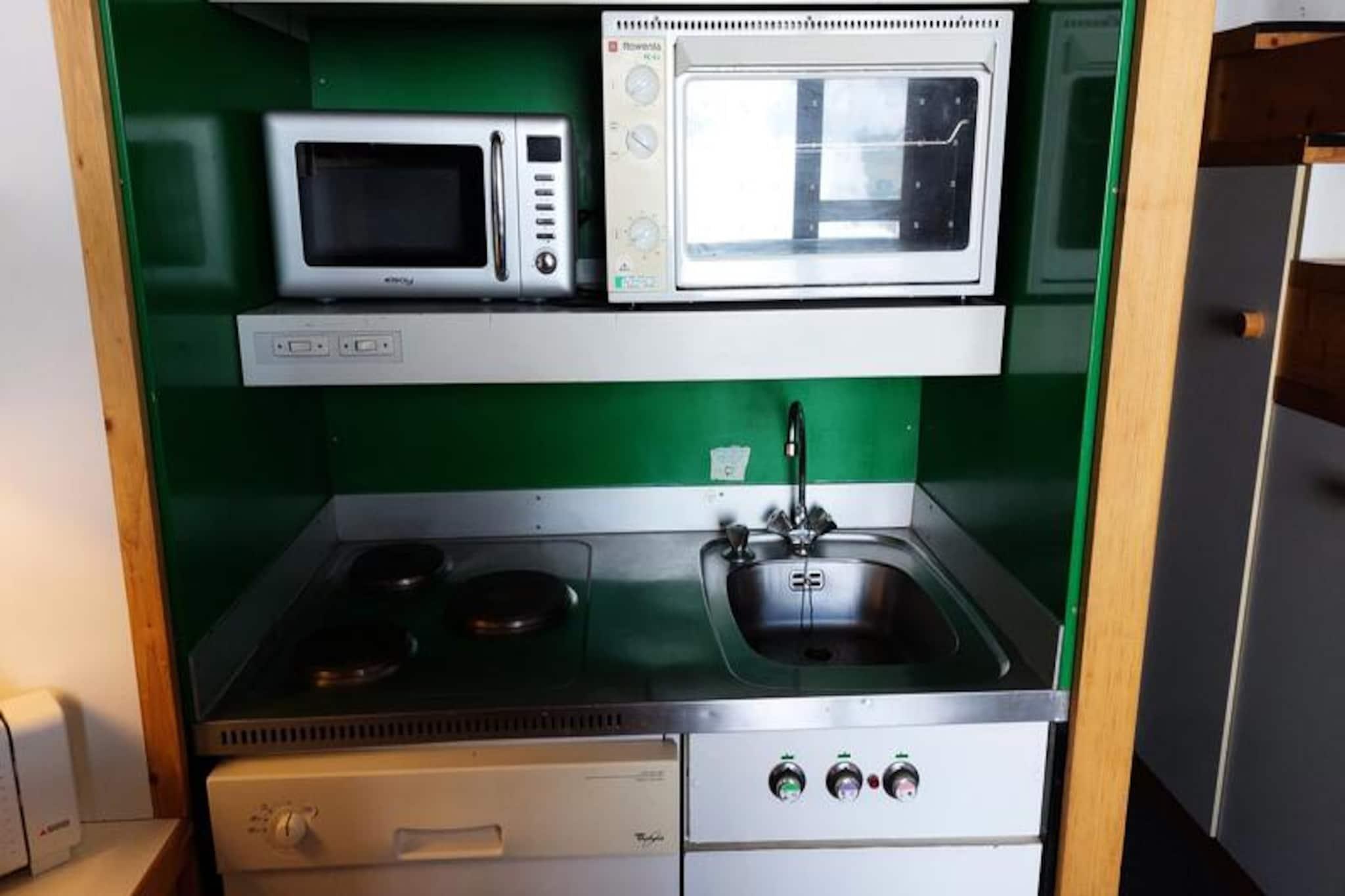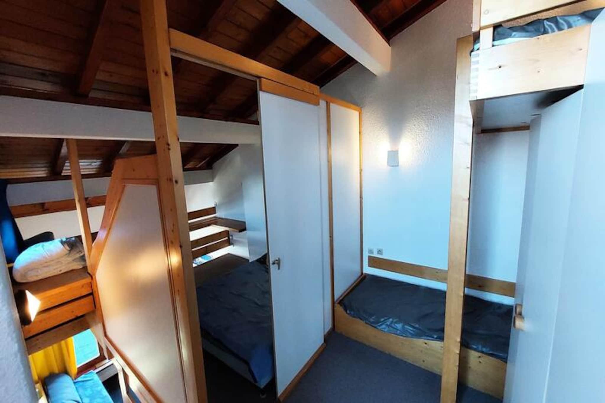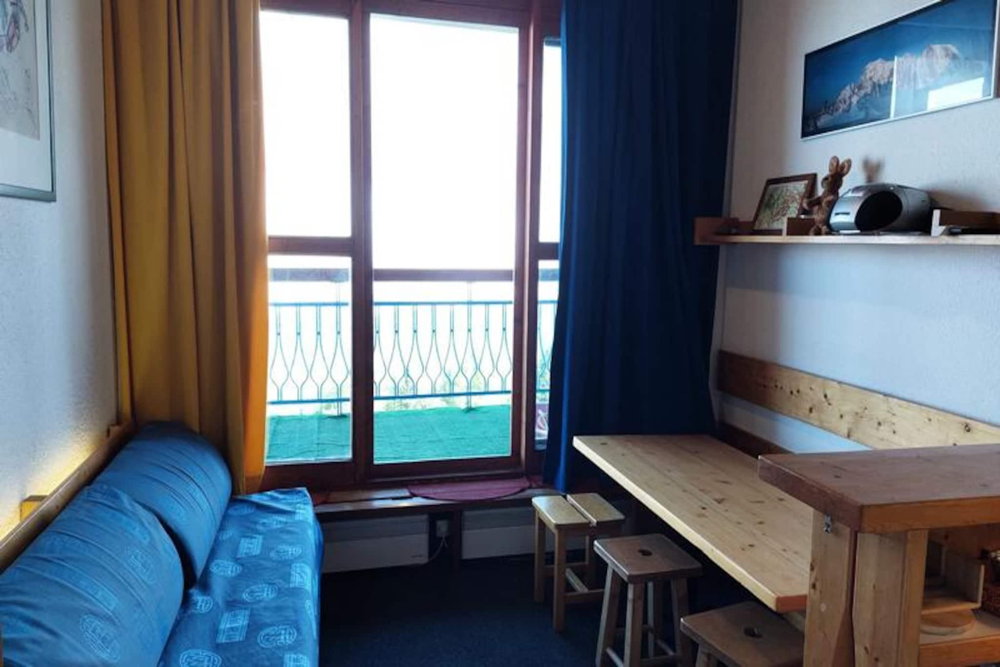 Højt over Tarentaise-dalen, hvor luften er frisk, og udsigten strækker sig til det majestætiske Mont Blanc, tilbyder denne charmerende duplexlejlighed i Archeboc-residensen et roligt alpint tilflugtssted. Beliggende i den rolige landsby Charmettoger, er der kun to minutters glideafstand til den blå Charmettoger-skipiste og tre minutters gang til Transarc-skiliften, hvilket gør den til en perfekt base for både skientusiaster og naturelskere. Uanset om du er her for vintersport eller sommervandreture, lover de omkringliggende landskaber uforglemmelige eventyr. Denne hyggelige lejlighed på 35 m², designet til at rumme op til seks gæster, kombinerer komfort og praktisk anvendelighed. Stuen har en 80 cm udtrækssenge, mens mezzaninen tilbyder en 140 cm dobbeltseng og en sovealkove med to enkeltsenge. Det åbne køkken er fuldt udstyret med moderne apparater, herunder opvaskemaskine, ovn og kaffemaskine, så du kan tilberede solide måltider efter en dag på pisterne. Slap af i stuen med en varm drink, nyd fladskærms-tv'et, eller gå ud på en af ??de to balkoner for at nyde den betagende udsigt over dalen og Mont Blanc. Archeboc-residensen er bekvemt placeret, kun en kort gåtur fra de vigtigste faciliteter. Der ligger et bageri tre minutters gang derfra, mens det nærmeste supermarked og ESF-skiskole kan nås inden for syv minutter. Den pulserende landsby Villards med sine restauranter, butikker og afterski-muligheder ligger også i nærheden. Gratis shuttlebusser kører året rundt og forbinder dig ubesværet med det bredere Les Arcs-område. Uanset om du er tiltrukket af spændingen ved skiløb, roen i alpine somre eller blot tiltrækningen af ??Mont Blancs tidløse skønhed, tilbyder denne lejlighed et indbydende fristed i hjertet af Les Arcs 1800.