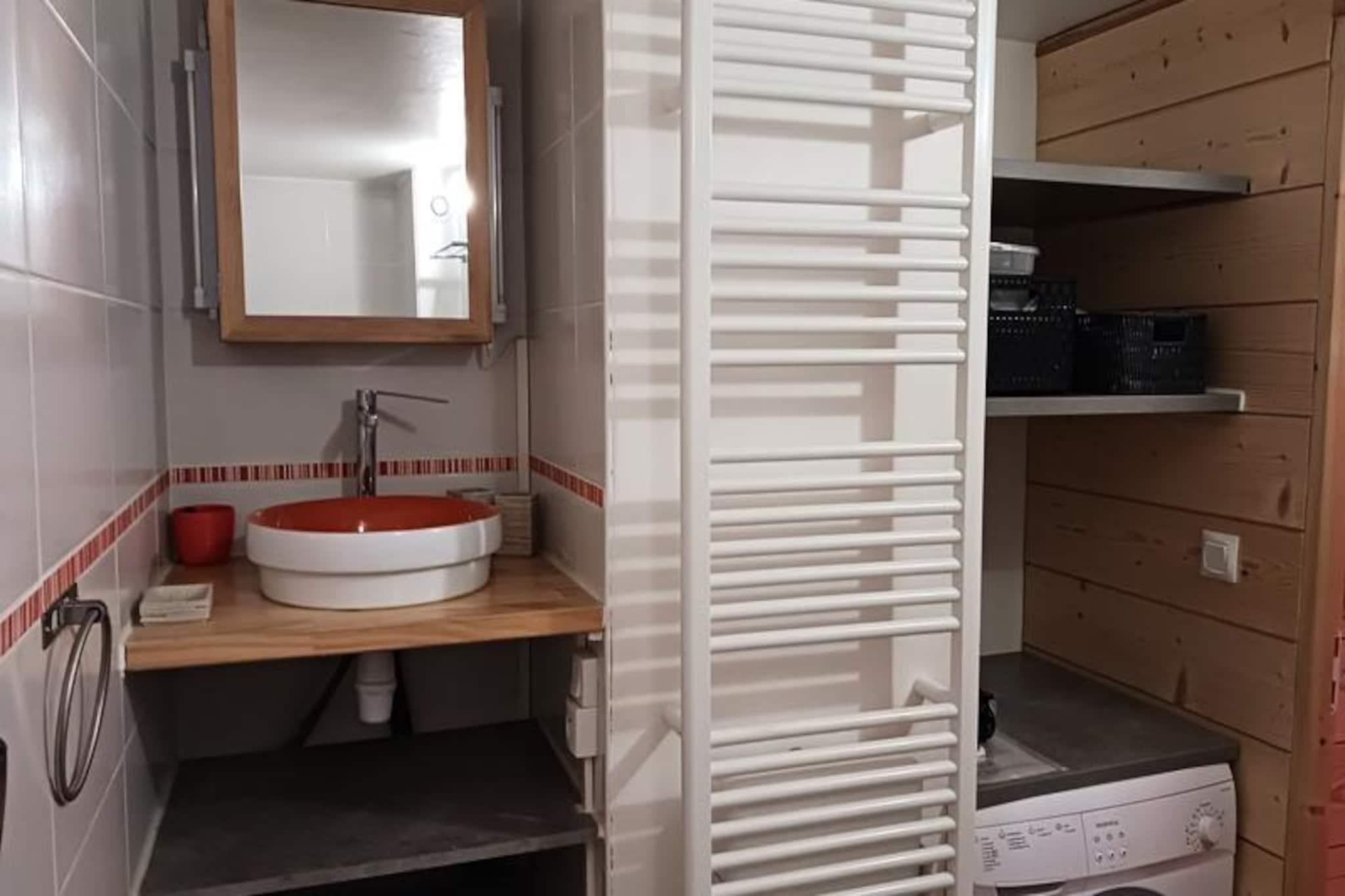 I hjertet af den fortryllende landsby Charmettoger tilbyder denne hyggelige alpine lejlighed et perfekt tilflugtssted for dine bjergeventyr. Forestil dig at vågne op til den friske bjergluft og træde ud på din sydvestvendte balkon, hvor den fredfyldte udsigt over de omkringliggende tinder sætter tonen for en uforglemmelig dag. Uanset om du er her for de snedækkede pister eller de frodige sommerstier, placerer denne bolig dig lige ved foden af ??den blå 'Charmettoger'-piste og kun 3 minutters gang fra Transarc-skiliften, hvilket sikrer ubesværet adgang til det vidtstrakte Paradiski-område. Indenfor er den 39 m² store lejlighed omhyggeligt designet til at rumme op til seks gæster. Stuen har et sæt udtrækssenge, mens ovenpå er der en sovealkove med en hems og sovesofa samt et separat soveværelse med en 160 cm dobbeltseng, der giver fleksible sovemuligheder. Det fuldt udstyrede køkken med induktionskogeplade, mikrobølgeovn, ovn, køleskab, opvaskemaskine og mere åbner op til opholdsstuen og skaber et varmt og indbydende rum til fælles måltider og afslapning. Moderne bekvemmeligheder som et fjernsyn og en vaskemaskine bidrager til bekvemmeligheden, mens to toiletter og et brusebad sikrer komfort for alle gæster. Gå udenfor, og du finder et bageri, en købmand og en restaurant lige for foden af ??boligen. Den overdækkede parkeringsplads Charmettoger og et gratis shuttlebusstoppested ligger kun 20 meter væk, hvilket gør det nemt at udforske området. En kort 7-minutters gåtur bringer dig til ESF-skiskolen og den livlige landsby Villards, mens turistkontoret og lægehuset er tilgængelige inden for 20 minutter til fods eller med shuttle. Uanset om du snor dig gennem frisk puddersne om vinteren eller vandrer gennem pulserende alpine enge om sommeren, tilbyder denne lejlighed den perfekte base for din Les Arcs 1800-ferie. Med sin uovertrufne beliggenhed og charmerende faciliteter er det en invitation til at skabe varige minder i hjertet af de franske alper.