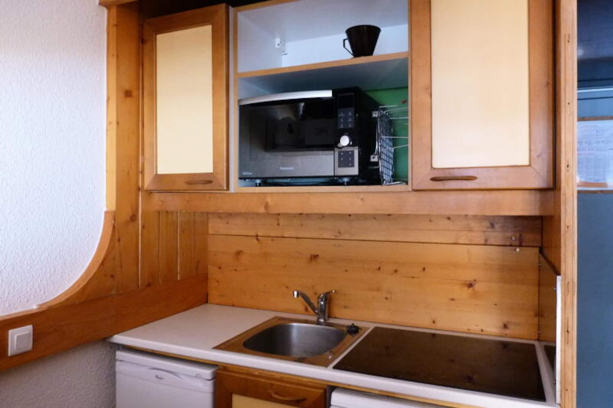 Højt over de travle gader i Les Arcs 1800 tilbyder denne charmerende lejlighed i Nova Residence en perfekt blanding af komfort og bekvemmelighed til din alpeferie. Forestil dig at vågne op til en betagende udsigt over resortet fra din sydvestvendte balkon, hvor den friske bjergluft sætter tonen for en dag med eventyr. Uanset om du besøger os om vinteren eller sommeren, er dette hyggelige tilflugtssted din port til det bedste af de franske alper. Den 40 m² store lejlighed har plads til op til seks gæster, hvilket gør den ideel til familier eller små grupper. Stuen har en sovesofa, mens soveværelset har to enkeltsenge, og en hyggelig sovealkove har et sæt køjesenge. Det åbne køkken er fuldt udstyret med moderne apparater, herunder en kombineret ovn/mikrobølgeovn, opvaskemaskine og kaffemaskine, så du har alt, hvad du behøver for at tilberede lækre måltider. Efter en dag på pisterne eller vandrestierne kan du slappe af i den indbydende opholdsstue med en varm drink og dit yndlingsprogram på fladskærms-tv'et. Beliggende i udkanten af ??Villards og Charvet, er residensen perfekt placeret ved foden af ??pisterne, kun få skridt fra Vagère-stoleliften og Villards-gondolen. ESF-skiskolen ligger blot 20 meter væk, og den nærliggende landsby Villards tilbyder et supermarked, barer og restauranter inden for kort gåafstand. En gratis shuttle-service kører regelmæssigt, hvilket gør det nemt at udforske området, mens turistkontoret og lægehuset kun ligger 7 minutters gang væk. Med sin uovertrufne beliggenhed, moderne faciliteter og fantastiske udsigt er denne lejlighed i Nova Residence dit hjem væk fra hjemmet i hjertet af Alperne. Uanset om du søger spændende skiløjper, naturskønne vandrestier eller blot et fredeligt tilflugtssted, er dette den perfekte base for at skabe uforglemmelige minder.