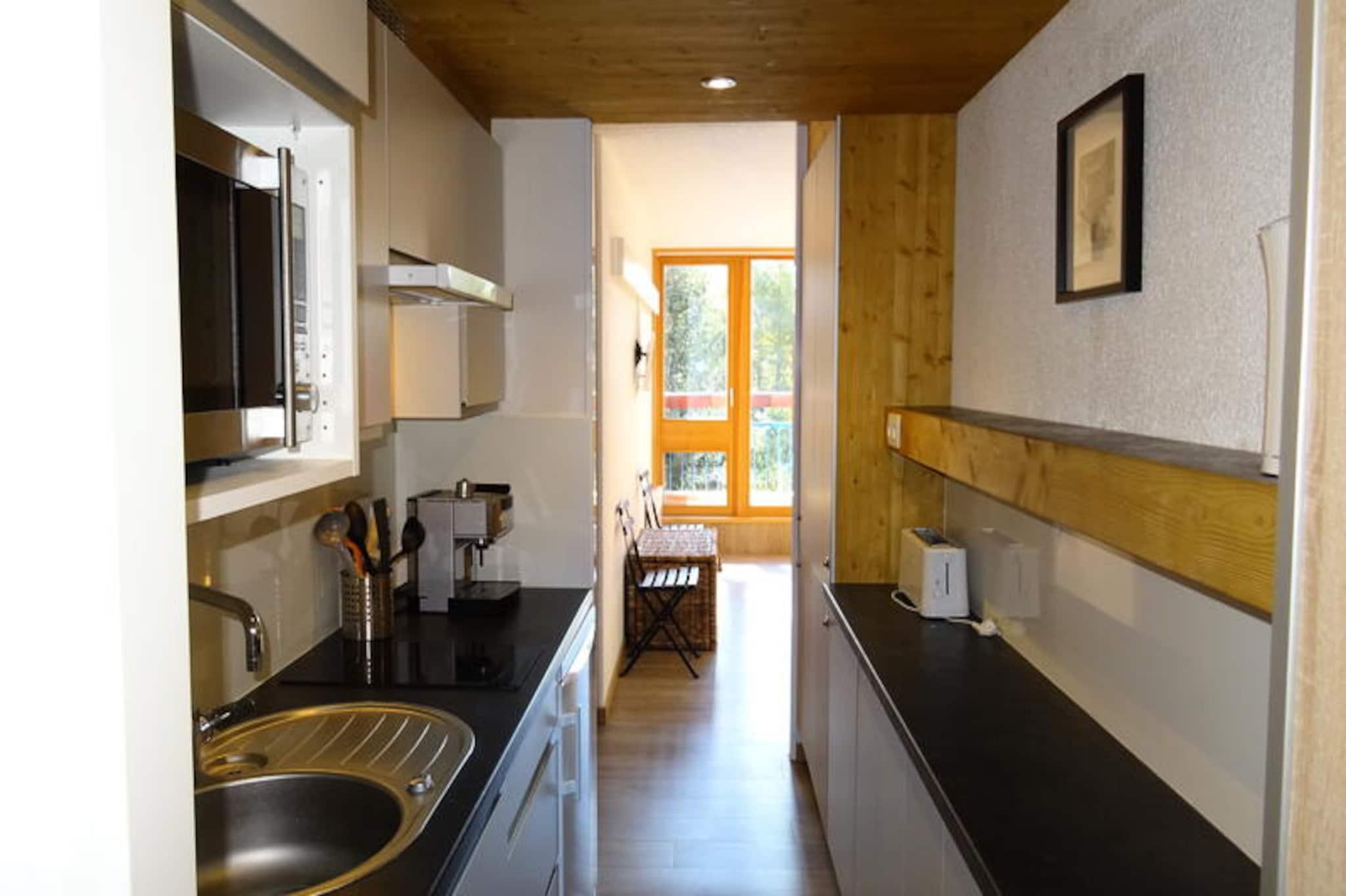 Højt over den maleriske Tarentaise-dal tilbyder dette charmerende studie i Miravidi-residensen et hyggeligt alpint tilflugtssted i hjertet af Les Arcs 1800. Med sin sydvestvendte balkon med udsigt over en fredfyldt skov er dette 25 m² store studie det perfekte tilflugtssted for par eller små familier, der søger en rolig flugt midt i de franske alpers betagende skønhed. Uanset om du besøger stedet for at tage på vinterski eller en sommerferie i bjergene, er denne ejendom en ideel base for at udforske Paradiski-områdets vidundere. Studioet har komfortabel plads til op til fire gæster med en udtrækssovesofa i opholdsstuen og et bjerghjørne med køjesenge. Det fuldt udstyrede køkken inkluderer induktionskogeplader, en kombineret ovn og mikrobølgeovn, en opvaskemaskine og et køleskab, hvilket gør det nemt at tilberede lækre måltider efter en dag med alpine aktiviteter. Moderne bekvemmeligheder såsom Wi-Fi, et fjernsyn og en vaskemaskine sikrer et behageligt og problemfrit ophold. Brusebadeværelset med toilet bidrager til den praktiske anvendelighed af dette gennemtænkt designede rum. Med en beliggenhed kun tre minutter fra pisterne kan du nemt komme til Vagère-stoleliften eller Transarc-gondolen, hvorfra du nemt kan komme ind i det vidtstrakte Paradiski-skiområde. ESF-skiskolen ligger en kort fem minutters gang væk, mens turistkontoret og lægehuset ligger bekvemt placeret inden for 50 meter. Barer, restauranter og butikker er direkte tilgængelige via elevator, hvilket sikrer, at alle dine behov bliver opfyldt uden at skulle rejse langt. Om sommeren forbinder den gratis shuttle-service dig med nærliggende attraktioner, hvilket gør det nemt at udforske regionens vandrestier og bjergudsigter. Uanset om du snor dig gennem uberørt sne eller nyder sommersolen, tilbyder Miravidi-residensen et varmt og indbydende tilflugtssted, hvor uforglemmelige alpine minder skabes. Book dit ophold i dag, og oplev magien ved Les Arcs 1800.