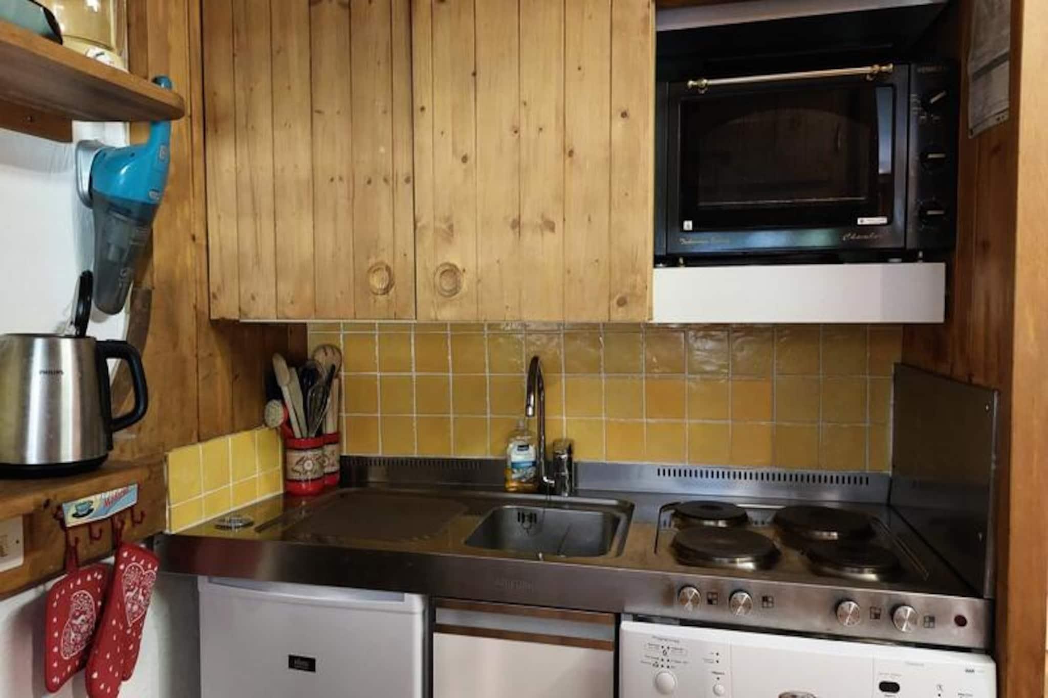 Ved mødestedet mellem Villards og Charvet i Les Arcs 1800 tilbyder denne charmerende lejlighed i Nova Residence en perfekt blanding af alpin komfort og bekvemmelighed. Med direkte adgang til haven og en sydvestvendt balkon inviterer den dig til at nyde den rolige bjergatmosfære, mens du kun er få skridt fra det pulserende landsbyliv og skiløjperne. Uanset om du planlægger et vinterskieventyr eller et sommerophold, sikrer denne beliggenhed et uforglemmeligt ophold i hjertet af Paradiski-området. Lejligheden er 40 m² stor og har komfortabel plads til op til seks gæster. Stuen har to enkeltsenge, mens et hyggeligt soveværelse har en dobbeltseng. Derudover er der en separat sovealkove med køjesenge, der er en praktisk løsning for familier eller grupper. Det fuldt udstyrede køkken med ovn, køleskab, opvaskemaskine og mikrobølgeovn gør madlavning til en leg, mens opholdsstuen med tv, dvd-afspiller og Wi-Fi sikrer afslapning efter en aktiv dag. Et badeværelse med badekar og et separat toilet bidrager til bekvemmeligheden, og der er et sikkert skirum til rådighed til dit udstyr. Beliggende ved foden af ??pisterne tilbyder residensen nem adgang til Vagère-stoleliften og Villards-gondolen, hvilket gør den til en skiløbers drøm. ESF-skiskolen ligger kun 20 meter væk, og den nærliggende landsby Villards tilbyder et supermarked, barer og restauranter inden for en radius af 100 meter. Gratis shuttlebusser forbinder dig med andre dele af feriestedet, der kører hvert 20. minut om vinteren og hver time om sommeren. For yderligere behov ligger turistkontoret og et lægecenter en kort 7-minutters gåtur væk. Med sin førsteklasses beliggenhed, moderne faciliteter og nærhed til både eventyr og afslapning er denne lejlighed i Nova Residence din indgang til en ekstraordinær alpin flugt. Uanset om du snor dig gennem frisk puddersne eller udforsker frodige sommerstier, er hvert øjeblik her gennemsyret af de franske alpers skønhed og charme.