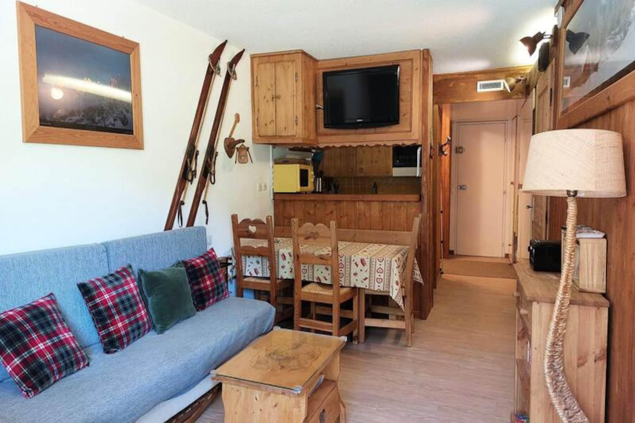 2-værelses lejlighed til 6 personer tæt på pisterne, butikker, børnehave og ESF i centrum af Arc 1800 resortet