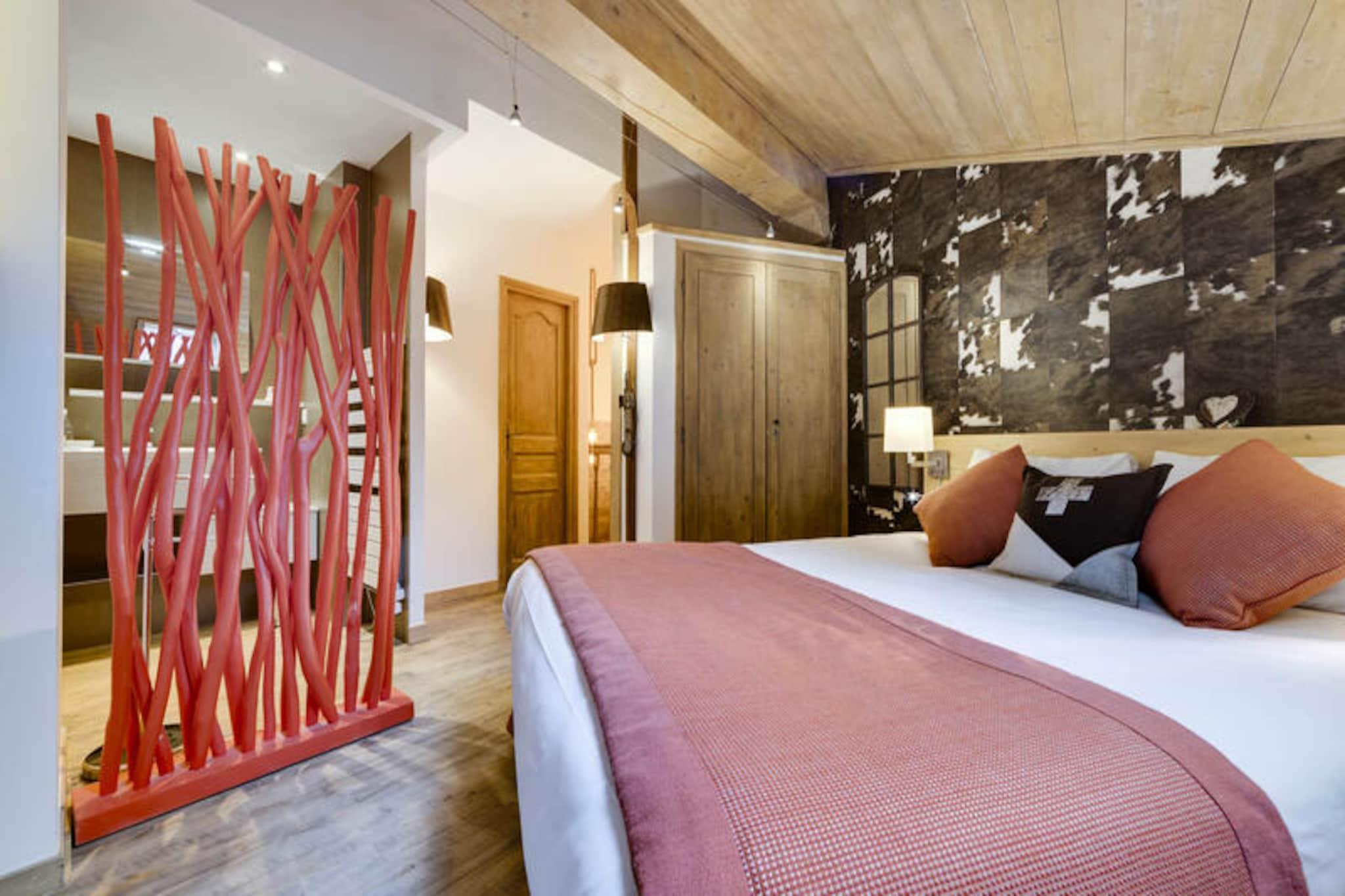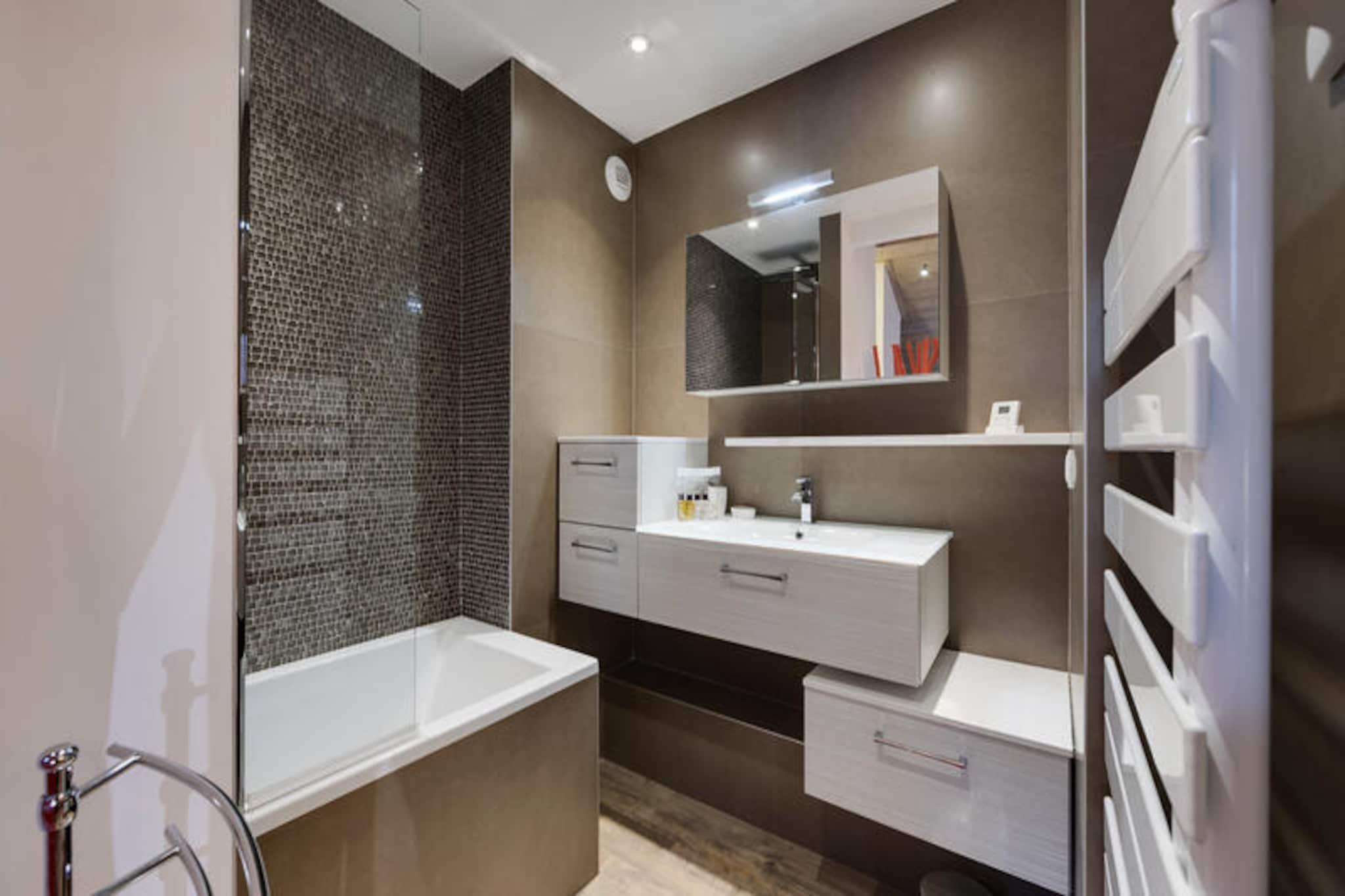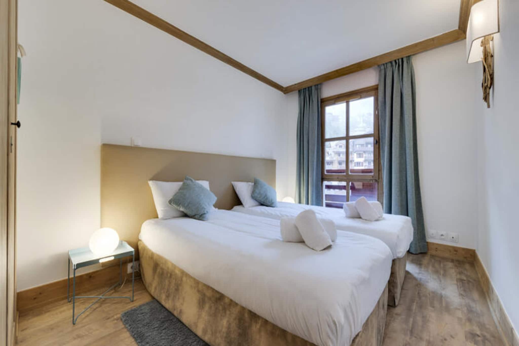 Højt over Tarentaise-dalen, hvor de majestætiske tinder i de franske alper møder charmen fra en gågadelandsby, ligger Hameau du Glacier Residence i Arc 1950. Dette førsteklasses 5-stjernede tilflugtssted inviterer dig til at opleve den ultimative alpine flugt, der blander luksus, komfort og direkte adgang til det berømte Paradiski-skiområde med dets 425 km uberørte pister. Forestil dig at vågne op til den friske bjergluft, træde ud på din sydøstvendte balkon og betragte de snedækkede landskaber, der lover endeløse eventyr. Uanset om du er her for vinterspænding eller sommerro, tilbyder denne bolig en port til uforglemmelige øjeblikke i hjertet af Alperne. \n\nDen rummelige duplexlejlighed på 87 m² er omhyggeligt designet til op til seks gæster, hvilket sikrer et hyggeligt, men raffineret ophold. På første sal finder du et fuldt udstyret køkken, en varm stue med pejs og en dobbelt sovesofa samt et soveværelse med eget brusebad. Et separat toilet øger bekvemmeligheden, mens balkonen giver et roligt sted at nyde den alpine udsigt. Ovenpå venter et luksuriøst dobbeltværelse med en kingsize-seng og eget badeværelse, der tilbyder et roligt tilflugtssted efter en dag med udforskning. Førsteklasses services, herunder sengetøj, badekåber og slutrengøring, sikrer en problemfri og afslappende oplevelse. \n\nArc 1950 er en pulserende landsby, hvor alt er inden for rækkevidde. Fra charmerende butikker og restauranter til skibokse og overdækket parkering er boligen perfekt beliggende for bekvemmelighed. Wellness-området er et sandt højdepunkt med udendørs og indendørs swimmingpools, jacuzzi, sauna, dampbad og et fitnesscenter - ideelt til afslapning efter aktive dage. Om sommeren forvandles regionen til et paradis for vandrere og cyklister med stier, der afslører betagende alpine udsigter. \n\nUanset om du søger adrenalin på pisterne, foryngelse i spaen eller blot et fredeligt tilflugtssted omgivet af natur, tilbyder Hameau du Glacier Residence en uovertruffen alpin oplevelse. Lad skønheden i Arc 1950 og varmen i denne luksuriøse bolig skabe minder, der vil vare hele livet.