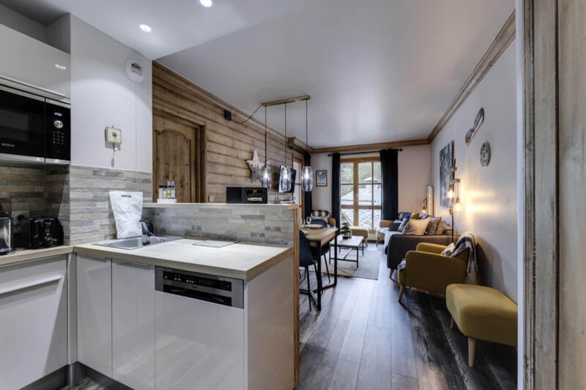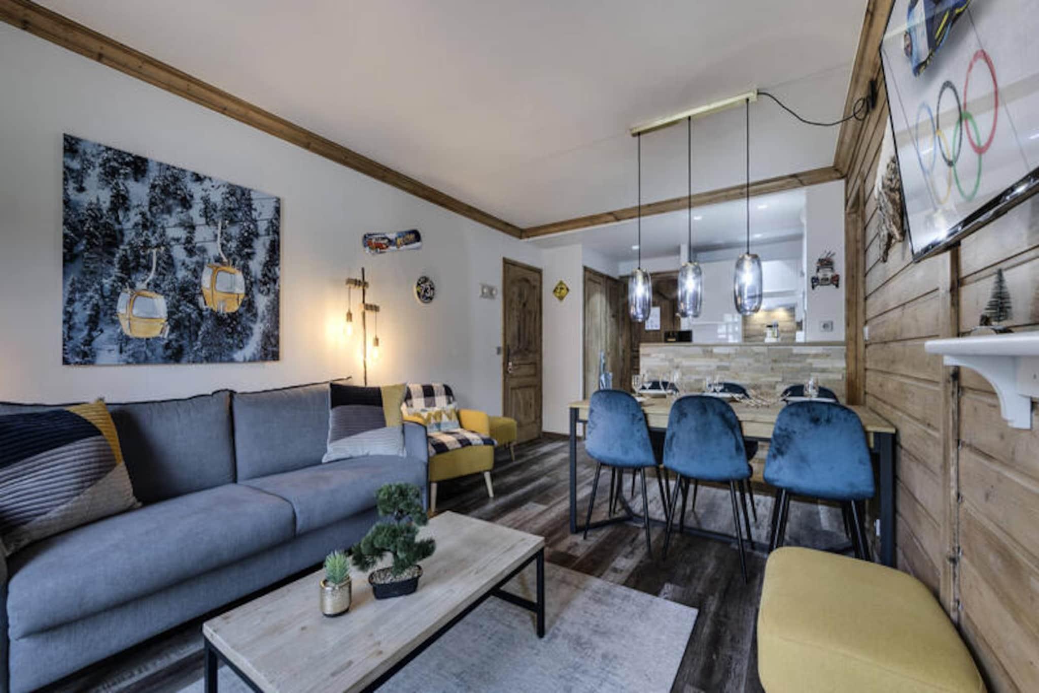 I hjertet af det fortryllende Arc 1950-resort tilbyder denne førsteklasses 5-stjernede residens en uforglemmelig alpin oplevelse, hvor luksus møder eventyr. Forestil dig at vågne op til den friske bjergluft, træde ud på en af ??dine private balkoner og kigge på de snedækkede tinder, der omgiver denne maleriske landsby. Arc 1950's gågade-charme sikrer en fredelig atmosfære, mens den direkte forbindelse til skiområdet Paradiski lover adgang til 425 km pister i verdensklasse lige uden for din dør. Uanset om du søger spændende nedkørsler eller fredfyldte øjeblikke i naturen, har denne destination det hele. \n\nDenne elegante lejlighed på 56 m² er omhyggeligt designet til at rumme op til 4 voksne og 2 børn, hvilket gør den ideel til familier eller små grupper. Indretningen omfatter en hyggelig stue med sovesofa, et åbent køkken og spiseplads, der er perfekt til fælles måltider, og to indbydende soveværelser - et med dobbeltseng og eget badeværelse og et andet med to enkeltsenge. Yderligere faciliteter inkluderer et brusebad, separat toilet og to balkoner med en fantastisk udsigt over det omkringliggende alpine landskab. Gæsterne vil sætte pris på de inkluderede tjenester såsom sengelinned, badekåber, tøfler og slutrengøring, hvilket sikrer et problemfrit og behageligt ophold.\n\nHameau du Glacier-residensen kan prale af exceptionelle wellness-faciliteter, herunder udendørs og indendørs swimmingpools, udendørs jacuzzi, sauna, dampbad og fitnesscenter. Efter en dag på pisterne kan du slappe af i disse rolige områder eller udforske den pulserende landsby med dens butikker, restauranter og afterski-aktiviteter. For ekstra bekvemmelighed er der et skiskab og betalt overdækket parkering til rådighed, og residensen er let tilgængelig fra Bourg-Saint-Maurice.\n\nUanset om du er her for vintersport eller sommervandreture, tilbyder denne luksuriøse ejendom den perfekte base for at skabe varige minder i de betagende franske alper.