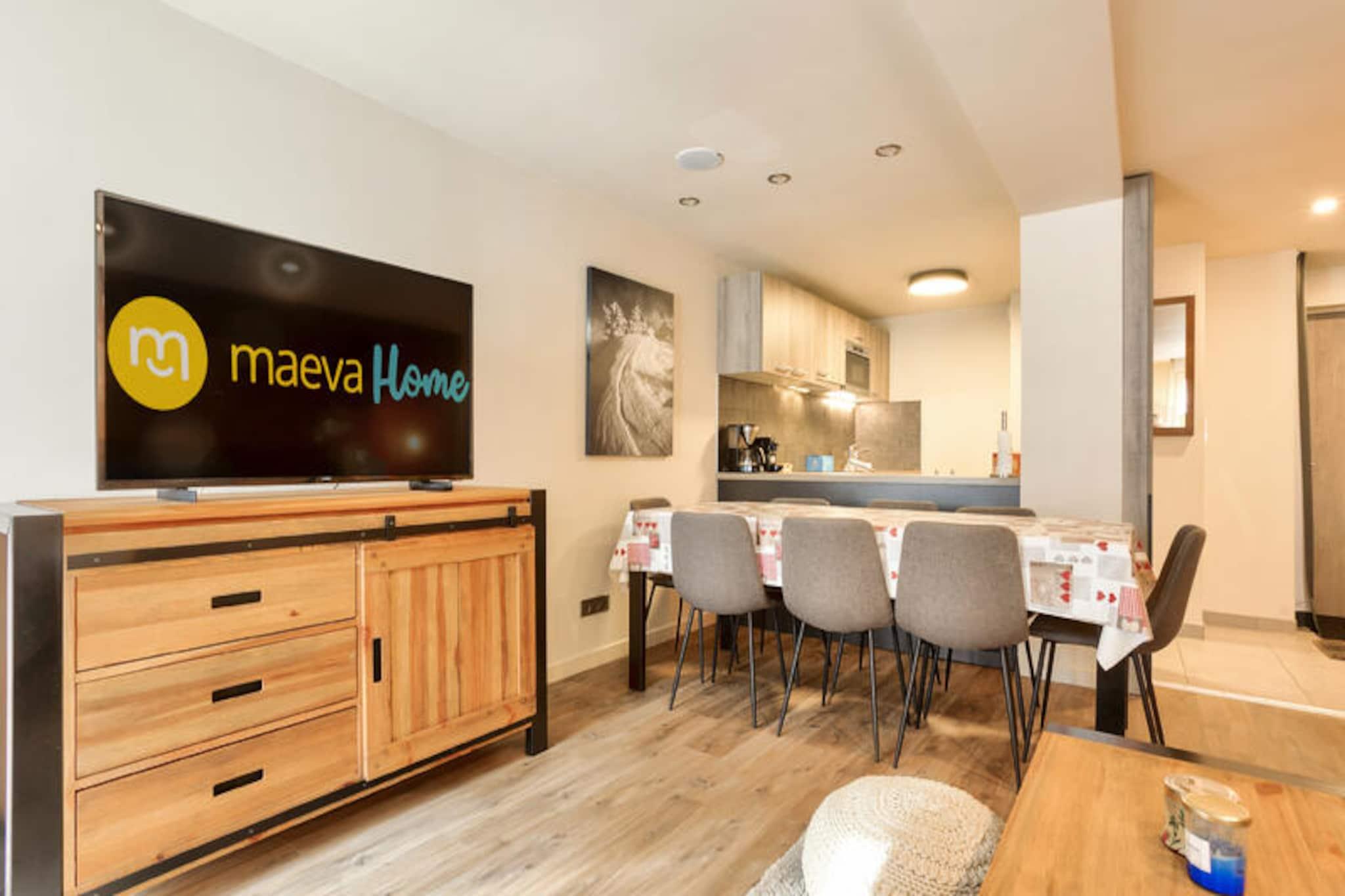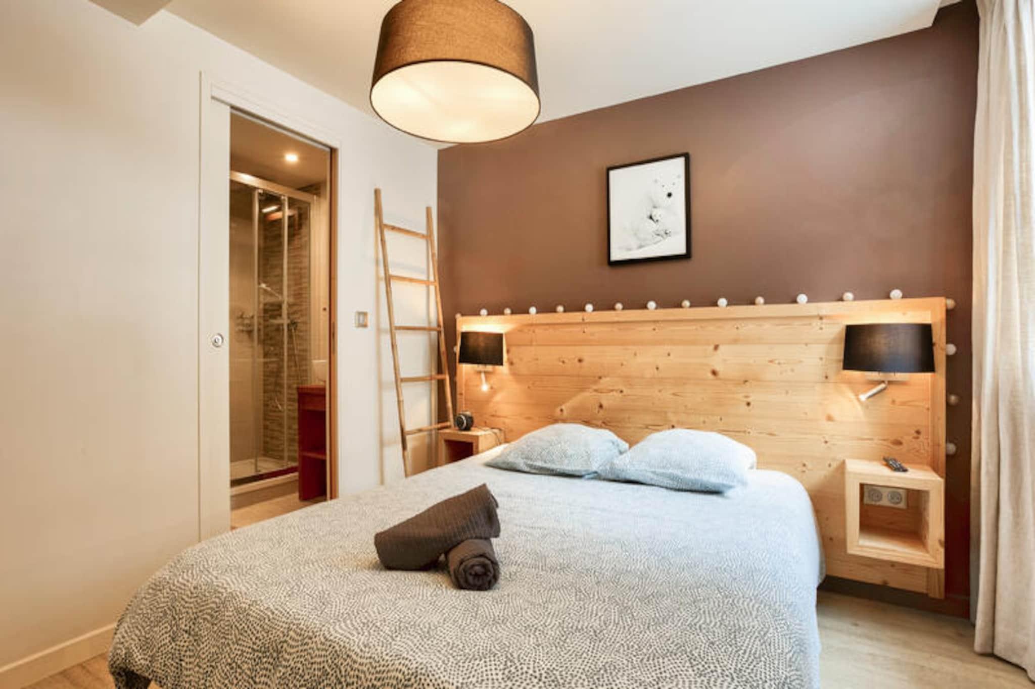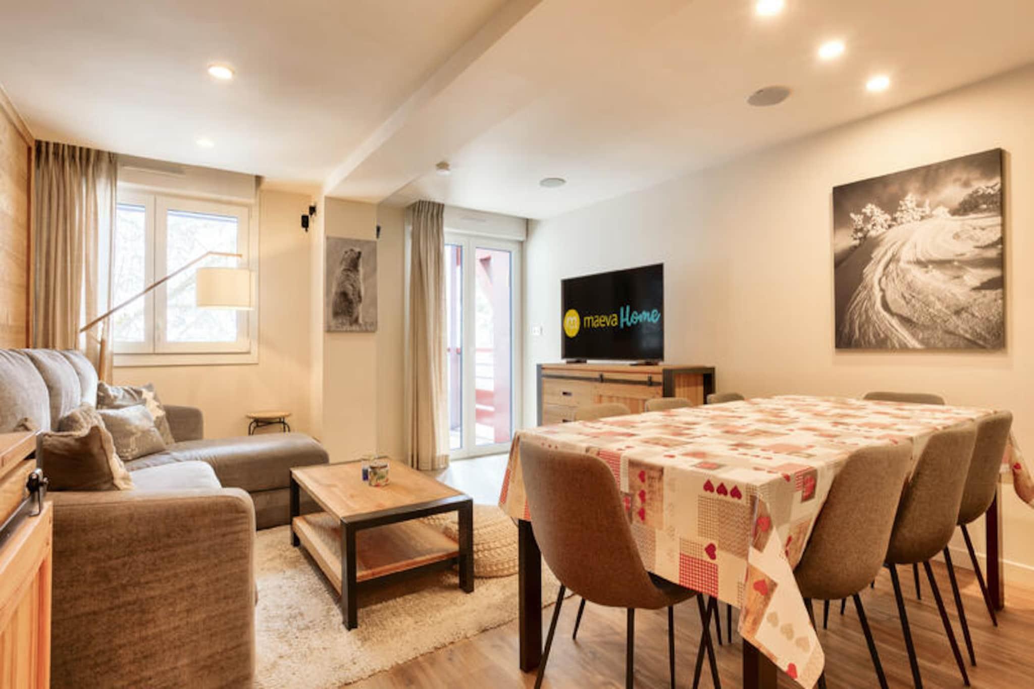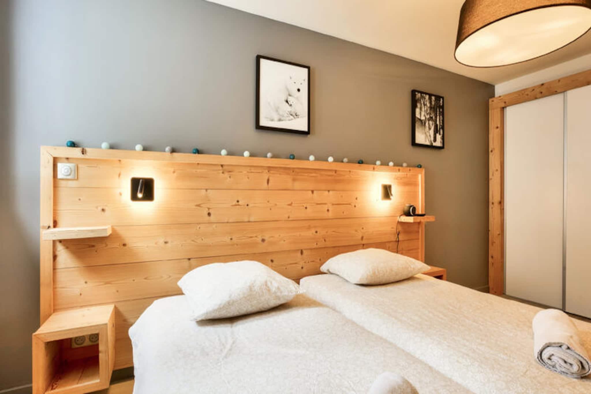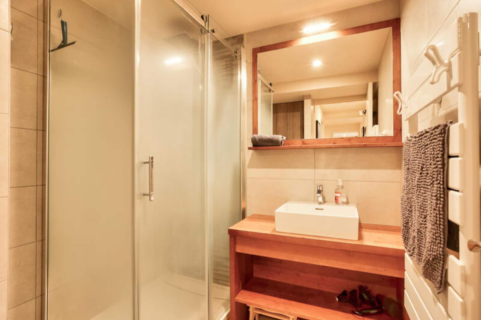 Midt i den fredfyldte skønhed i Les Arcs 1800 tilbyder Résidence les Chardons et roligt bjergparadis, perfekt til familier og grupper, der søger både eventyr og afslapning. Vågn op til skovens blide raslen fra din vestvendte balkon, og lad den friske alpine luft forfriske dine sanser, mens du planlægger en dag fyldt med udforskning og fritid. Denne fredelige oase er omgivet af betagende natur, der lover uforglemmelige øjeblikke i hver sæson. \n\nTræd indenfor i denne nyrenoverede bolig, og oplev en harmonisk blanding af moderne komfort og alpin charme. Med 88 m² gennemtænkt designet plads har lejligheden en rummelig opholdsstue med rigelig siddeplads, et moderne amerikansk køkken udstyret til kulinariske lækkerier og tre smagfuldt indrettede soveværelser, der sikrer afslappende nætter. To pæne badeværelser og et separat toilet øger bekvemmeligheden, mens den private overdækkede parkeringsplads giver bekvemmelighed for dem, der ankommer i bil. Balkonen med udsigt over den frodige skov tilbyder et perfekt sted til morgenkaffe eller aftenafslapning. \n\nBeliggende kun fem minutters gang fra butikker og aktiviteter, kombinerer Résidence les Chardons ro med tilgængelighed. Om vinteren lokker de nærliggende pister til skientusiaster, mens sommeren afslører et paradis for vandrere og naturelskere. Udforsk stierne, beundr de majestætiske tinder, eller slap blot af midt i den alpine pragt. Det pulserende feriested Les Arcs 1800 sikrer underholdning for alle aldre, fra lokale markeder til udendørs eventyr. \n\nVælg Résidence les Chardons for en bjergferie, hvor hver eneste detalje er udtænkt for at forbedre dit ophold. Uanset om du søger spændende aktiviteter eller rolige øjeblikke, lover denne ejendom en uforglemmelig alpin oplevelse.