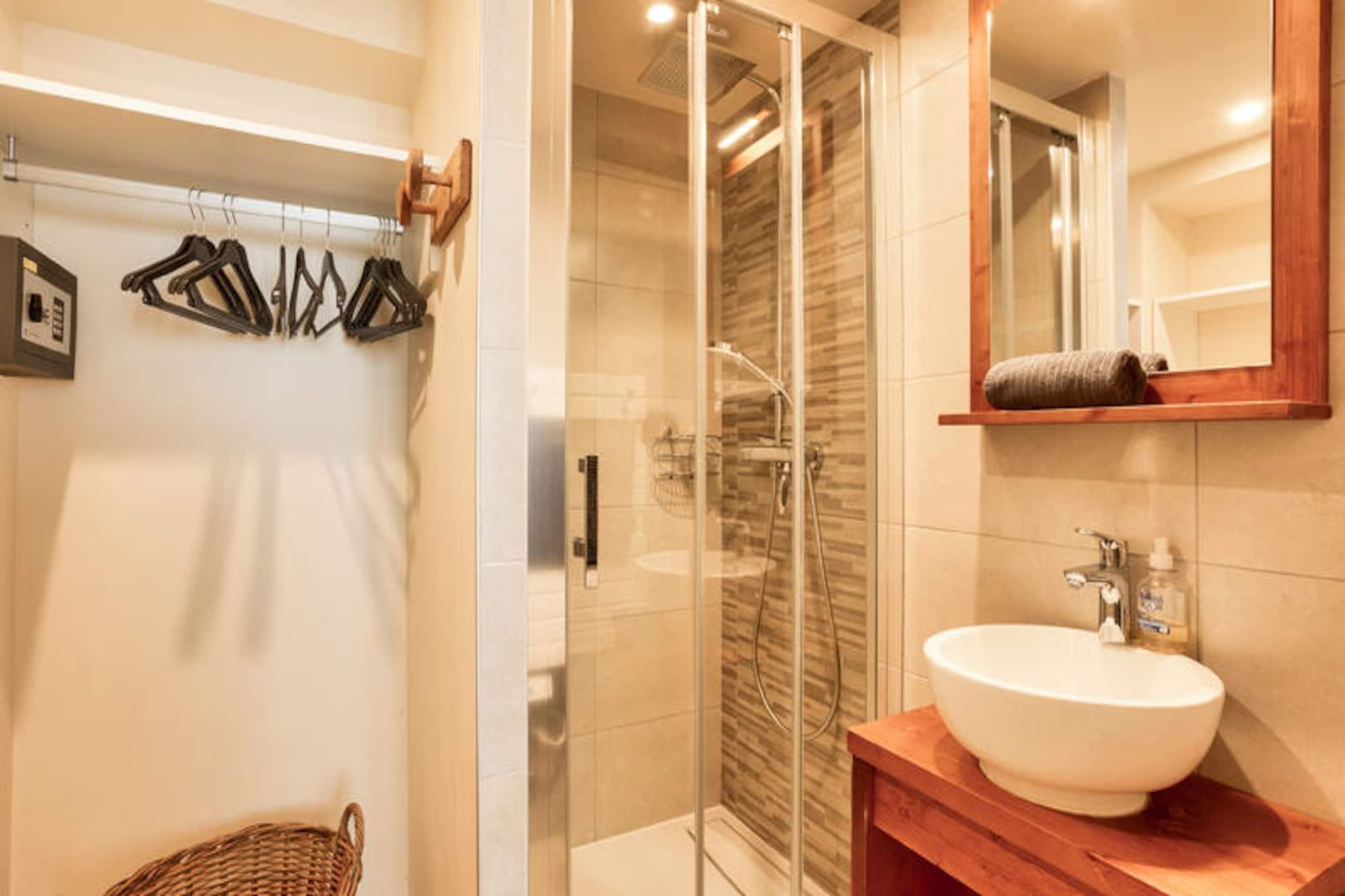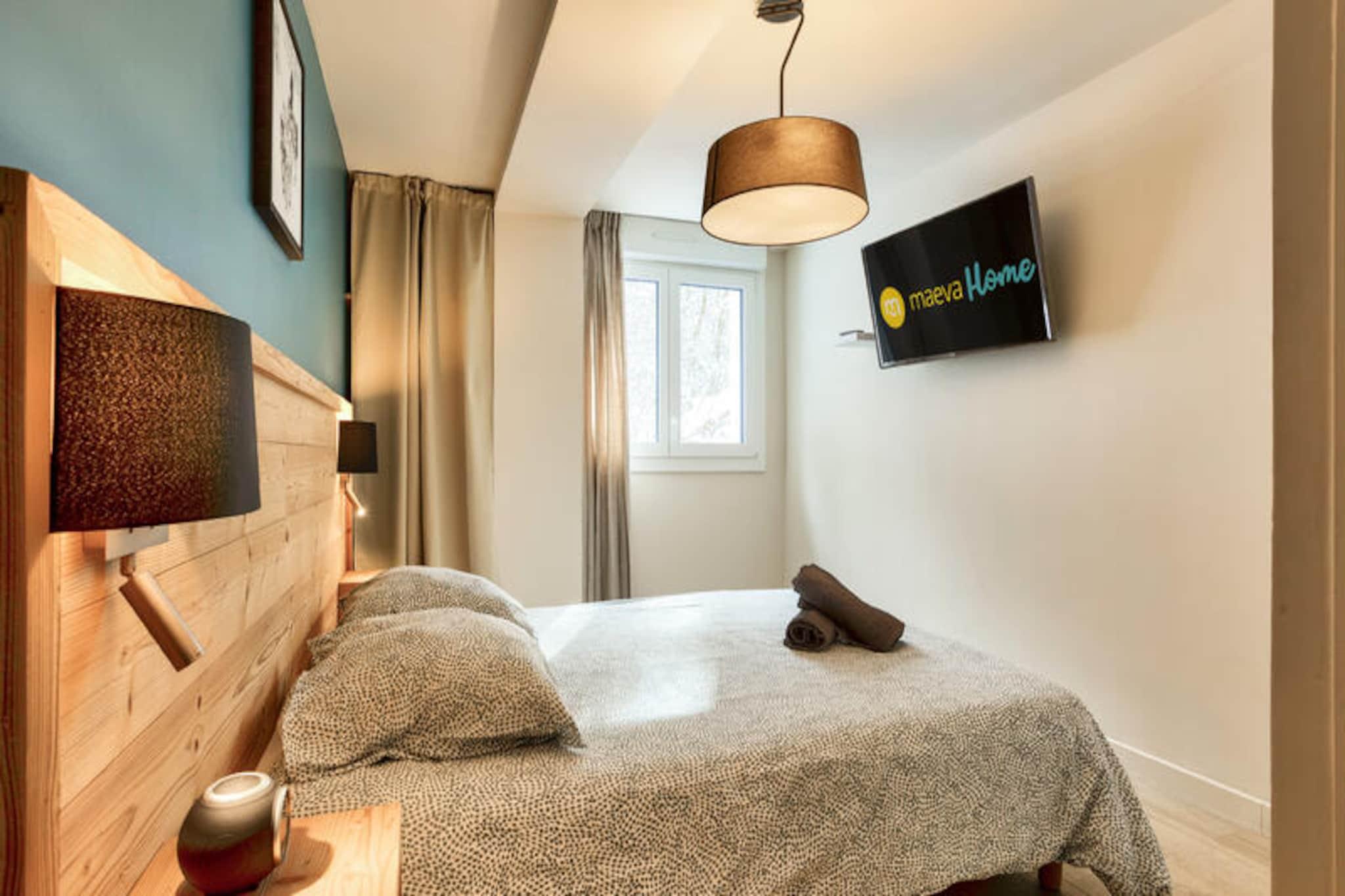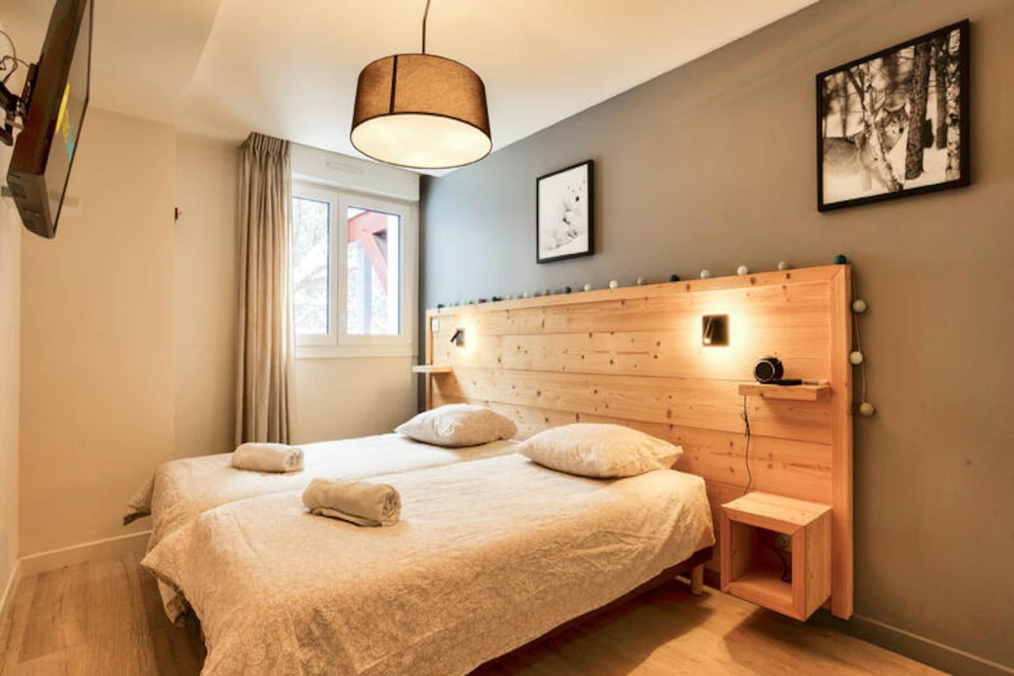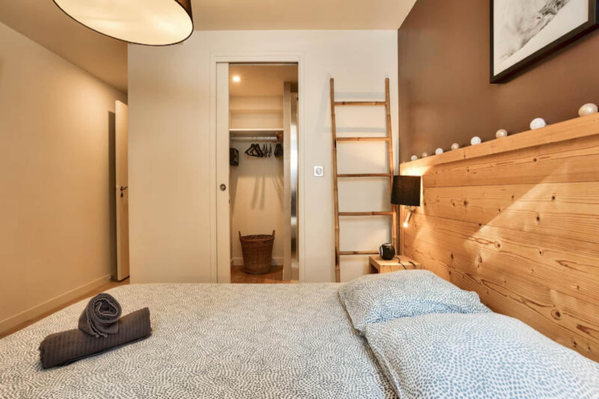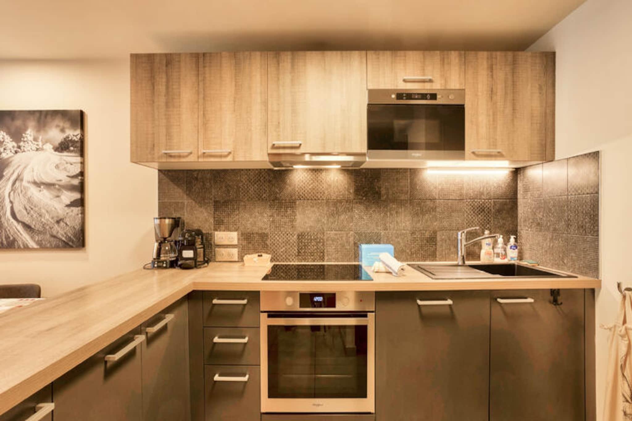 Midt i den fredfyldte skønhed i Les Arcs 1800 tilbyder Résidence les Chardons et roligt bjergparadis, perfekt til familier og grupper, der søger både eventyr og afslapning. Vågn op til skovens blide raslen fra din vestvendte balkon, og lad den friske alpine luft forfriske dine sanser, mens du planlægger en dag fyldt med udforskning og fritid. Denne fredelige oase er omgivet af betagende natur, der lover uforglemmelige øjeblikke i hver sæson. \n\nTræd indenfor i denne nyrenoverede bolig, og oplev en harmonisk blanding af moderne komfort og alpin charme. Med 88 m² gennemtænkt designet plads har lejligheden en rummelig opholdsstue med rigelig siddeplads, et moderne amerikansk køkken udstyret til kulinariske lækkerier og tre smagfuldt indrettede soveværelser, der sikrer afslappende nætter. To pæne badeværelser og et separat toilet øger bekvemmeligheden, mens den private overdækkede parkeringsplads giver bekvemmelighed for dem, der ankommer i bil. Balkonen med udsigt over den frodige skov tilbyder et perfekt sted til morgenkaffe eller aftenafslapning. \n\nBeliggende kun fem minutters gang fra butikker og aktiviteter, kombinerer Résidence les Chardons ro med tilgængelighed. Om vinteren lokker de nærliggende pister til skientusiaster, mens sommeren afslører et paradis for vandrere og naturelskere. Udforsk stierne, beundr de majestætiske tinder, eller slap blot af midt i den alpine pragt. Det pulserende feriested Les Arcs 1800 sikrer underholdning for alle aldre, fra lokale markeder til udendørs eventyr. \n\nVælg Résidence les Chardons for en bjergferie, hvor hver eneste detalje er udtænkt for at forbedre dit ophold. Uanset om du søger spændende aktiviteter eller rolige øjeblikke, lover denne ejendom en uforglemmelig alpin oplevelse.