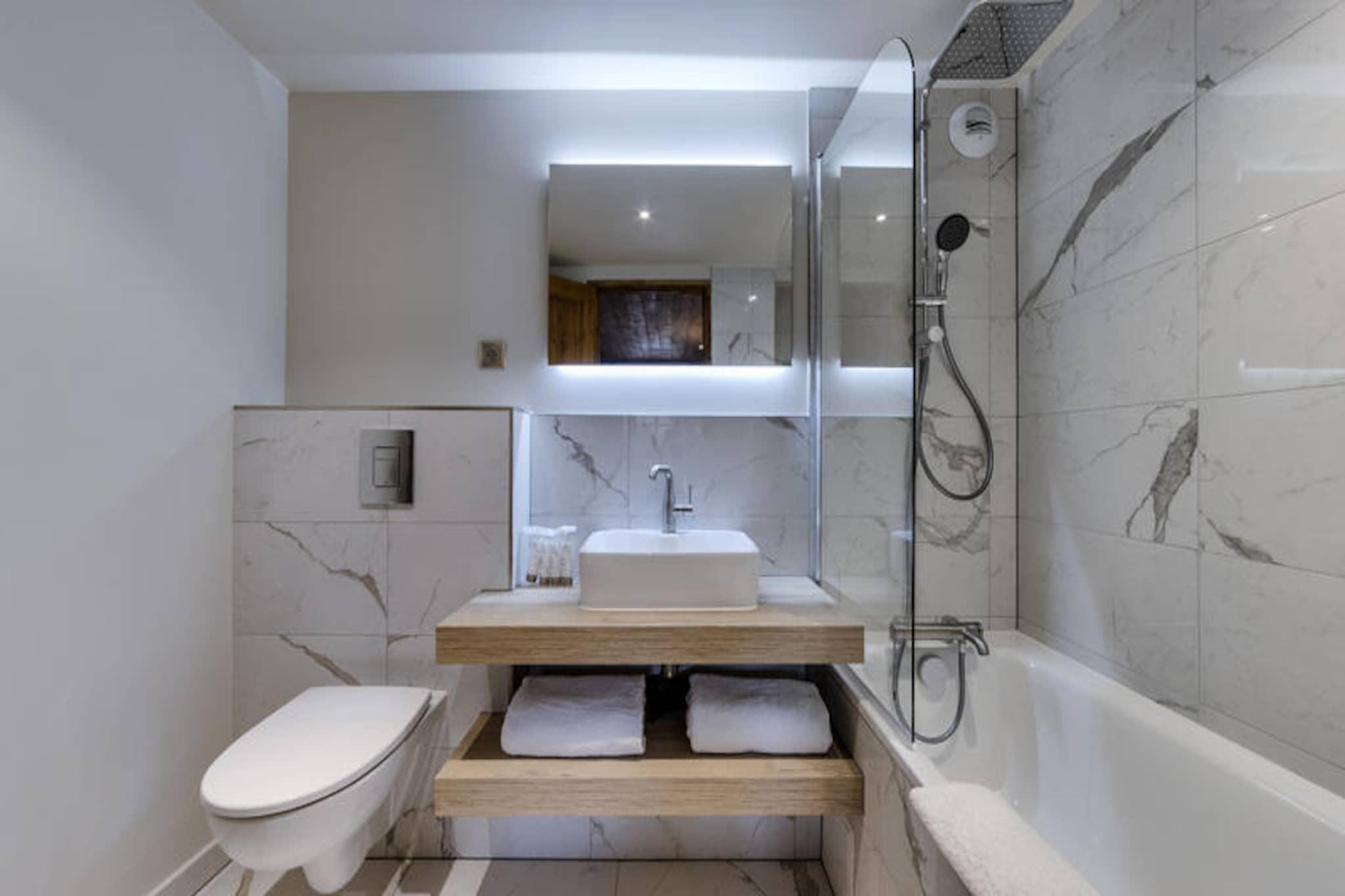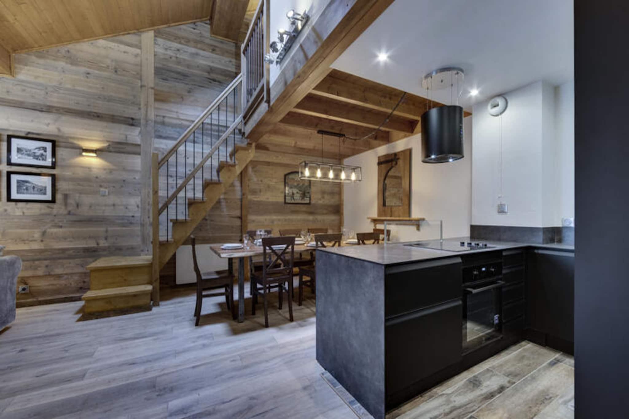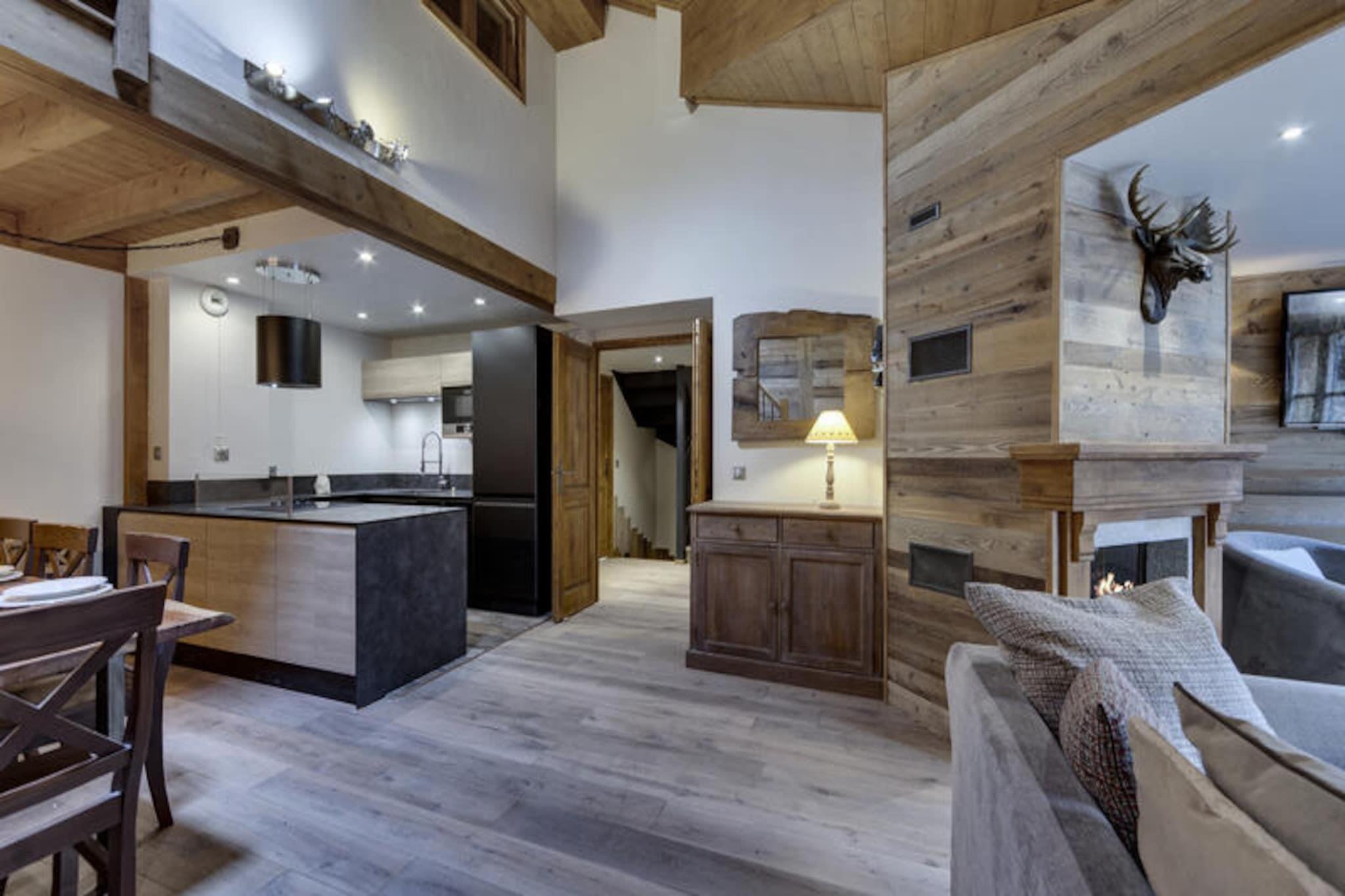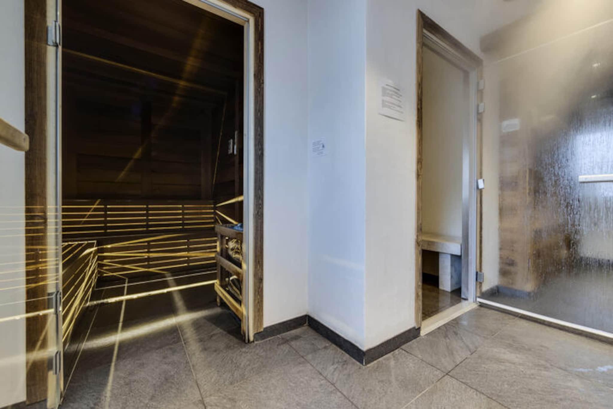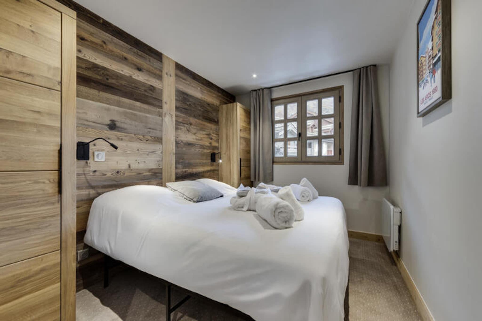 I den fortryllende gågadelandsby Arc 1950, hvor alpin charme møder moderne luksus, tilbyder denne førsteklasses 5-stjernede residens et uforglemmeligt bjergparadis. Omgivet af den betagende udsigt over Paradiski-skiområdet, med 425 km uberørte pister lige uden for døren, er denne ski-in/ski-out-ejendom et paradis for både vintersportsentusiaster og naturelskere. Refuge du Montagnard Residence kombinerer den hyggelige atmosfære i en traditionel alpelandsby med faciliteter i verdensklasse for at sikre et virkelig mindeværdigt ophold. \n\nLejligheden er på 117 m² og har komfortabel plads til op til 10 gæster fordelt på fire smukt indrettede soveværelser, en mezzanin med køjesenge og tre elegante badeværelser. Den åbne opholdsstue med fuldt udstyret køkken og spiseplads inviterer dig til at slappe af og dele måltider med dine kære efter en dag på pisterne. Gå ud på balkonen for at nyde den friske bjergluft og den fantastiske udsigt. Gæsterne vil også sætte pris på betænksomme detaljer såsom redte senge ved ankomst, luksuriøst sengetøj og gratis toiletartikler. \n\nResidensen kan prale af et exceptionelt wellness-område med udendørs swimmingpool, jacuzzi, sauna og dampbad, perfekt til afslapning efter en aktiv dag. Ud over residensen tilbyder Arc 1950 en pulserende atmosfære med charmerende gågader, dejlige restauranter og butikker. Om sommeren forvandles området til et paradis for vandrere og cyklister med stier, der snor sig gennem frodige alpine enge og tilbyder panoramaudsigt over de omkringliggende tinder. \n\nUanset om du søger spændende skieventyr eller rolige bjergflugter, tilbyder denne residens den perfekte blanding af komfort, bekvemmelighed og luksus. Skab varige minder i hjertet af de franske alper, hvor hvert øjeblik er indrammet af bjergenes majestætiske skønhed.