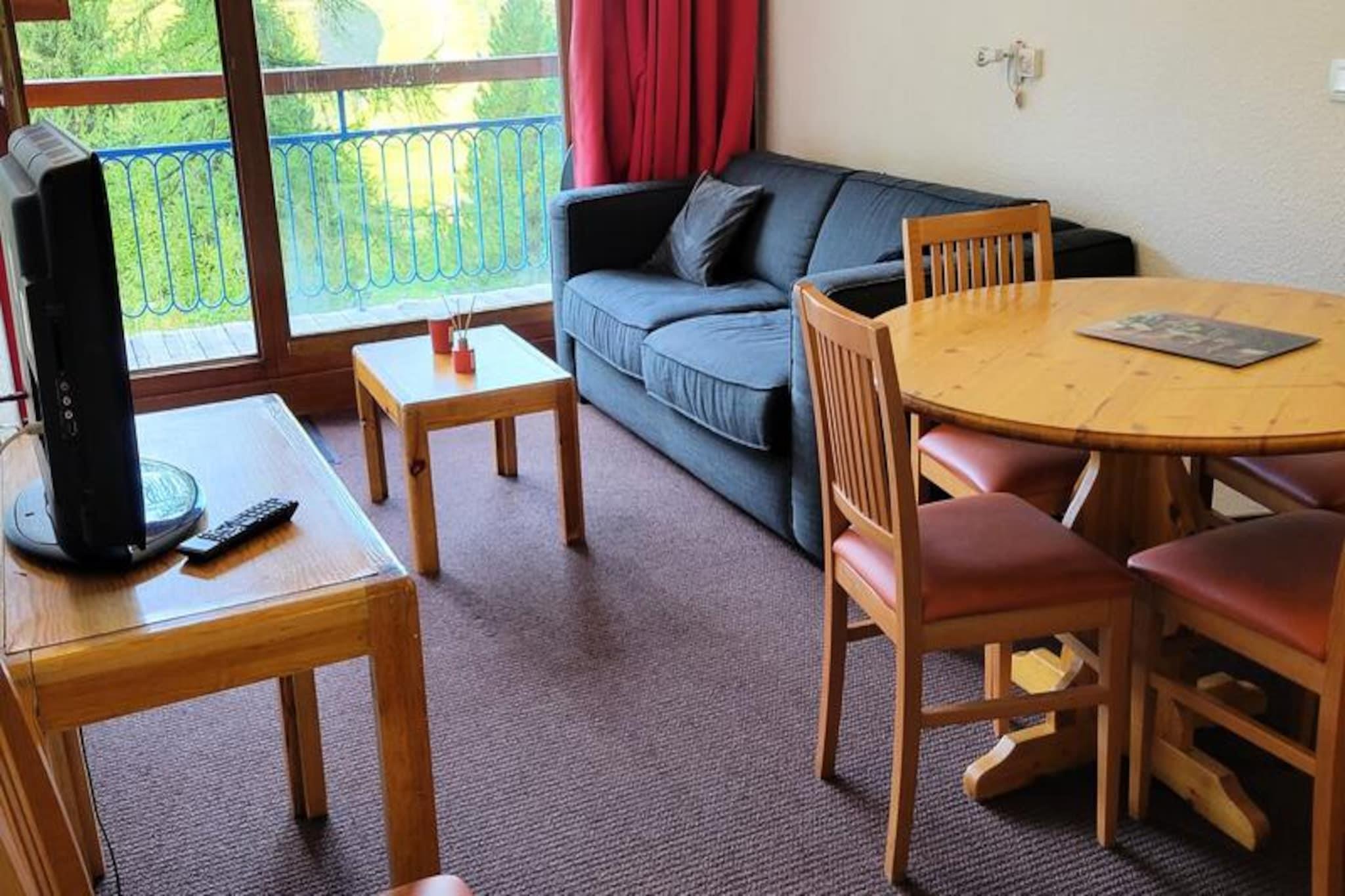 Højt over Tarentaise-dalen, hvor den friske alpine luft forfrisker dine sanser, tilbyder denne charmerende studiohytte et uforglemmeligt tilflugtssted i hjertet af Arc 2000. Med sin førsteklasses beliggenhed ved foden af ??pisterne kan du, afhængigt af sneforholdene, stå på ski direkte tilbage til din bolig og nyde problemfri adgang til det verdensberømte Paradiski-område. Uanset om du er her for at grave dig gennem uberørt puddersne eller blot nyde den betagende udsigt over bjergene, lover denne bolig en perfekt alpin flugt. Træd ind i dette hyggelige 28 m² store studio, der er omhyggeligt designet til at rumme op til fem gæster. Hytteområdet har to køjesenge og en udtræksseng, mens stuen kan prale af en komfortabel dobbeltsovesofa. Den syd-/sydøstvendte balkon inviterer dig til at nyde panoramaudsigten over feriestedet og pisterne, hvilket skaber en rolig kulisse for dine morgener og aftener. Det veludstyrede køkken med keramiske kogeplader, miniovn, mikrobølgeovn, køleskab, opvaskemaskine og mere sikrer, at du har alt, hvad du behøver for at tilberede solide måltider efter en dag på pisterne. Moderne bekvemmeligheder såsom gratis Wi-Fi og fladskærms-tv bidrager til komforten under dit ophold. Ud over lejligheden tilbyder boligen praktiske faciliteter såsom elevatorer, skibokse og nærliggende parkeringsmuligheder, herunder den overdækkede Mont Blanc-parkering og udendørs P3-parkering. Shuttle-holdepladsen mellem feriestederne ved Arc 2000 gør det nemt at udforske området. Om vinteren er pisterne din legeplads, mens sommeren forvandler regionen til et paradis for vandreture, mountainbiking og naturudforskning. Uanset om du er tiltrukket af spændingen ved skiløb, roen ved bjergudsigter eller charmen ved et veludstyret alpint tilflugtssted, er denne studiohytte i Arc 2000 din port til uforglemmelige minder i de franske alper.