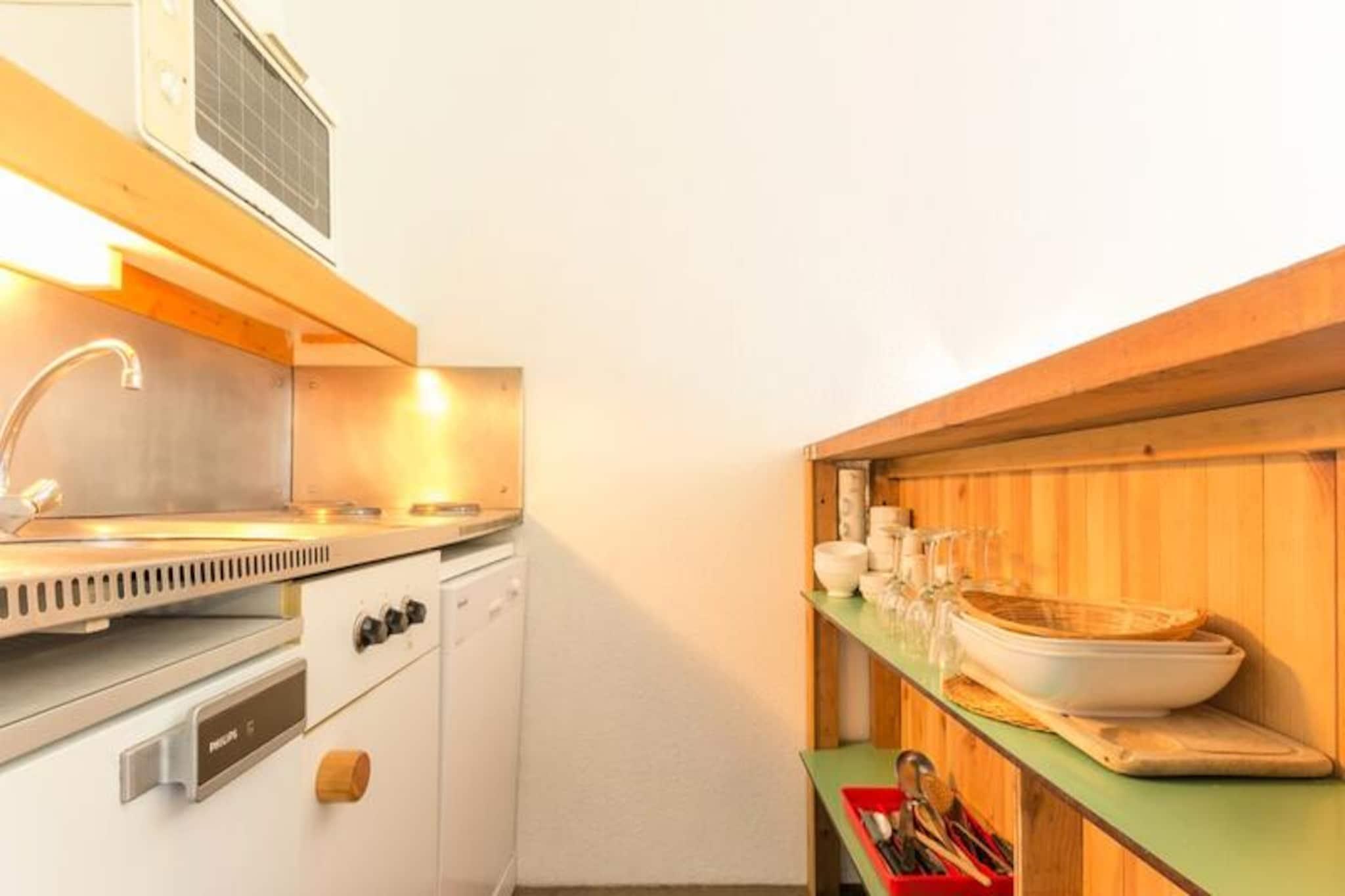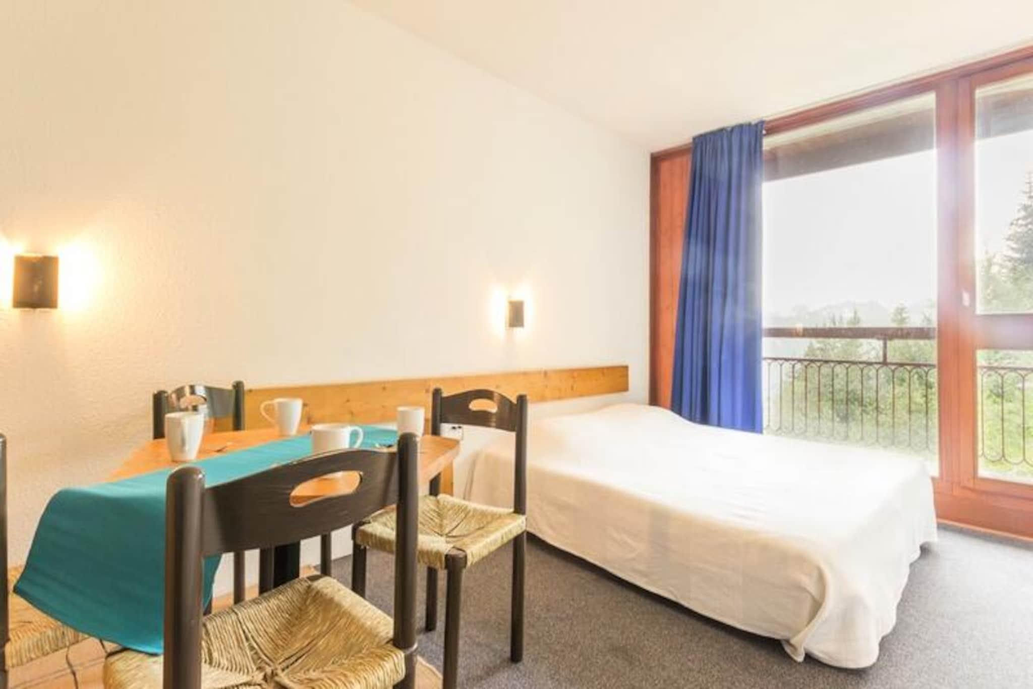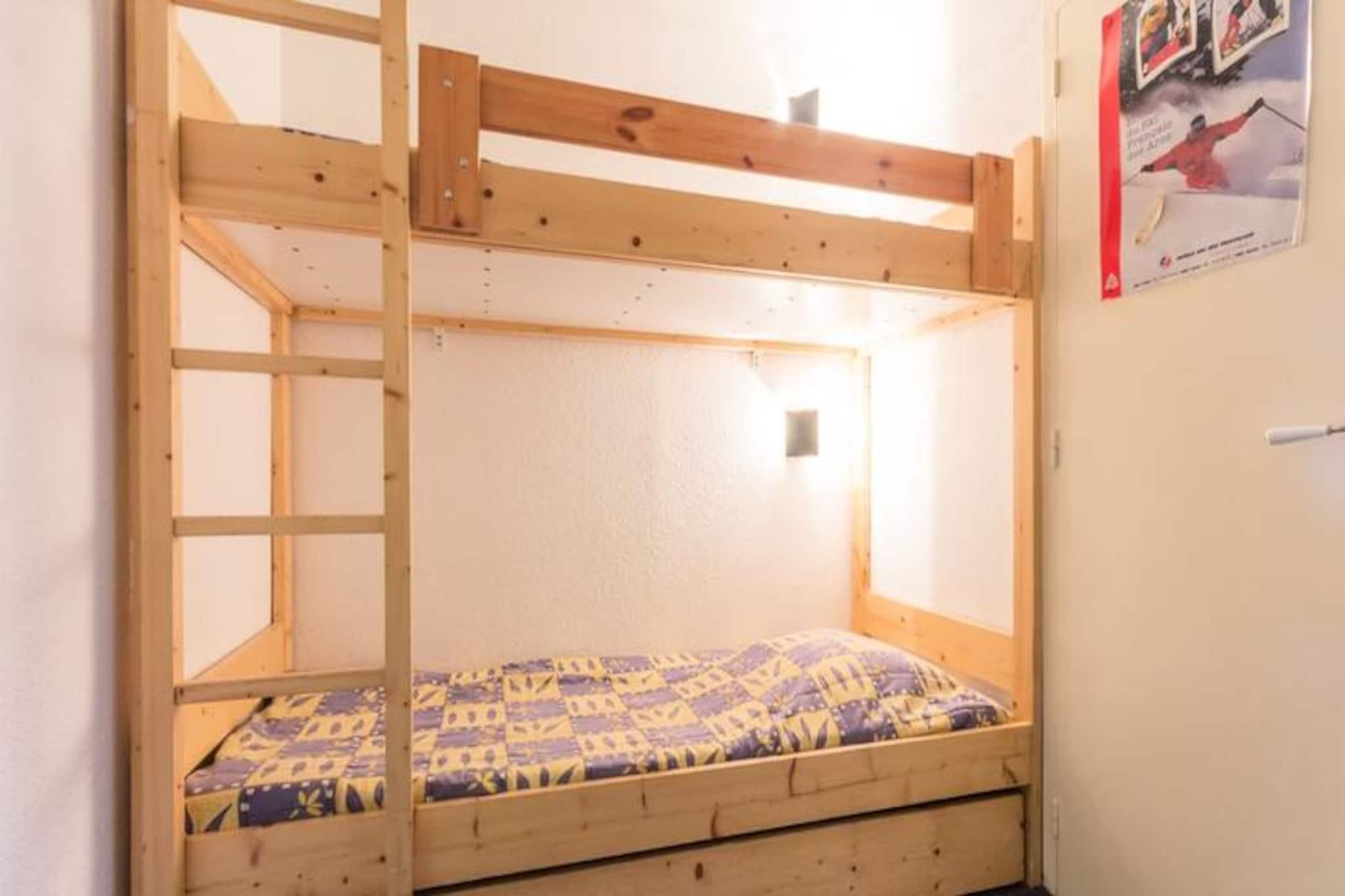 Højt over den glitrende Tarentaise-dal tilbyder denne charmerende studiolejlighed et hyggeligt tilflugtssted med en betagende udsigt over Mont Blanc og det omkringliggende alpine landskab. Uanset om du er her for vinterens snefyldte eventyr eller sommerens solbeskinnede stier, sikrer boligens førsteklasses beliggenhed ved foden af ??pisterne nem adgang til al den spænding, Les Arcs har at byde på. Forestil dig at nippe til din morgenkaffe på den nordvendte balkon, mens de majestætiske tinder hilser dig velkommen, eller se solen synke ned bag bjergene efter en dag med udforskning. Dette er alpint liv, når det er bedst. \n\nLejligheden er designet til komfortabelt at rumme op til fem gæster og har en smart planløsning med et kahytområde med køjesenge og en udtræksseng samt en stue med to enkeltsofaer. Tekøkkenet er udstyret med alle de nødvendige faciliteter, herunder en miniovn, mikrobølgeovn, opvaskemaskine og kaffemaskine, hvilket gør det nemt at tilberede solide måltider efter en dag på pisterne. Moderne bekvemmeligheder såsom gratis Wi-Fi og et fladskærms-tv sikrer et afslappende ophold, mens den varme og indbydende indretning skaber en indbydende atmosfære. \n\nTræd udenfor, og du vil blive fordybet i den pulserende energi i Les Arcs 2000. Fra shuttle-stoppestedet mellem feriestederne til nærliggende restauranter og butikker er alt inden for rækkevidde. Om vinteren kan du nyde ski-in/ski-out-adgang og udforske det store Paradiski-område, mens sommeren byder på muligheder for vandreture, mountainbiking og paragliding over den fantastiske dal. Ejendommen tilbyder også bekvemme parkeringsmuligheder og elevatoradgang, hvilket sikrer en problemfri oplevelse. \n\nDenne studiolejlighed kombinerer komfort, bekvemmelighed og ærefrygtindgydende udsigt og er din indgang til uforglemmelige alpine eventyr. Uanset om du søger spændende pister eller fredfyldte bjergflugter, er dette den ideelle base for at skabe varige minder i hjertet af de franske alper.