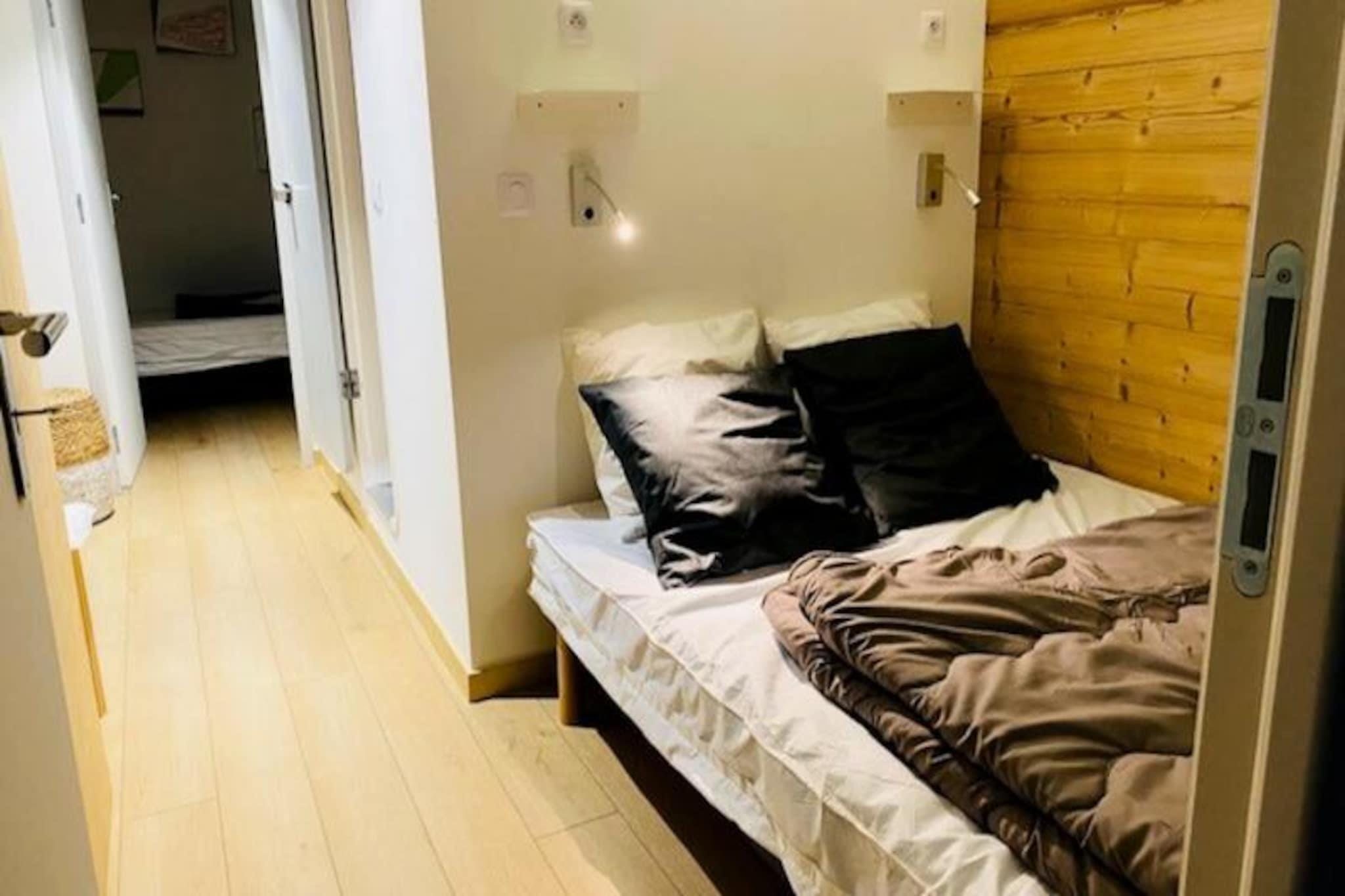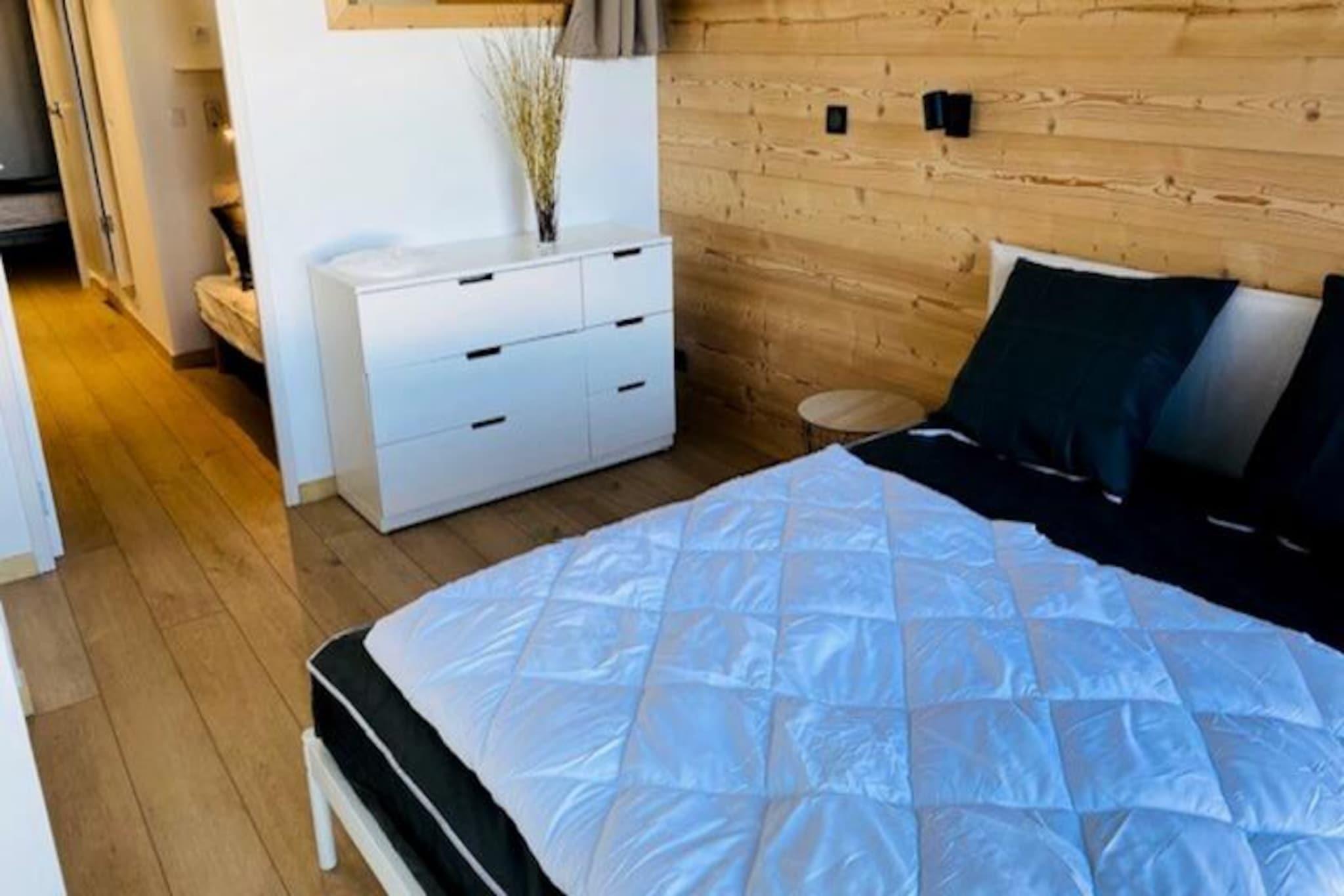 Højt over Tarentaise-dalen, hvor de snedækkede tinder af de franske alper møder horisonten, tilbyder denne smukt renoverede lejlighed i Varet 2-residensen en rolig oase for både skientusiaster og naturelskere. Ejendommen ligger på 7. sal og kan prale af en betagende udsigt mod nordvest over Mont Blanc og dalen, mens dens sydøstvendte orientering afslører de pulserende pister og skisportsstedet nedenfor. Det perfekte alpine tilflugtssted venter dig her. Den 56 m² store lejlighed er designet til at rumme op til syv gæster og byder på en harmonisk blanding af komfort og praktisk anvendelighed. Soveværelset tilbyder en blød 160 cm dobbeltseng og et fladskærms-tv, mens de hyggelige kahytter tilbyder ekstra sovepladser, herunder køjesenge, der er perfekte til børn. Det fuldt udstyrede køkken med Nespresso-maskine, induktionskogeplader og opvaskemaskine gør madlavning til en leg. To moderne badeværelser, parketgulv og gennemtænkte faciliteter som gratis Wi-Fi og et skiskab sikrer et problemfrit ophold. Denne bolig, der ligger ved foden af ??pisterne, tilbyder direkte adgang til skiområdet afhængigt af sneforholdene, med shuttle-service mellem skisportsstederne, der bekvemt forbinder dig med Arc 2000. Efter en dag på Paradiski-pisterne i verdensklasse kan du slappe af på din balkon med udsigt over Mont Blanc eller udforske skisportsstedets livlige afterski-scene. Overdækket parkering og miljøvenligt sengelinned er tilgængelige for ekstra bekvemmelighed. Uanset om du er her for spændende vintersport eller Alpernes fredfyldte skønhed, er denne lejlighed den perfekte base for uforglemmelige minder. Oplev bjergenes magi i komfort og stil.