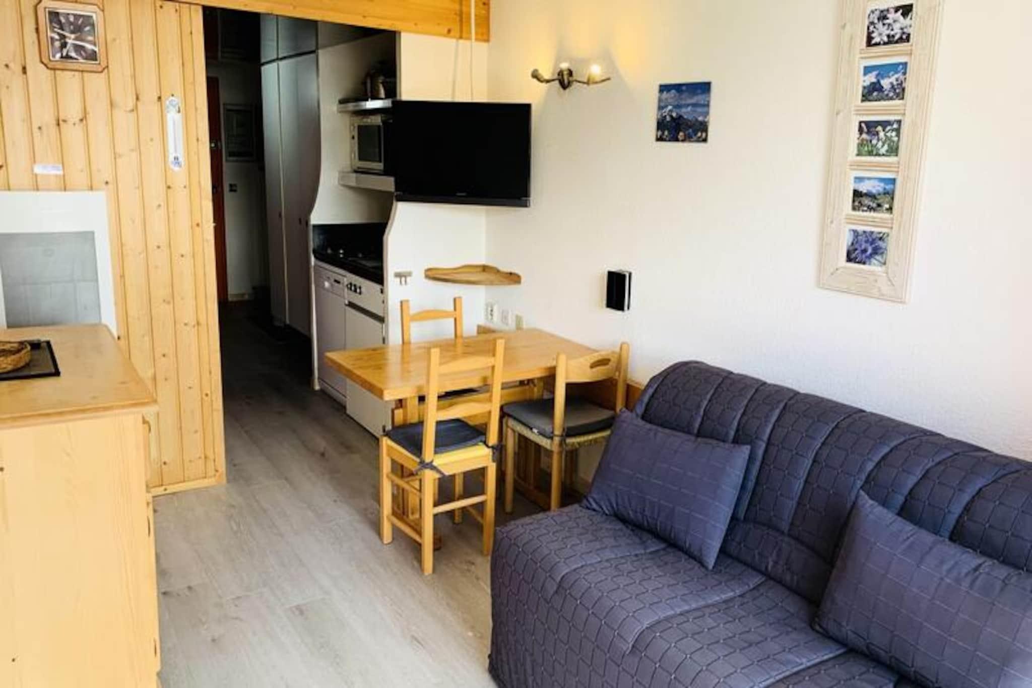 Højt over Tarentaise-dalen, hvor den alpine luft er frisk og forfriskende, tilbyder dette hyggelige studie i Arc 2000 en plads på første række til de majestætiske skråninger i de franske alper. Med sin sydvendte balkon vågner du op til en betagende udsigt over snedækkede tinder og de livlige skiløjper, hvilket sætter den perfekte tone for en dag med eventyr. Beliggende i hjertet af feriestedet, placerer denne bolig dig få skridt fra pisterne og det pulserende Place Olympique, hvilket sikrer bekvemmelighed og spænding lige ved hånden. Det kompakte, men gennemtænkte design på 22 m² rummer komfortabelt op til tre gæster. Opholdsstuen har en blød sovesofa til to personer, mens entréen tilbyder en enkeltseng, hvilket gør det til et ideelt tilflugtssted for par eller små familier. Tekøkkenet, der er udstyret med moderne apparater, herunder mikrobølgeovn, ovn og opvaskemaskine, giver dig mulighed for at tilberede solide måltider efter en dag på pisterne. Badeværelset, komplet med badekar, giver et afslappende sted at slappe af. Et fladskærms-tv tilføjer et strejf af moderne komfort til dit ophold. Ud over lejligheden er Arc 2000 et skiløberparadis. Fra den snedækkede beliggenhed kan du få adgang til pister i verdensklasse på få minutter. Den nærliggende parkeringsplads ved Lac des Combes og et udvalg af butikker og restauranter gør dit ophold endnu mere problemfrit. Uanset om du er her for spændende vintersport eller bjergenes fredfyldte skønhed, tilbyder dette studie en perfekt base for din alpeflugt. Oplev charmen ved Arc 2000, hvor hvert øjeblik er indrammet af de franske alpers fantastiske baggrund. Uanset om du snor dig gennem frisk puddersne eller nipper til varm chokolade på din balkon, sikrer denne bolig minder for livet.
