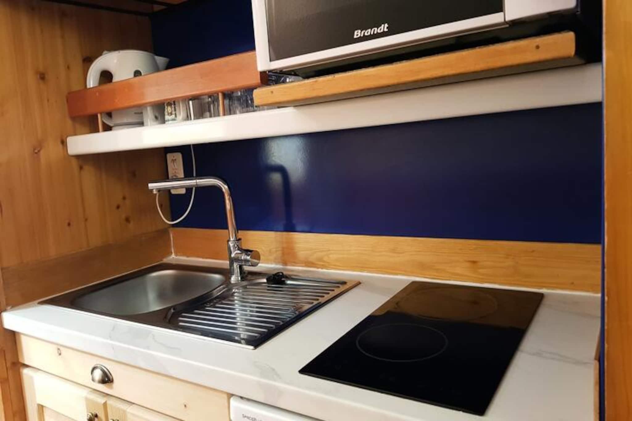 Beliggende i hjertet af Arc 1600 inviterer dette charmerende studie dig til at fordybe dig i den pulserende alpine livsstil. Med sin uovertrufne beliggenhed ved foden af ??pisterne og skilifterne træder du direkte ud af døren og ind i en verden af ??snedækkede eventyr. Kun få øjeblikke væk tilbyder feriestedets centrum en dejlig blanding af butikker og restauranter, perfekt til afterskiing eller afslappende sommeraftener. Uanset om du er her for spændende vintersport eller rolige bjergture, er denne bolig den ideelle base for din ferie. Det hyggelige 34 m² store studie, der ligger på tredje sal i en traditionel alpin bygning, er designet til at rumme op til tre gæster. Opholdsstuen har en komfortabel sovesofa til to og en ekstra enkeltseng, der sikrer afslappende nætter efter aktive dage. Et veludstyret tekøkken med keramisk kogeplade, mikrobølgeovn og køleskab giver dig mulighed for nemt at tilberede måltider, mens de nordvendte vinduer tilbyder malerisk udsigt over pisterne. Badeværelset har badekar og toilet, der tilbyder alt det nødvendige for et afslappende ophold. Yderligere faciliteter såsom et tv, skiboks og gratis Wi-Fi sikrer bekvemmelighed og komfort under hele dit besøg. Ud over boligen tilbyder Arc 1600 et væld af aktiviteter og attraktioner. Om vinteren har du direkte adgang til det berømte Paradiski-område med dets omfattende netværk af pister, der henvender sig til alle niveauer. Om sommeren forvandles bjergene til et paradis for vandrere, cyklister og naturentusiaster med betagende stier og panoramaudsigter. Det nærliggende feriestedscentrum summer af liv og tilbyder alt fra lokale delikatesser til livlig underholdning. Uanset om du søger adrenalinpumpende eventyr eller fredelige alpine retræter, lover dette studie på Arc 1600 en uforglemmelig oplevelse i hjertet af de franske alper.