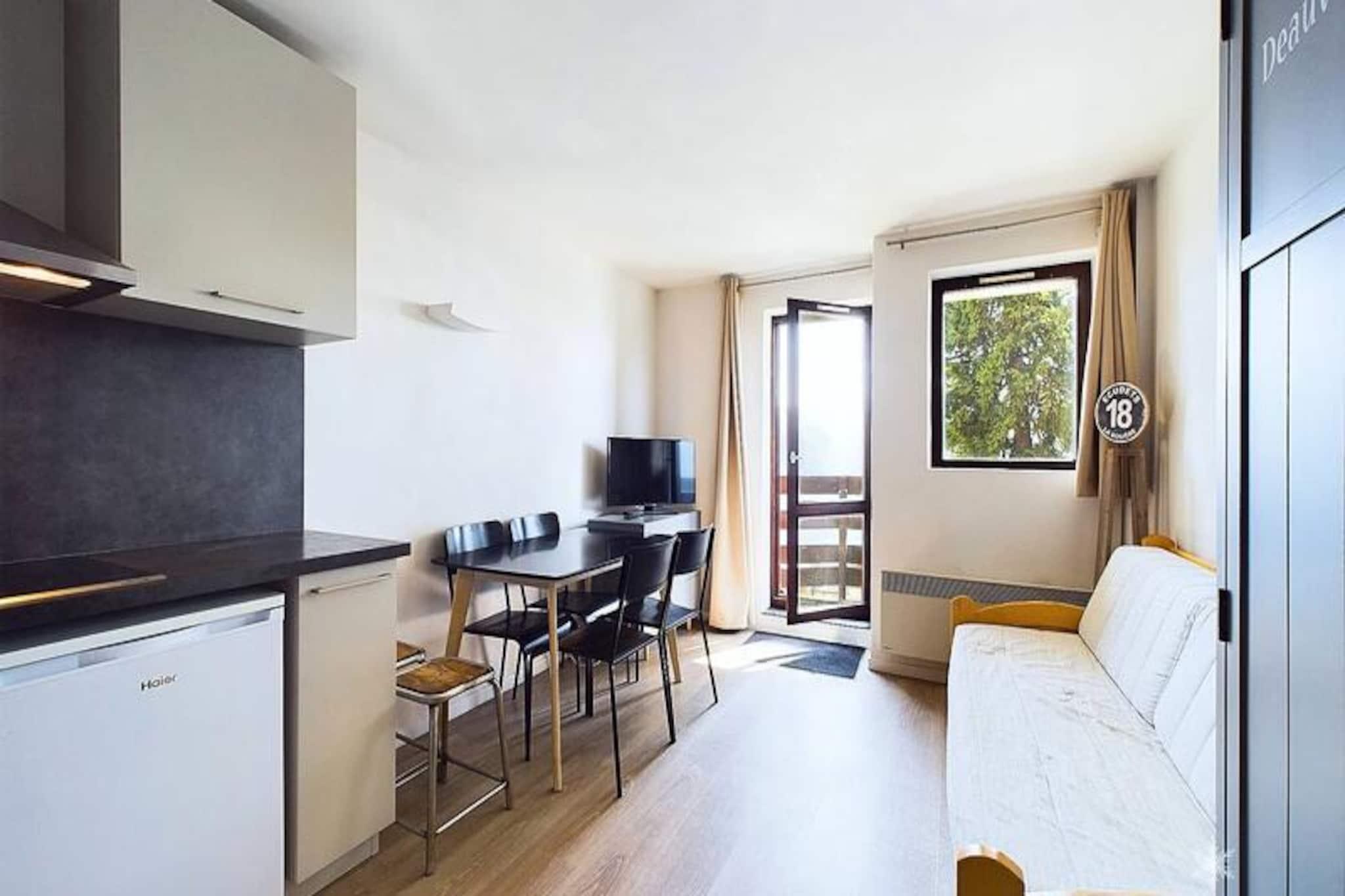 I hjertet af de franske alper, hvor snedækkede tinder møder endeløse blå himmel, inviterer dette charmerende studie i LES IBOUQUETINS-residensen dig til at opleve magien ved bjerglivet. Perfekt beliggende ved foden af ??pisterne tilbyder det uovertruffen bekvemmelighed for skientusiaster, med butikker kun 200 meter væk og en daginstitution kun 50 meter fra din dør. Uanset om du er her for spændingen ved vintersport eller roen i alpine somre, er dette hyggelige tilflugtssted din port til eventyr. Dette lyse studie på 22 m² er nyrenoveret og har en 2-stjernet vurdering og kan komfortabelt rumme op til fire gæster. Den smarte planløsning har en entré med to køjesenge, adskilt fra opholdsstuen med et gardin for ekstra privatliv. Stuen kan prale af en sofa med udtrækssenge, et tv og adgang til en sydvendt balkon, der oversvømmer rummet med naturligt lys og tilbyder en fantastisk udsigt over bjergene. Tekøkkenet er udstyret med keramisk kogeplade, køleskab, ovn og mikrobølgeovn, hvilket gør det nemt at tilberede måltider efter en dag på pisterne. Et moderne brusebad og separat toilet fuldender faciliteterne og sikrer et behageligt ophold. Der er også et skirum for din bekvemmelighed. Ud over boligen tilbyder den pulserende alpelandsby alt, hvad du behøver for en uforglemmelig ferie. Fra charmerende butikker og lokale spisesteder til skiskoler og afterski-aktiviteter finder du det hele inden for gåafstand. Om sommeren forvandles regionen til et paradis for vandrere, cyklister og naturelskere med stier, der snor sig gennem betagende landskaber. Uanset om du udforsker de nærliggende tinder eller blot nyder den rolige atmosfære, er dette studie den perfekte base for din alpine flugt. Vælg denne dejlige bolig for dens uovertrufne beliggenhed, moderne komfort og løftet om uforglemmelige øjeblikke i hjertet af Alperne.