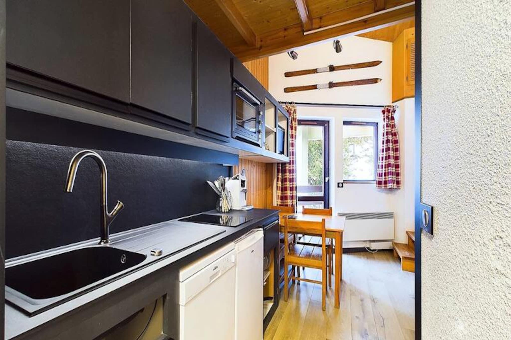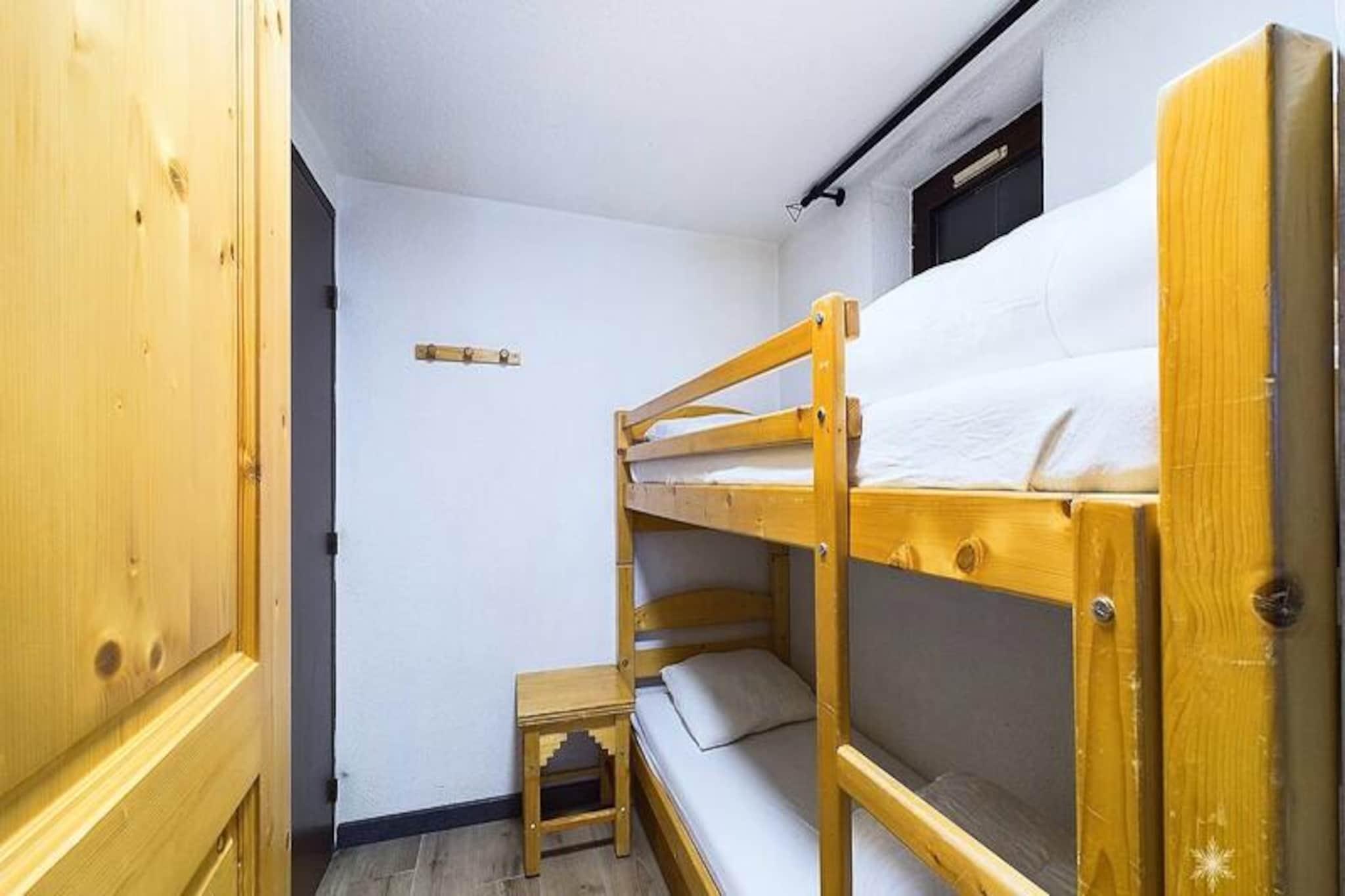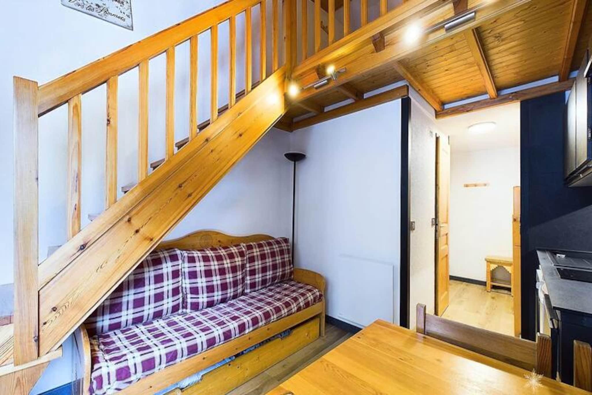 Højt over Tarentaise-dalen tilbyder dette charmerende mezzanin-studie et hyggeligt alpint tilflugtssted med direkte adgang til pisterne. Forestil dig at vågne op til den friske bjergluft og træde ud på din nordvestvendte balkon for at nyde den fredfyldte udsigt over de omkringliggende tinder. Beliggende i Les Ibouquetins B-residensen er dette studie perfekt til par eller små familier, der søger et varmt og indbydende sted at slappe af efter en dag med alpine eventyr. \n\nDet 26 m² store studie er omhyggeligt designet til at rumme op til fem gæster. Mezzaninen har en komfortabel dobbeltseng og en børnelænestol, mens entréområdet har to køjesenge, hvilket gør det ideelt for familier. Stuen, komplet med en sofa, er et indbydende sted at slappe af, og tekøkkenet er udstyret med alt, hvad du behøver for at tilberede solide måltider, herunder et elektrisk kogeplade, køleskab, ovn, mikrobølgeovn og endda en raclettegrill og fondue-sæt til en autentisk bjergmadoplevelse. Moderne bekvemmeligheder som tv, dvd-afspiller og opvaskemaskine sikrer et bekvemt og behageligt ophold.\n\nBeliggende kun 150 meter fra butikker og 50 meter fra en børnehave, kombinerer boligen bekvemmelighed med ro. Uanset om du er på ski, udforsker nærliggende stier eller blot nyder den alpine atmosfære, er alt hvad du behøver inden for rækkevidde. Efter en dag på ski eller vandreture kan du vende tilbage til komforten i dit studie for at genoplade til endnu en dag med eventyr.\n\nMed sin uovertrufne beliggenhed ved foden af ??pisterne og sit hyggelige, veludstyrede interiør er dette studie din port til uforglemmelige bjergminder. Uanset om du er her for sneen eller sommersolen, lover Les Ibouquetins B-boligen et ophold fyldt med komfort, charme og magien i de franske alper.